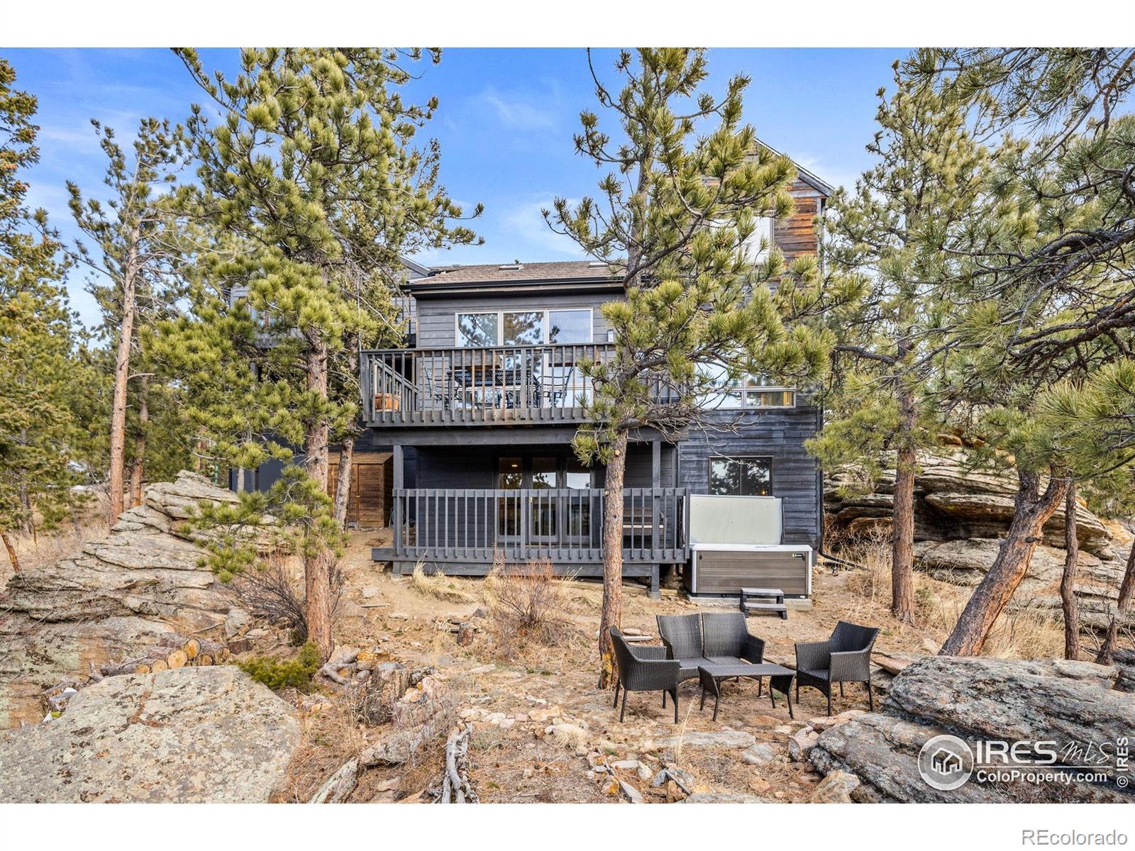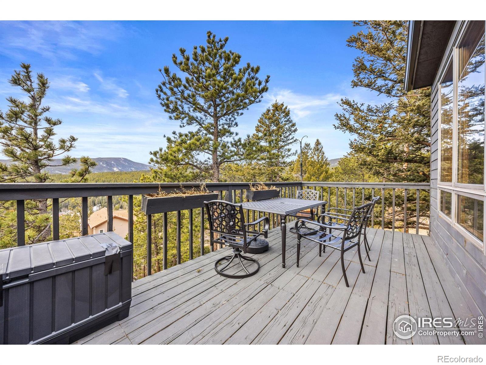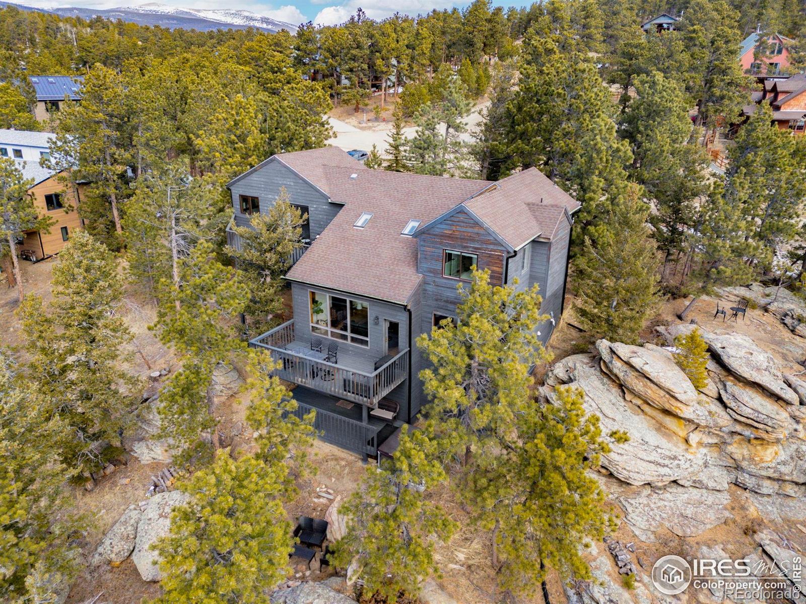 Spectacular location in Nederland's premier Sunnyside subdivision, overlooking the charming Town of Nederland with sweeping views of snow-capped peaks and surrounding mountains. This well-designed home features an open floor plan with a large air-lock foyer and sun-drenched spaces throughout, all oriented to capture incredible light and views. Nestled among beautiful rock outcroppings, this property offers a rare combination of privacy and convenience just a short walk to downtown Nederland, the elementary school, trails, restaurants, breweries, shops, grocery stores and the local movie theater. Enjoy quick access to outdoor recreation year-round, including nearby Eldora Ski Resort. Recent improvements include updated carpet and brand-new LVP flooring, along with updates to 3 of the 4 bathrooms. The primary suite is a true retreat with a private balcony showcasing Divide Mountain views, a versatile bonus room ideal for an office, yoga space, or nursery, a large walk-in closet and 5-piece bath. The walkout lower level has a separate entrance and has been thoughtfully converted into a successful short-term rental unit, offering excellent income potential ($22K in 2025) or flexible multi-generational living. Additional upgrades include a whole-house natural gas generator that automatically provides reliable backup power during outages. Set well back from the road, this private mountain home features 3 separate decks for enjoying the outdoors, ample storage throughout and a layout that offers both comfort, flexibility & mountain views. A rare opportunity to own a well-built home with strong bones, modern updates, unbeatable views and exceptional location in one of Nederland's most desirable neighborhoods.