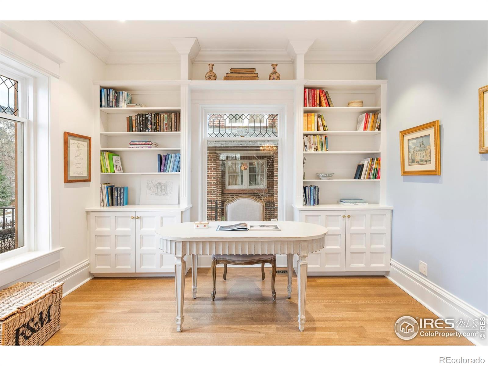 The iconic 1903 Moorhead House captures the enduring grace of Mapleton Hill while embracing impeccable design-forward living. Fully renovated just three years ago, exquisite craftsmanship shines through crystal chandeliers, oak floors, Ipe Brazilian wood porch, custom built-ins, and intricate woodwork. Intentional design reflects a sense of heritage and warmth, illuminated by natural light throughout the day. The expansive South facing front porch is a cherished retreat - perfect for quiet mornings or golden-hour evenings overlooking the lush gardens. For gatherings and dinners, an enclosed and private shaded brick patio off the kitchen offers an intimate setting beneath mature trees. Perched gracefully on a hill, leafy views in spring, summer, and fall and sweeping vistas of the Flatirons come winter- where elegance, light, and location converge. Enjoy a rare large and remodeled oversized 2-car garage plus an additional 2-car parking pad, and a fully fenced in lot. Modern conveniences include two appointed offices, and four bedrooms all fitted for king-size beds- each with ensuite full bathrooms. Just blocks from beloved cafes, Lolita's Market, wine shops, celebrated restaurants, and Sanitas Trailhead, this residence offers a seamless blend of historic character and modern convenience. Steps from Mapleton School park, three blocks to Pearl St., under a mile to the Farmer's Market and countless trails- this is downtown living at its finest!