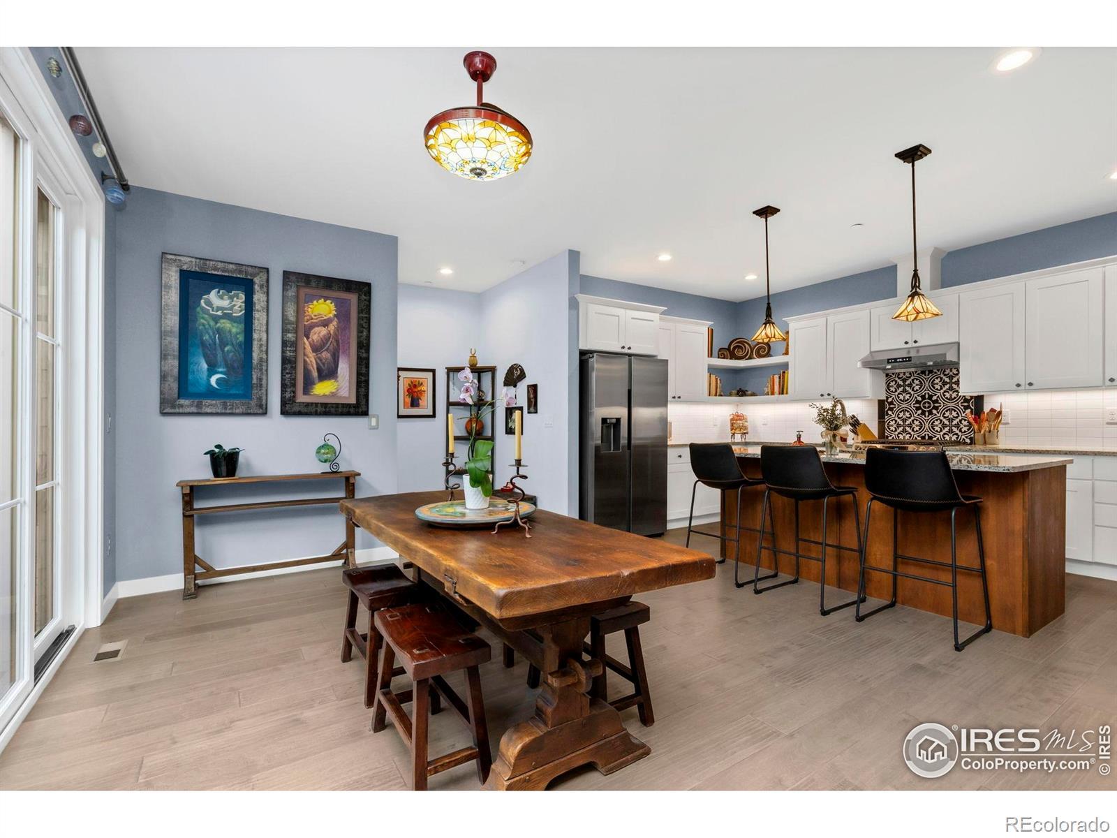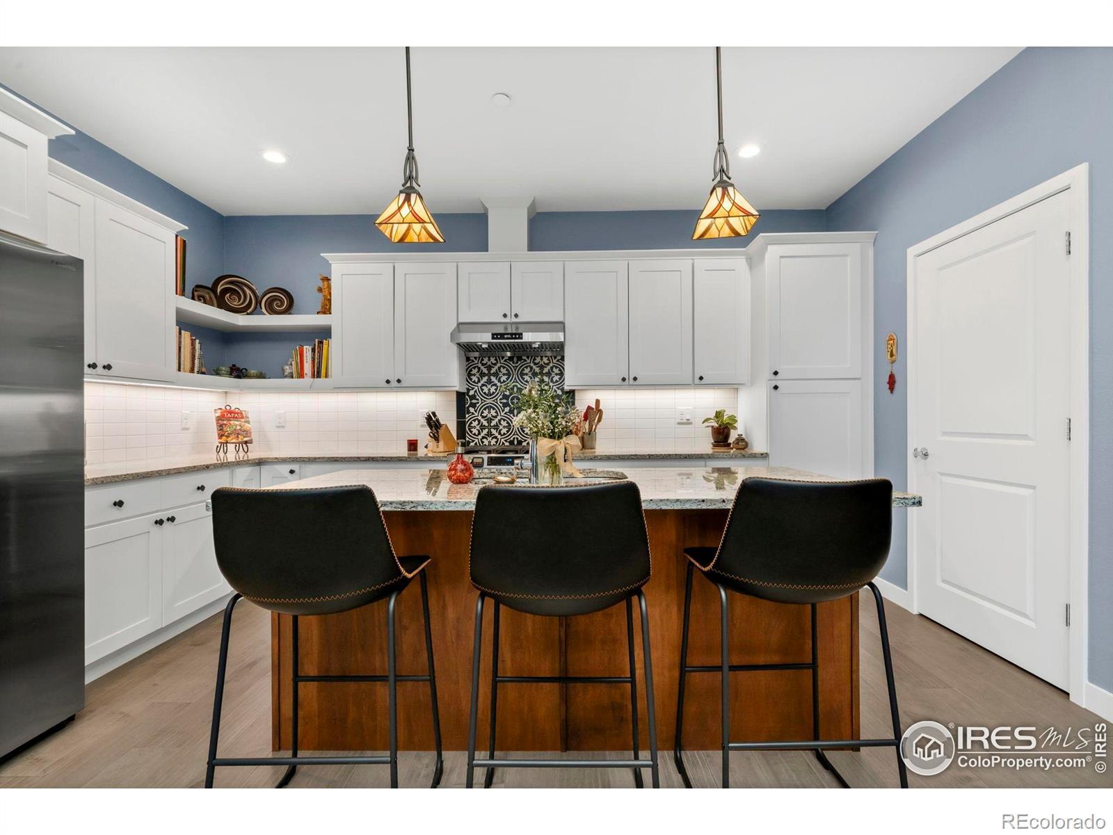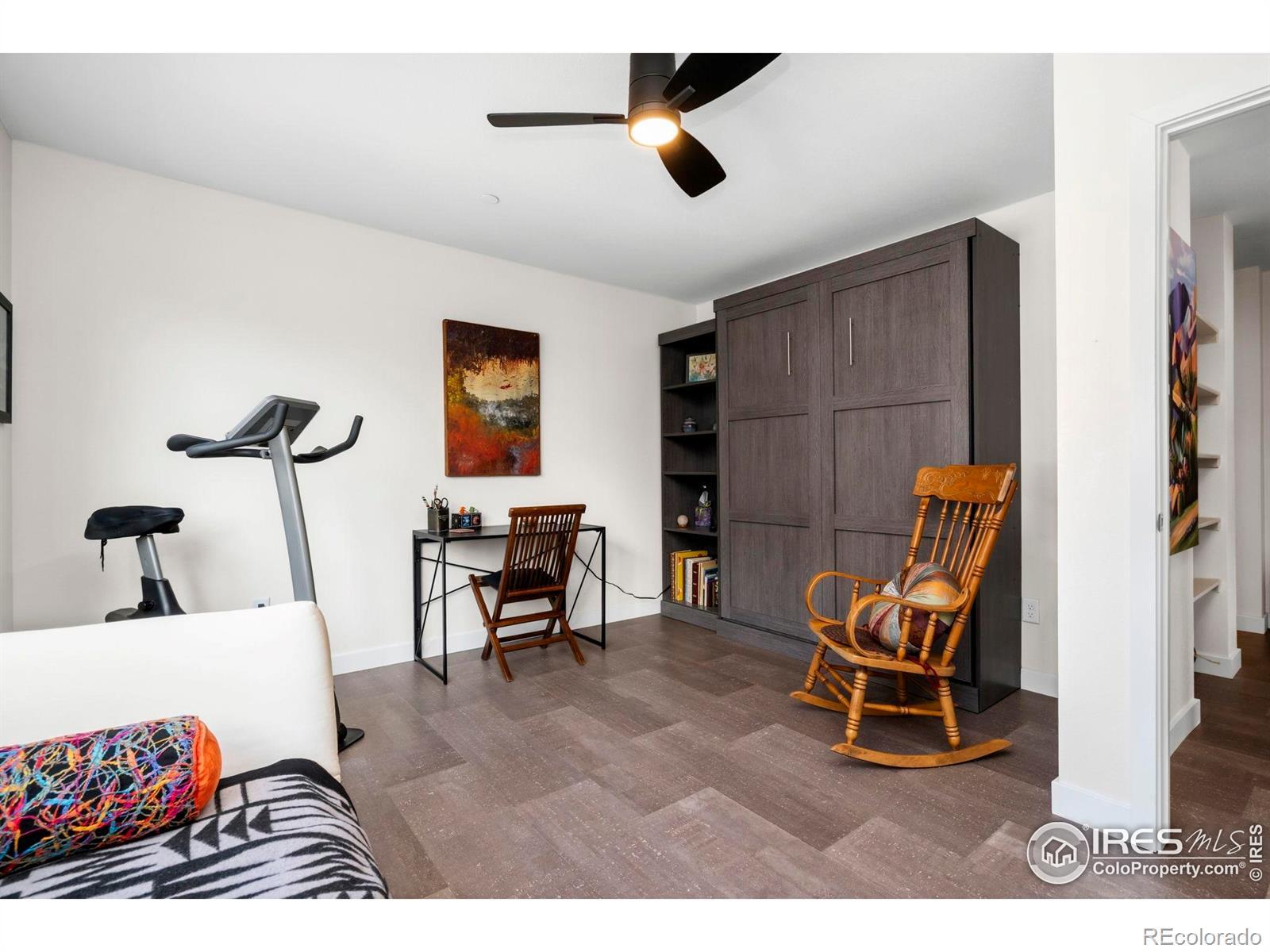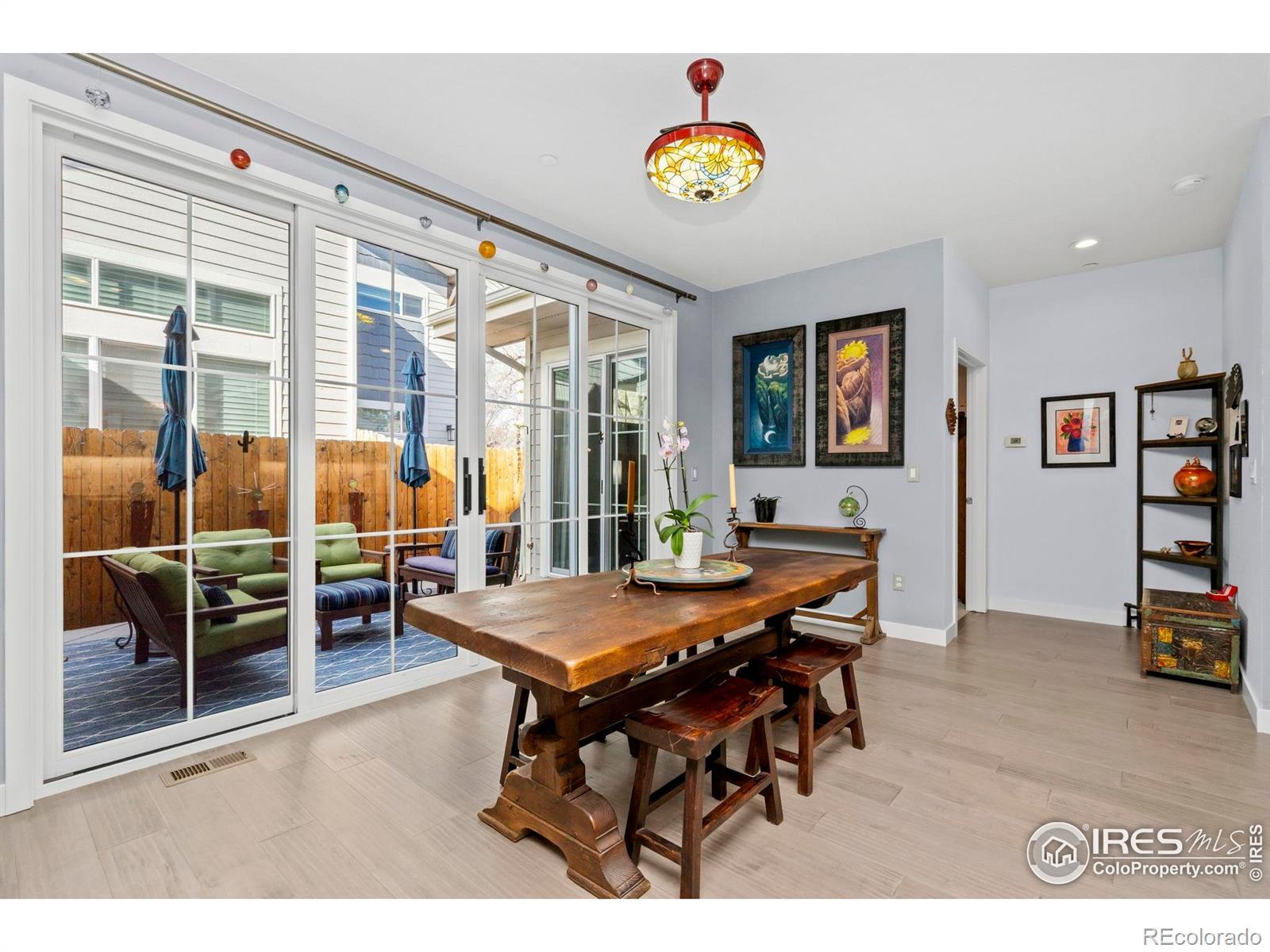 Welcome to effortless living in this beautifully updated and thoughtfully customized townhome, designed with comfort, convenience, and low-maintenance enjoyment in mind. With a desirable main-floor primary suite and minimal exterior upkeep, this 3-bedroom residence + a study offers the perfect blend of style and simplicity. The main level is ideal for everyday living and entertaining, featuring a custom-built bar, elegant new light fixtures, a stylish kitchen backsplash, a new vent hood, and a professionally installed pantry system for exceptional organization. Everything you need is easily accessible on one level. Just off the dining area, double sliding glass doors open to a private paved patio. The main-floor primary suite is a true retreat, offering a custom closet system for enhanced storage, direct patio access through sliding glass doors, and a barn door for seamless entry to the en-suite bath. Upstairs provides a comfortable space for guests or hobbies, with two additional bedrooms and a dedicated office. One bedroom includes a built-in Murphy bed, allowing flexibility for visiting family while maintaining functional space year-round. Both bedrooms include new custom closet doors, and the entire upper level is finished with warm, all-new cork flooring. The staircase has been beautifully redesigned with new wood treads and tile risers, adding architectural character. The garage is equally impressive, featuring built-in SafeRacks shelving for organized storage and durable epoxy flooring for easy maintenance. This move-in-ready home perfectly combines thoughtful updates, functional design, and lock-and-leave convenience, ideal for those seeking quality, comfort, and low-maintenance living without compromise. Here is your chance to live in the incredible Collins Square subdivision!