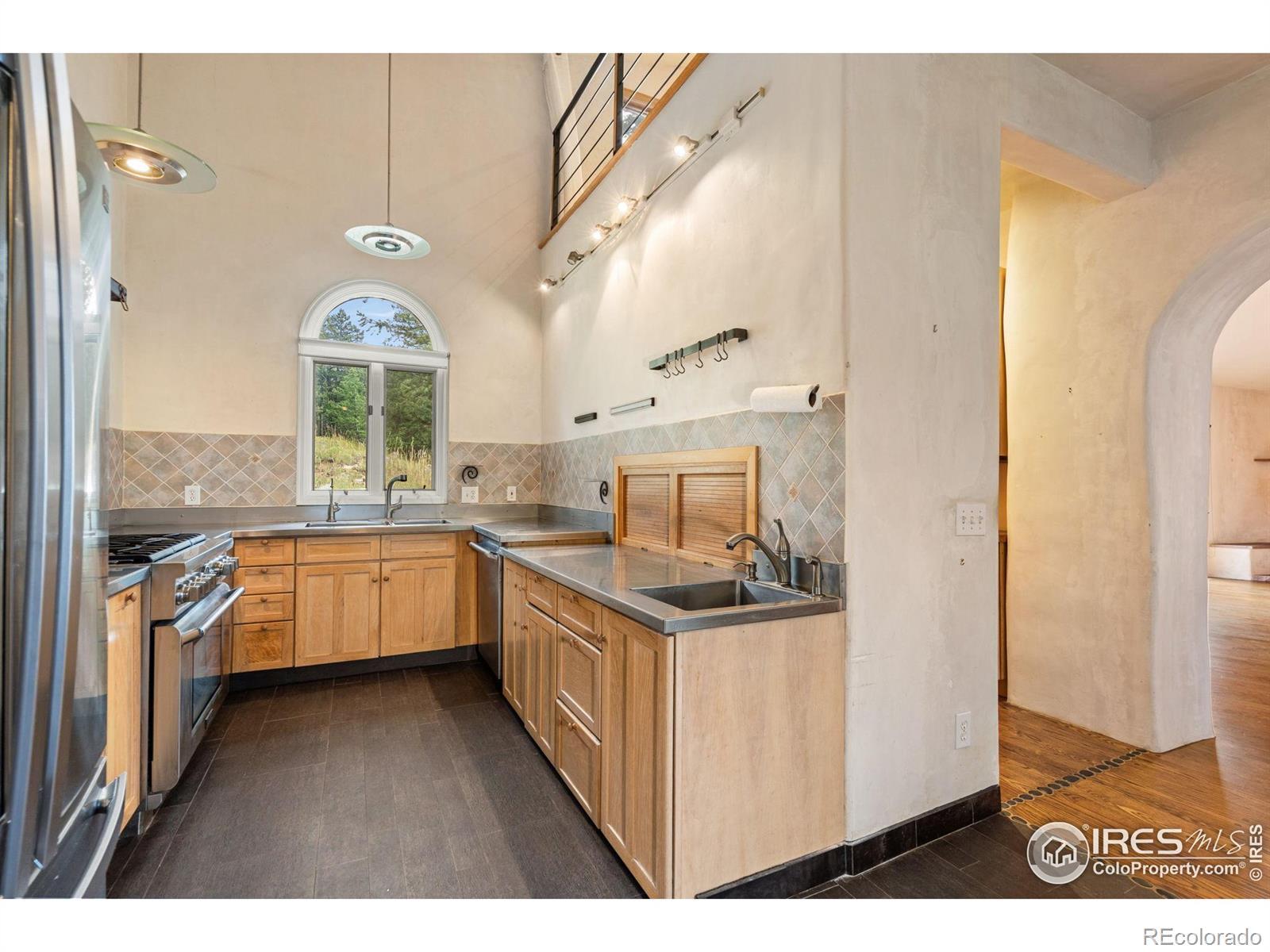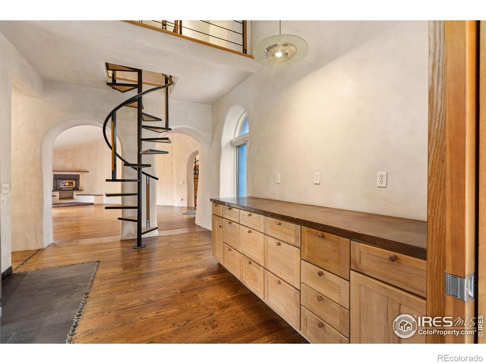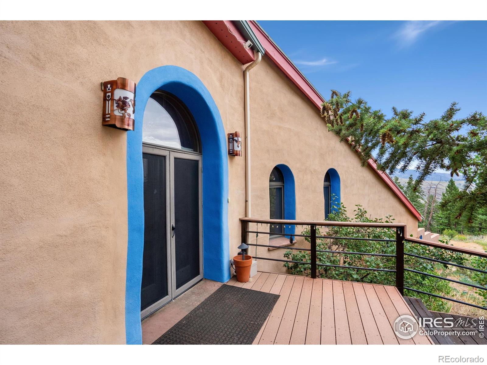 Escape to your own private mountain retreat at the very end of the road, perched atop 34 pristine acres with panoramic views stretching across Boulder and the surrounding peaks. Just 7.5 miles from downtown Boulder, this rare property offers complete privacy while bordering over 1,000 acres of county forest and trails, perfect for hiking, biking, and embracing the beauty of Colorado's outdoors. 1000 Alaska Road is a home and meticulously hand crafted work of art. The multilevel adobe construction is nestled into Arkansas Mountain and features east and west facing decks, a flagstone patio and enclosed courtyard. The interior, designed by renowned Navajo weaver Teresa Archuleta-Sagel, features hand plastered walls (it took the artist she hired six months to plaster the interior!) and custom metal spiral staircases. A library was created with a custom art and book shelf by Turkish furniture maker Alexander Giray. Radiant floor heating provides year-round comfort, while beautiful, unique artisan details create an inspiring space perfect for creatives and nature lovers alike. The modern luxury kitchen, complete with a Thermador range, is designed for both culinary passion and entertaining. A lower level with its own private entrance and patio offers flexible living options-ideal for guests, a studio, or a home office. A spacious workshop adds room for projects, hobbies, or gear storage. Whether soaking in the breathtaking views, enjoying the unmatched privacy, or exploring the connected network of nearby trails, this home offers a rare combination of seclusion, inspiration, and convenience-all just minutes from Boulder.