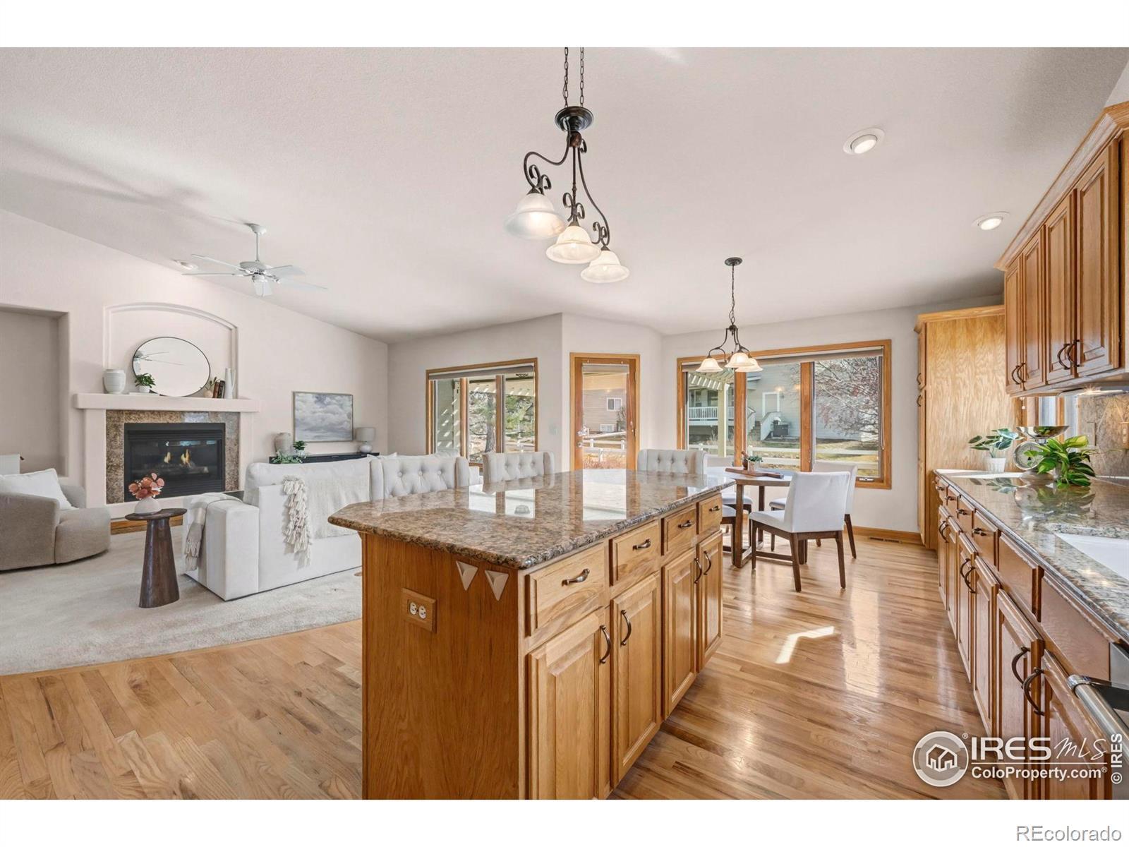 Beautiful ranch home on a large corner lot in desirable Highland Meadows. Thoughtfully designed with an open, light-filled layout, and incredible space to spread out. The welcoming entry opens to formal living and dining rooms, ideal for hosting gatherings. The spacious kitchen features warm hardwood floors, a large center island, granite countertops, stainless steel appliances, and abundant cabinetry. It flows seamlessly into the vaulted great room with a cozy gas fireplace, creating the heart of the home. The main-level primary suite includes a walk-in closet and a 5-piece bath. A secondary ensuite bedroom with a 3/4 bath offers easy access to the laundry room for added convenience. An additional bedroom and full bath provide flexibility for guests or multigenerational living. The finished basement expands your living space with a massive rec room, second fireplace, wet bar, two additional bedrooms, a full bath, and extensive storage, including an unfinished storage room and oversized crawlspace. Step outside to enjoy the large patio and pergola overlooking community greenbelt, surrounded by mature trees and a beautiful rose garden. A three-car garage offers ample space for vehicles, storage, or a workshop. Pre-inspected and includes a one year home warranty for added peace of mind. A rare opportunity in Highland Meadows!