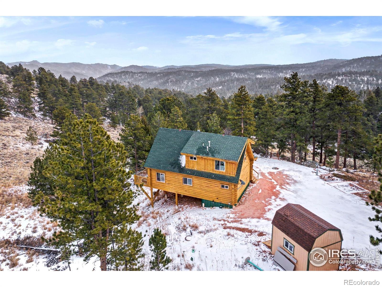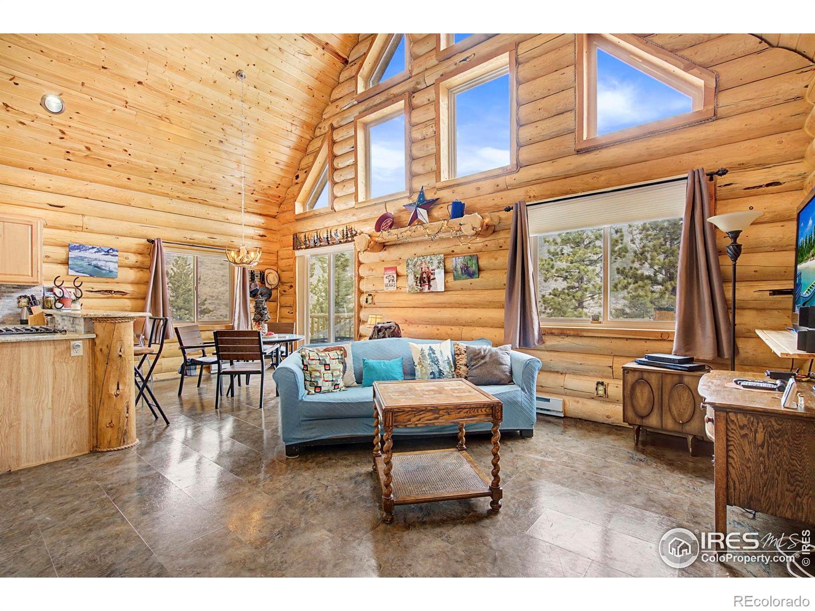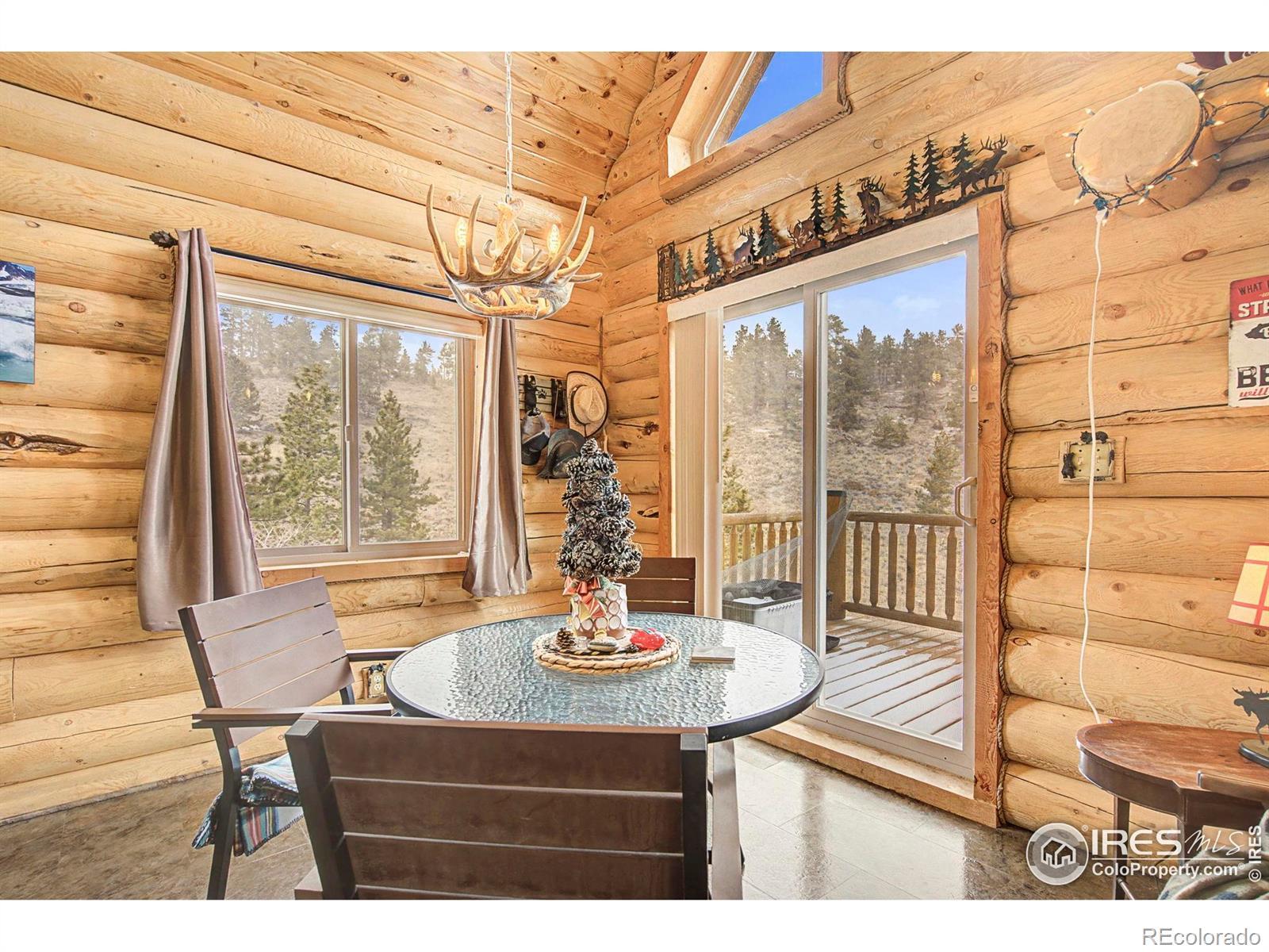 Escape to your own Colorado mountain retreat in sought-after Crystal Lakes. Built in 2016 and offered furnished, this move-in-ready 3-bedroom, 2-bath log cabin sits on a stunning 1.56-acre wooded lot with rock outcroppings, incredible views, and exceptional privacy on a quiet street. The open main level features soaring two-story vaulted ceilings that flood the home with natural light and frame picturesque mountain scenery. The kitchen is equipped with stainless steel appliances, a gas range/oven, and granite countertops-ideal for everyday living or entertaining. A cozy gas stove in the living room adds the perfect mountain ambiance with low-maintenance comfort. The main-level primary suite includes an attached bath for convenient one-level living. Upstairs, two additional bedrooms and a full bath provide space for family and guests. A main-level utility room with washer adds practicality. Enjoy the outdoors from the wraparound deck or the expansive 20' x 40' lower deck-perfect for entertaining, relaxing, or even a unique camping platform for guests. Recent improvements include a new leach field and expanded cistern capacity, making this home suitable for full-time living or a second home. Located near Beaver Meadows Resort and less than one mile from the community clubhouse and amenities, with access to lakes, fishing, hiking, biking, golf, and year-round recreation. Turn-key and ready for your mountain lifestyle-weekend escape or full-time tranquility.