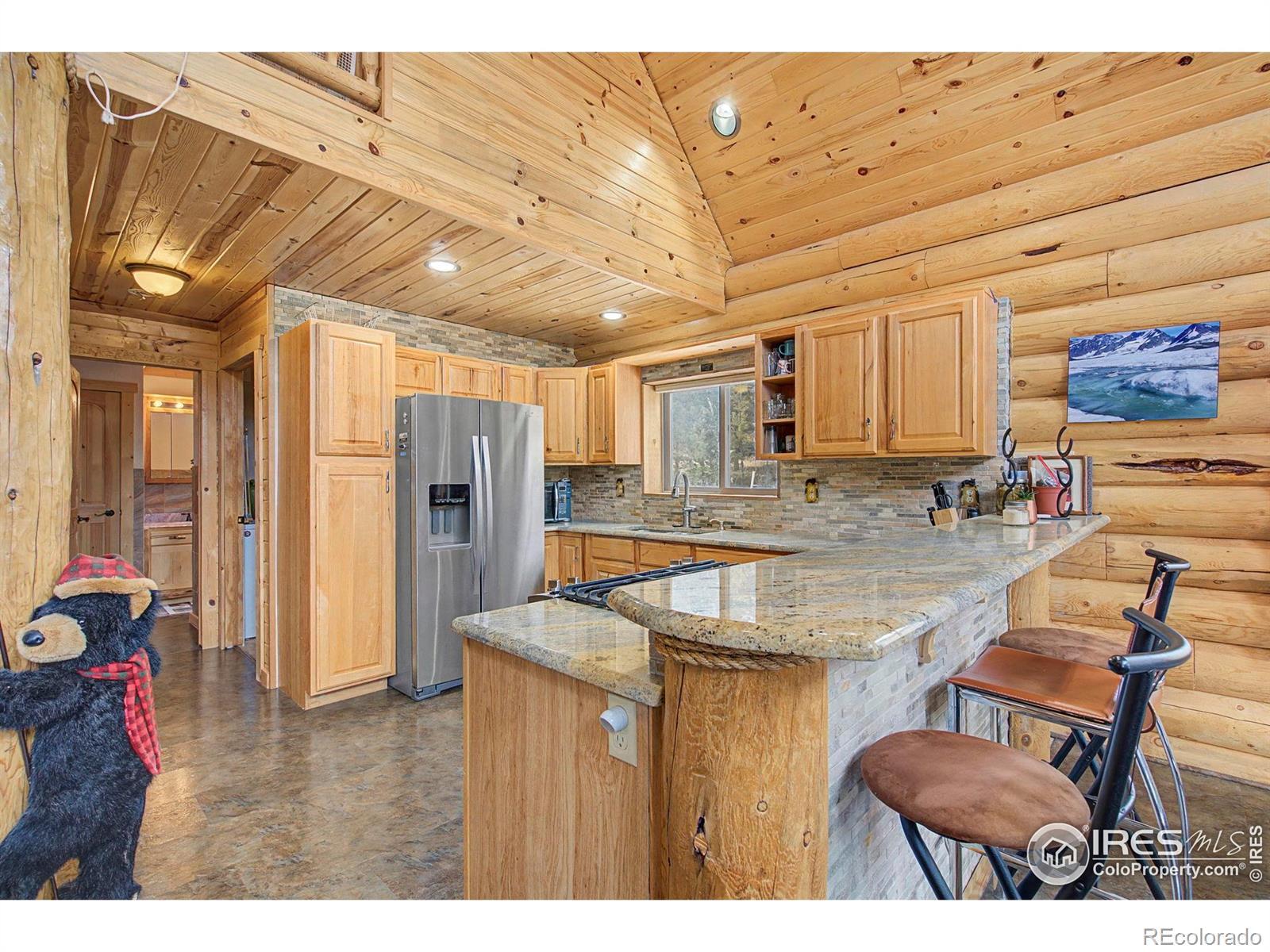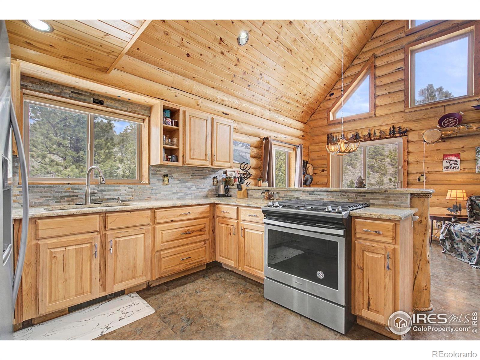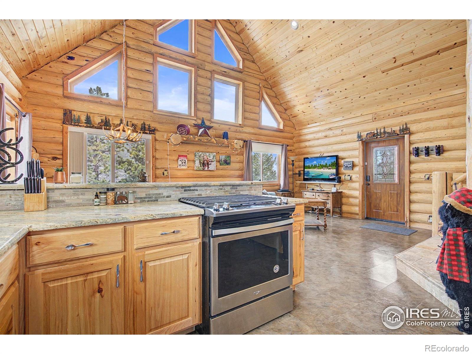 Escape to your own Colorado mountain retreat in sought-after Crystal Lakes. Built in 2016 and offered furnished, this move-in-ready 3-bedroom, 2-bath log cabin sits on a stunning 1.56-acre wooded lot with rock outcroppings, incredible views, and exceptional privacy on a quiet street. The open main level features soaring two-story vaulted ceilings that flood the home with natural light and frame picturesque mountain scenery. The kitchen is equipped with stainless steel appliances, a gas range/oven, and granite countertops-ideal for everyday living or entertaining. A cozy gas stove in the living room adds the perfect mountain ambiance with low-maintenance comfort. The main-level primary suite includes an attached bath for convenient one-level living. Upstairs, two additional bedrooms and a full bath provide space for family and guests. A main-level utility room with washer adds practicality. Enjoy the outdoors from the wraparound deck or the expansive 20' x 40' lower deck-perfect for entertaining, relaxing, or even a unique camping platform for guests. Recent improvements include a new leach field and expanded cistern capacity, making this home suitable for full-time living or a second home. Located near Beaver Meadows Resort and less than one mile from the community clubhouse and amenities, with access to lakes, fishing, hiking, biking, golf, and year-round recreation. Turn-key and ready for your mountain lifestyle-weekend escape or full-time tranquility.