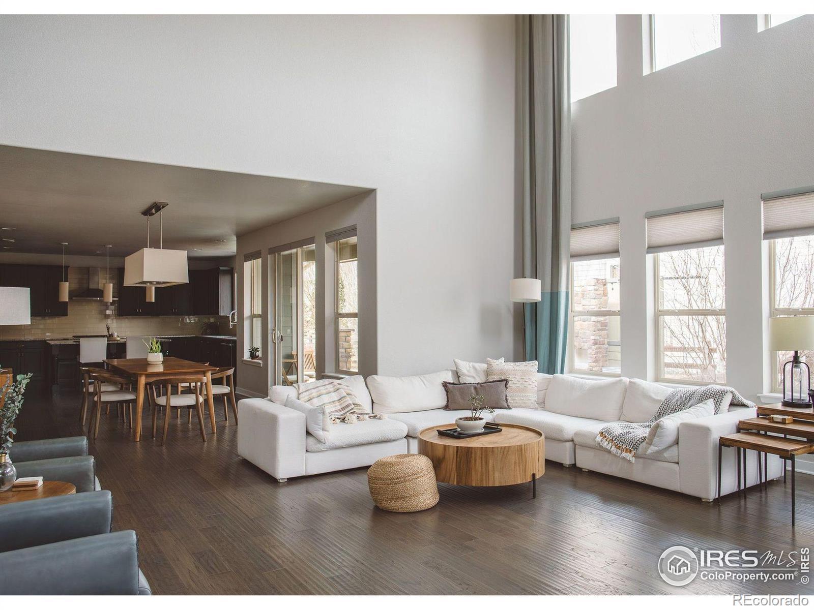 Located on both an expansive corner lot and a quiet cul-de-sac in one of Southeast Fort Collins' most sought-after neighborhoods, 6203 Swainsons Hawk Pl presents a rare opportunity to own a thoughtfully upgraded home in a prime setting. Conveniently positioned near top-rated schools, the Harmony Corridor, and I-25, the property offers both accessibility and neighborhood appeal. Inside, hardwood flooring extends throughout most of the main level, setting the tone for the home's elevated yet comfortable design. The upgraded kitchen is both functional and refined, featuring quartz countertops, an oversized center island, upgraded cabinetry, and premium stainless steel appliances, including a Wolf gas cooktop, KitchenAid double ovens, refrigerator, and a well-appointed butler's pantry with wet bar, built-in ice machine, and wine storage. The kitchen flows seamlessly into the main living areas while a spacious mudroom with custom built-ins provides added convenience. The upper level features a well-designed bedroom layout highlighted by a spacious primary suite with its floor to ceiling stone fireplace, oversized walk-in closet, and luxury five-piece bath. A secondary bedroom suite includes a private bath, while two additional bedrooms share a Jack-and-Jill bath. Dual staircases overlooking the foyer and living room allow abundant natural light throughout. The professionally finished basement with 9-foot ceilings expands the home's versatility, offering a generous rec room, work out room, bedroom, bathroom, and abundant storage.Outdoor living is a standout feature of this property. The backyard is designed for both relaxation and recreation, featuring a custom stone privacy wall with gas fireplace, expansive concrete patio, fenced yard and raised garden beds. A private bocce ball court in the side yard adds a unique and desirable amenity rarely found.Additional highlights include a three-car garage and HOA access to the neighborhood pool, clubhouse, and fitness facility.