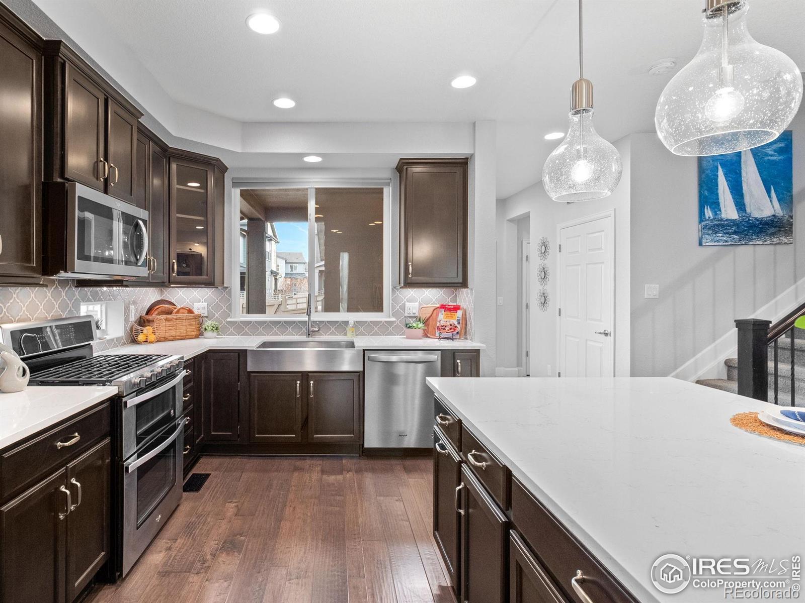 ABSOLUTELY STUNNING PAIRED HOME LOCATED IN THE HIGHLY SOUGHT AFTER GREEN GABLES NEIGHBORHOOD-RESORT STYLE AMENTIES. Stunning hotel resort pool, clubhouse, private beach and lake access. Miles of hiking and biking trails, close to shopping and restaurants. Lock and leave low-maintenance living for your busy lifestyle. As you step inside this meticulously maintained home your greeted with a spacious floorplan, beautiful wood floors, newly painted interior, exquisite designer lighting from Urban Lighting, bedrooms and stairs with new carpet. The gorgeous kitchen boasts quartz counter-tops, wood cabinets, pendant lighting above the large island with seating for five. Peak-a-boo windows to bring in additional light. Stainless steel appliances, gorgeous tile backsplash. RARE+DREAM COME TRUE-Majority of the closets are custom designed by California Closets, Including the pantry, 2 bedrooms the main hall closet and garage. The spacious dining and living areas are a great place to entertain friends and family, enjoy the game in front of the gas burning fireplace. The main floor powder room is conveniently located off the kitchen. The private spacious master suite is the perfect place to relax and unwind after a long day, with a custom designed closet. The master bathroom with large walk-in shower, beautiful tile surround, double sinks and lots of storage. The remaining two bedrooms one with designer walk in closet and full bathroom perfect for guests. The third bedroom is light and bright and could easily be used as a home office or gym. The unfinished basement has rough in for future basement yours to design and make it your own. The private patio is a great space to relax and BBQ with friends. 20 minutes to Downtown Denver, 30 minutes to DTC a short drive to 6th Ave and I 70 for a mountain get-a-way. Located in the highly desired Jeffco School District. You will want to see this stunning home located in the heart of Lakewood.