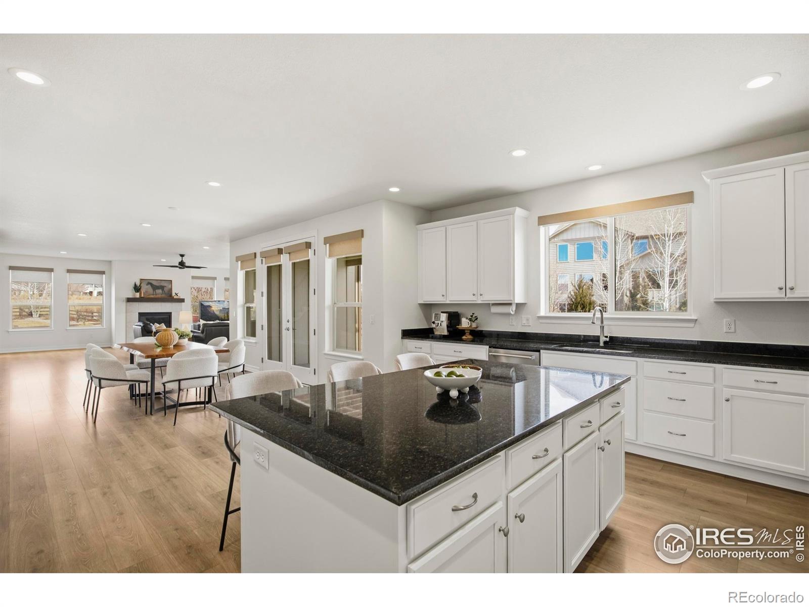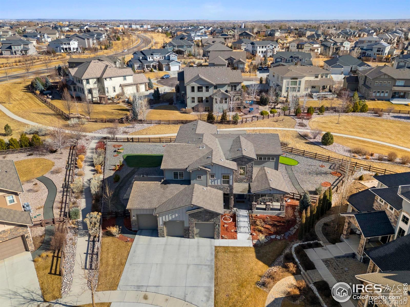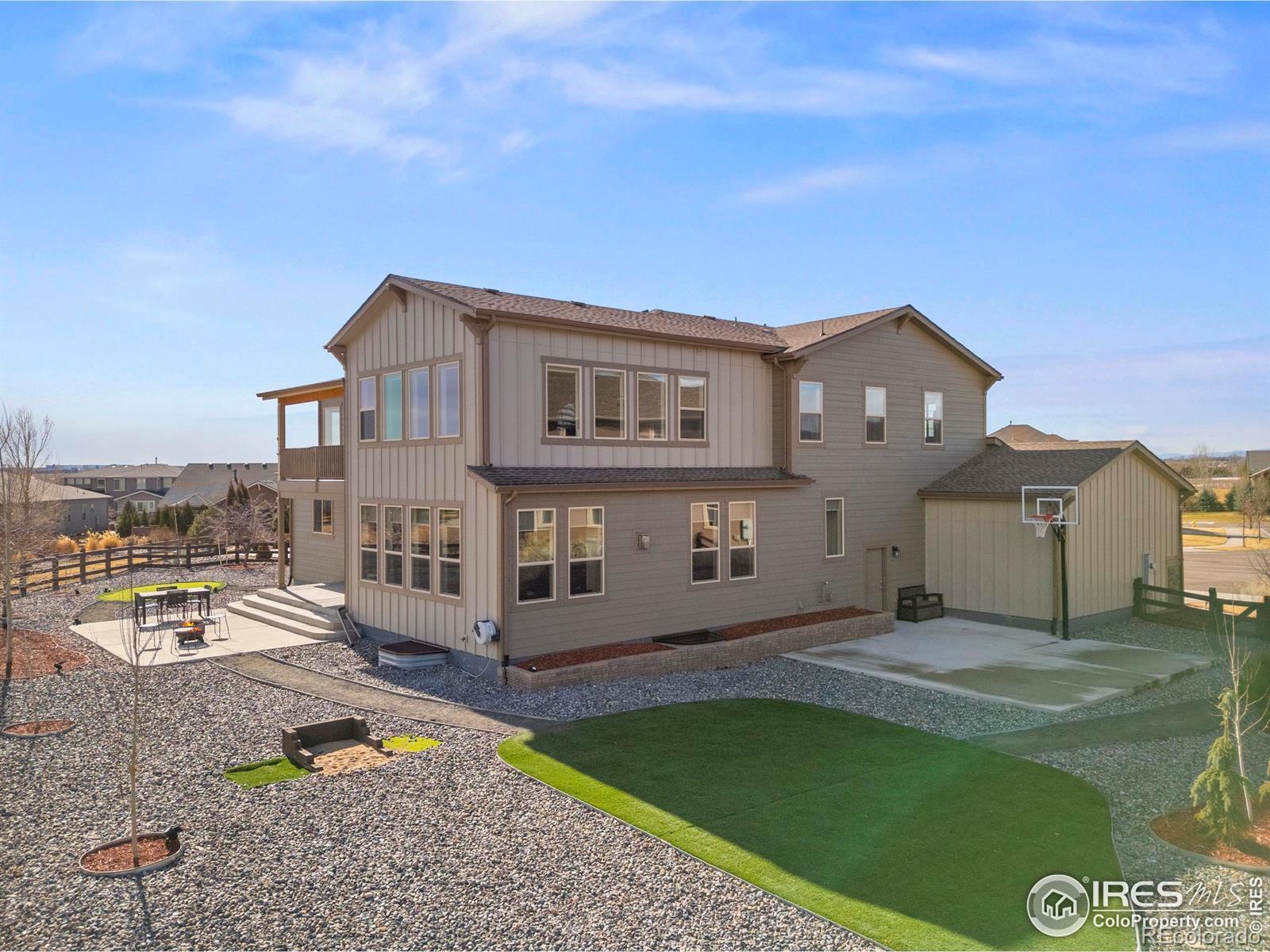 Discover turn-key elegance in this expanded, Toll Brothers-built 6-bedroom estate in Kechter Farm, where high-end sophistication meets family sanctuary. The interior shines with soaring ceilings, a private office, and a gourmet kitchen featuring KitchenAid appliances and a sprawling quartz island that flows seamlessly into the connected main-floor living and dining rooms. Designed for modern living, the home includes a 4-car EV-ready garage and dual laundry suites. The primary retreat is a true sanctuary, boasting a 21x20 sitting room and private covered deck. The upper level is thoughtfully designed with one ensuite bedroom and two additional bedrooms joined by a Jack and Jill bath. Enjoy the finished basement's spacious rec room, wet bar, and two additional bedrooms. Outside, a private resort awaits with a putting green, basketball court, and expansive patio. Situated in the prestigious Fossil Ridge High district, this haven offers an unmatched Fort Collins lifestyle. Rest at ease knowing both the home and roof are only six years old!