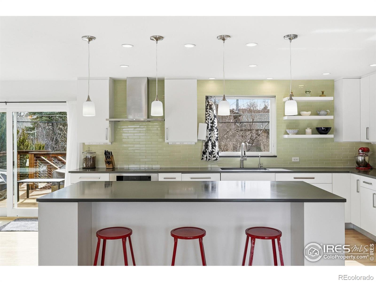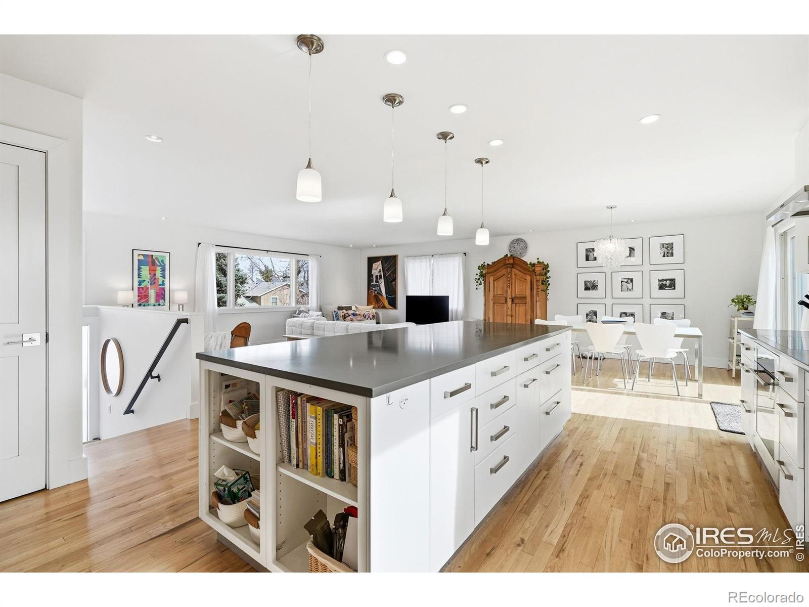 *Showings start on Sat 2/21 during the Open House 1-3p & Sun 2/22 1-3p- This beautiful 4BD/2BA bi-level residence impresses with recently remodeled interiors, numerous upgrades, Flatirons views, and abundant outdoor space in the heart of South Boulder's Table Mesa neighborhood. Masterfully updated by Elton Construction in 2016, this sun-kissed sanctuary welcomes you inside with gleaming oak floors, upgraded Marvin Windows, custom lighting and handsome millwork throughout. From the gracious foyer, you're invited to the open-plan upper level, where a large living room wrapped in windows leads to a dining area topped by a stunning chandelier. Chefs will love the open kitchen, featuring sleek European-style cabinetry, a center island, Caesarstone counters, subway tile backsplashes, and upscale stainless steel appliances by Wolf and Sub-Zero. Step out to the sunny south-facing deck for al fresco dining and lounging, looking out to mountain vistas and the oversized, fully fenced yard below. The well-planned bedroom wing on this level begins with an extra-large primary bedroom with double exposures and a wide reach-in closet. Two secondary bedrooms feature northern outlooks and big closets, while the nicely appointed windowed bathroom boasts handsome stone tile, a contemporary floating vanity and a large tub/shower. Head to the lower level to discover a spacious family room featuring a wood-burning fireplace and plenty of space for playroom, office, and home gym areas. A bright fourth bedroom sits near another windowed full bathroom with designer Cuban-style tile. Additional closet space, a large mechanical room with a stacked washer-dryer, and direct access to an attached two-bay garage add wonderful convenience to this turnkey Boulder beauty. Nestled in sought-after Table Mesa, this South Boulder home is minutes from Harlow Platts Community Park, Viele Lake, South Boulder Rec Center, numerous trails and open space. Award-winning schools, and Table Mesa Shopping Center.