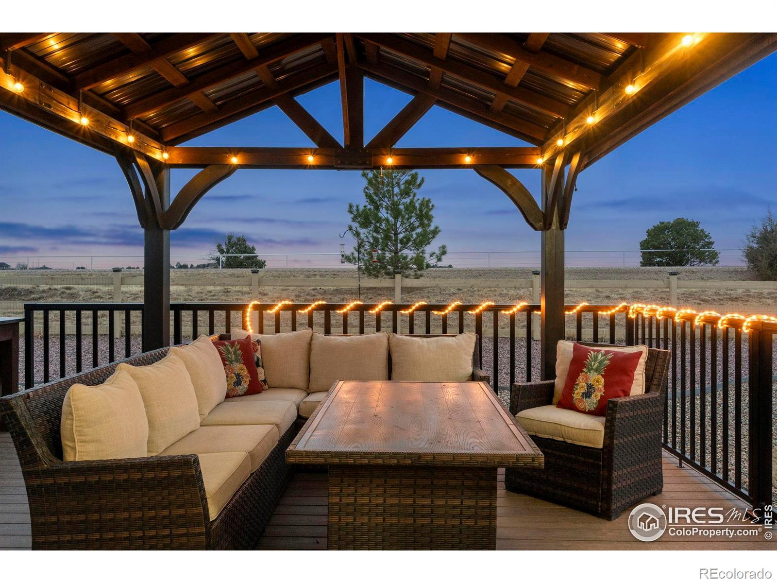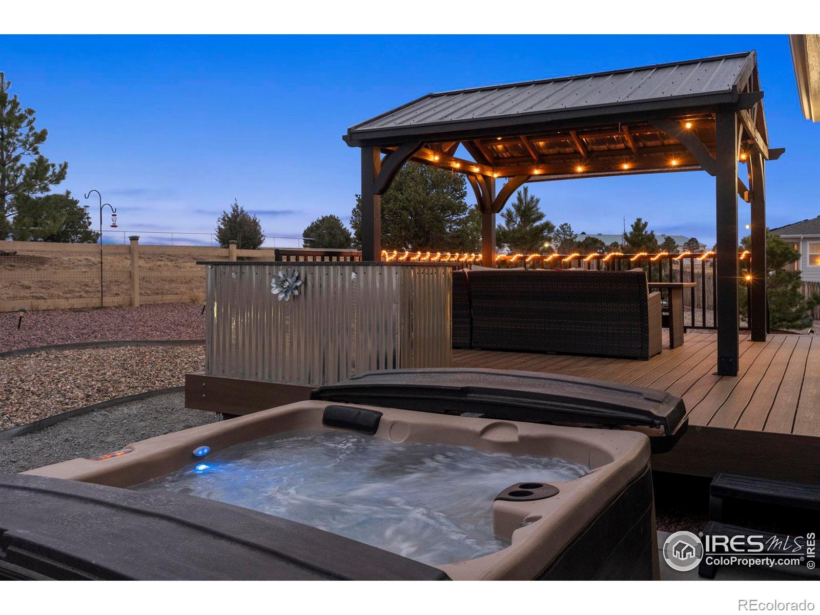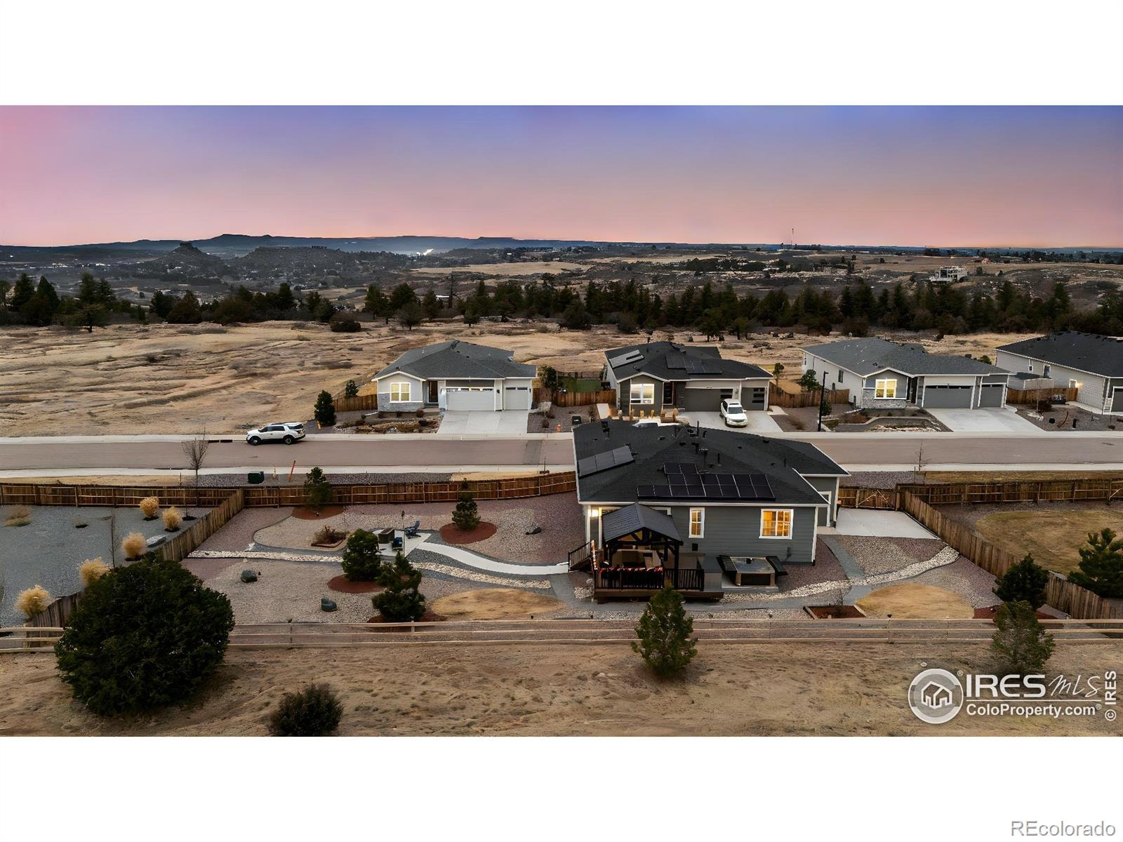 Tucked at the end of a quiet cul-de-sac, 3791 Castle Vista offers the kind of setting that's hard to find, over a third of an acre backing to private open space with no rear neighbors and uninterrupted views stretching to Pikes Peak. This ranch-style home blends comfort and functionality with 3 bedrooms, 2 bathrooms, and a layout designed for easy living. Inside, you'll find updated lighting and hardware, newer appliances including washer and dryer, and custom window coverings that give the home a polished, finished feel. Every room is equipped with a Fanimation ceiling fan for year-round comfort. Step outside and the backyard truly sets this property apart. A 16x20 deck creates the perfect space for entertaining or simply taking in Colorado sunsets. The yard is thoughtfully designed with a lighted gazebo, hot tub, two planter boxes, a 12x12 fire pit area, and even a separate pad ready for a future shed. Drip lines along the rear fence make landscaping low-maintenance, and the owned solar system create an easy and affordable lifestyle. Additional highlights include pre-wiring for an alarm system and a spacious 3-car garage with built-in storage shelving. Private setting. Premium lot. Mountain views. Move-in ready.