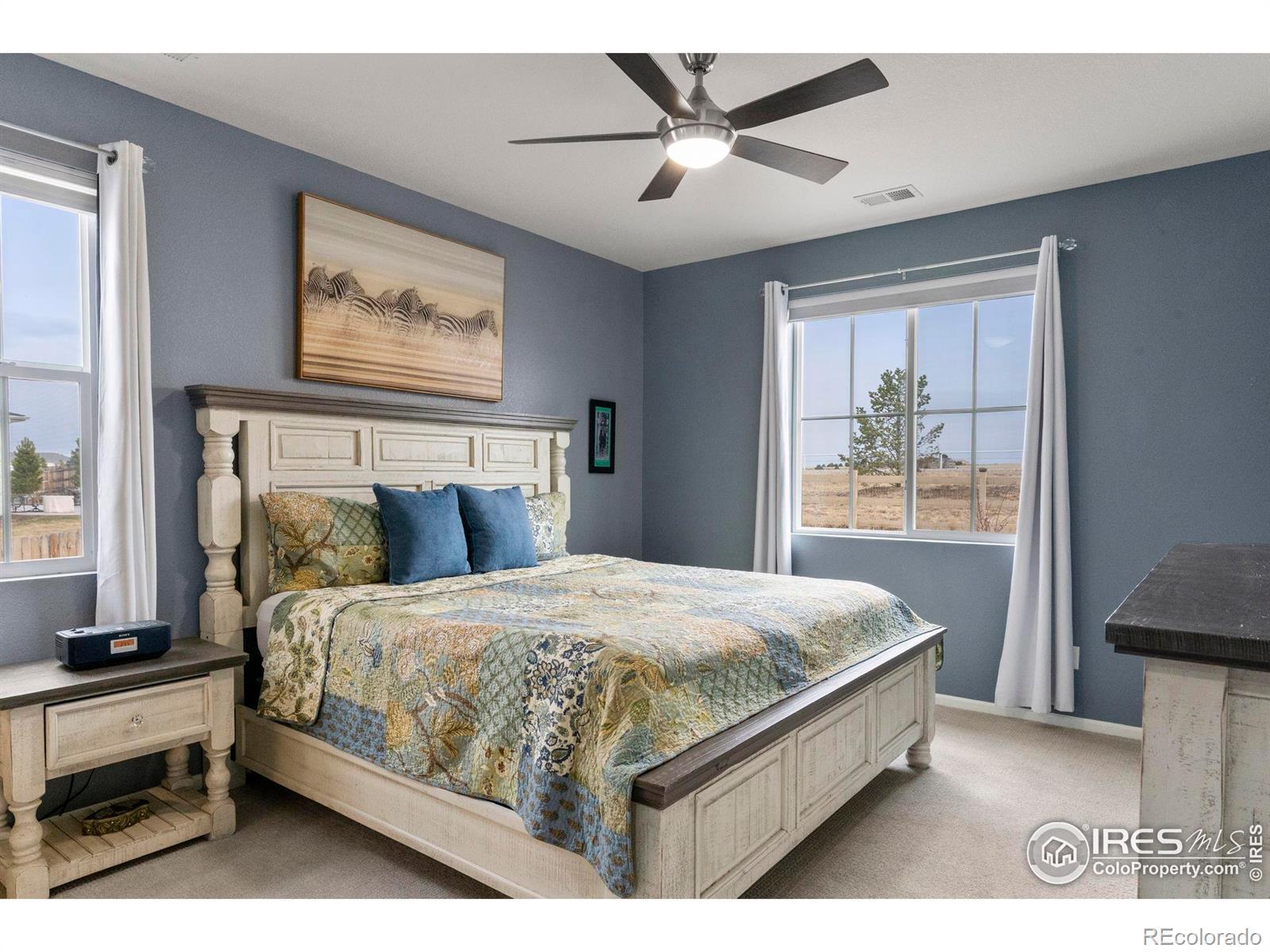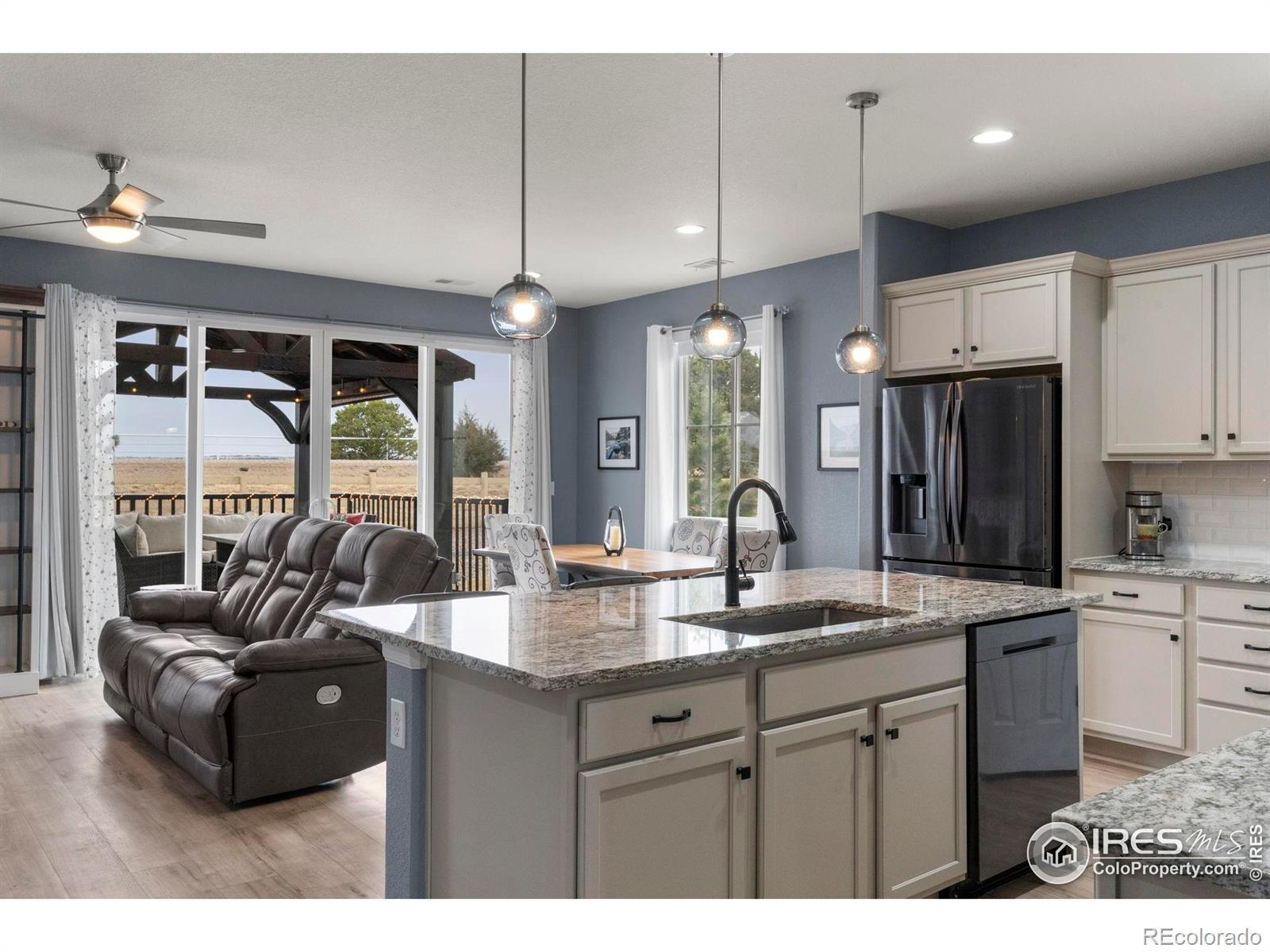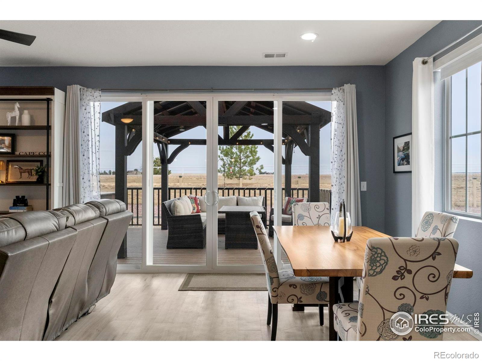 Tucked at the end of a quiet cul-de-sac, 3791 Castle Vista offers the kind of setting that's hard to find, over a third of an acre backing to private open space with no rear neighbors and uninterrupted views stretching to Pikes Peak. This ranch-style home blends comfort and functionality with 3 bedrooms, 2 bathrooms, and a layout designed for easy living. Inside, you'll find updated lighting and hardware, newer appliances including washer and dryer, and custom window coverings that give the home a polished, finished feel. Every room is equipped with a Fanimation ceiling fan for year-round comfort. Step outside and the backyard truly sets this property apart. A 16x20 deck creates the perfect space for entertaining or simply taking in Colorado sunsets. The yard is thoughtfully designed with a lighted gazebo, hot tub, two planter boxes, a 12x12 fire pit area, and even a separate pad ready for a future shed. Drip lines along the rear fence make landscaping low-maintenance, and the owned solar system create an easy and affordable lifestyle. Additional highlights include pre-wiring for an alarm system and a spacious 3-car garage with built-in storage shelving. Private setting. Premium lot. Mountain views. Move-in ready.