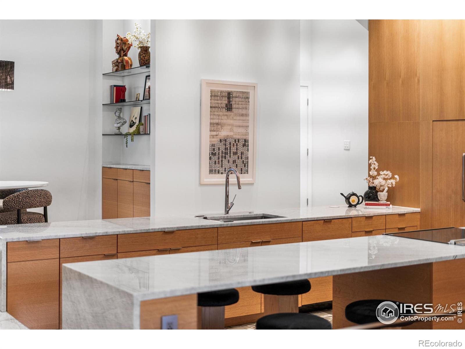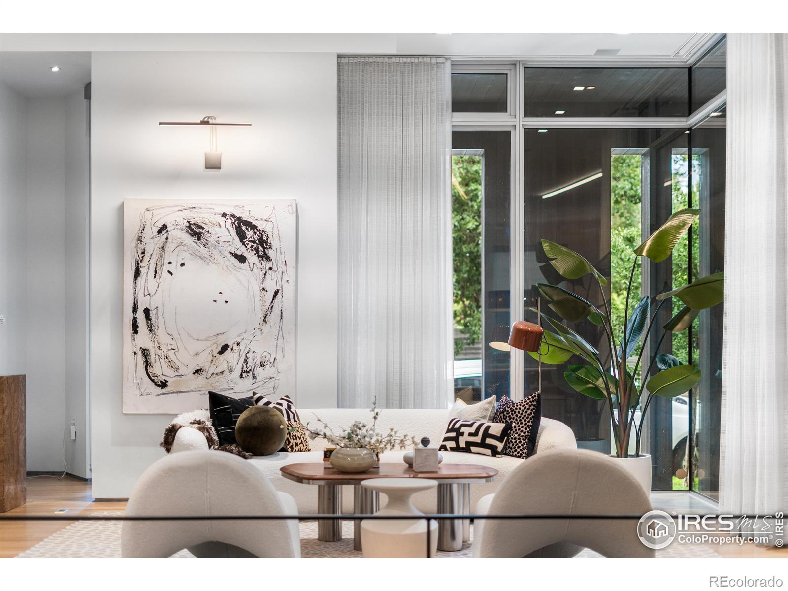 Luxury, location, and exceptional design converge in this bold Highlands townhome. Wrapped in striking Vero plaster and stainless steel, the exterior makes a statement, while 2,300 sq. ft. of thoughtfully designed space spans three levels. Inside, the main floor boasts a sophisticated living room with floor-to-ceiling windows, sheer drapery, designer lighting, and a sleek linear fireplace that seamlessly leads into a kitchen where form meets function. Wood-paneled cabinetry, a built-in coffee bar, Bosch and Viking appliances, and a marble waterfall island define this stylish yet practical space. The dining area features custom glass shelving and a built-in Miele wine fridge. The second level is anchored by a dramatic two-story solarium with automated blinds, creating an ideal setting for a home office or lounge. Two secondary bedrooms share a Jack-and-Jill bathroom with vessel sinks, a walk-in shower, and warm wood cabinetry. The third floor is dedicated to the primary suite, complete with a spacious bedroom and expansive windows. The ensuite features marble accent walls, decorative tile, and a dual vanity bathroom with a walk-in shower. Additional highlights include a built-in Control4 smart system for managing TVs, audio, and HVAC. All mounted TVs, window treatments, lighting fixtures, patio table, and grill are included. A 2-car tandem garage with built-in cabinetry offers direct access. With no HOA and unmatched value in LoHi, this is luxury living at its finest. Schedule your private showing today!