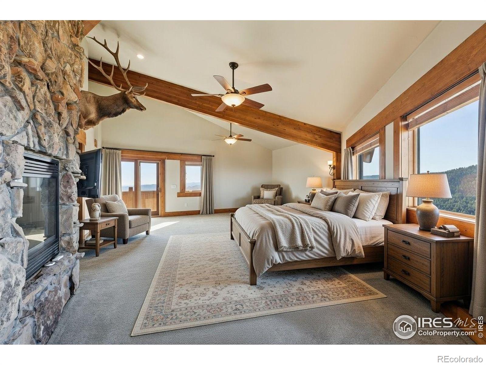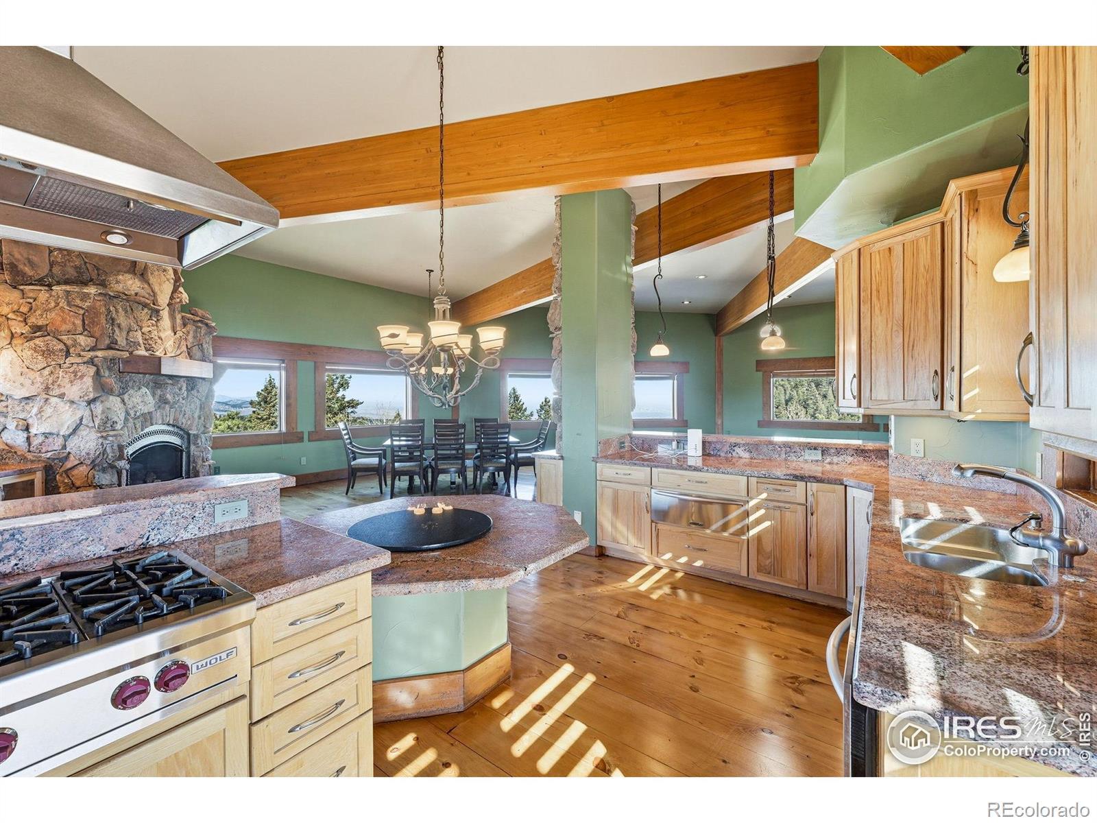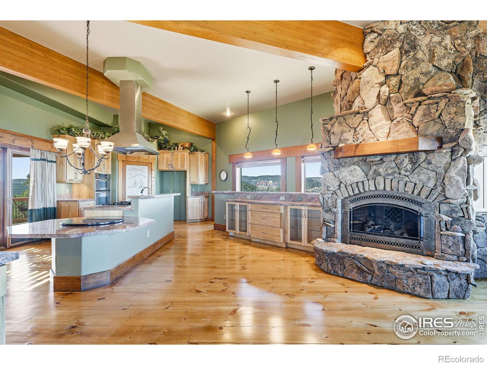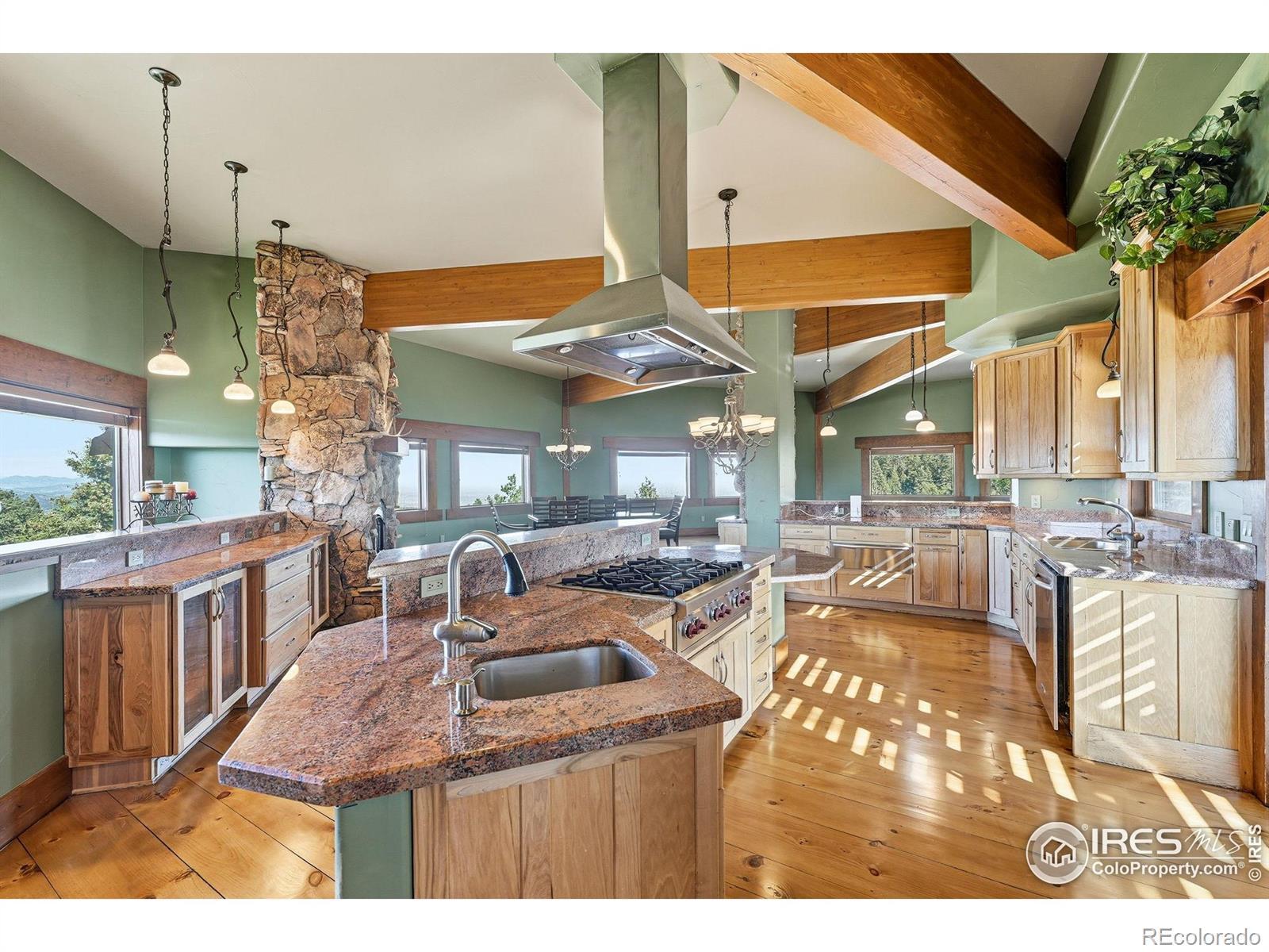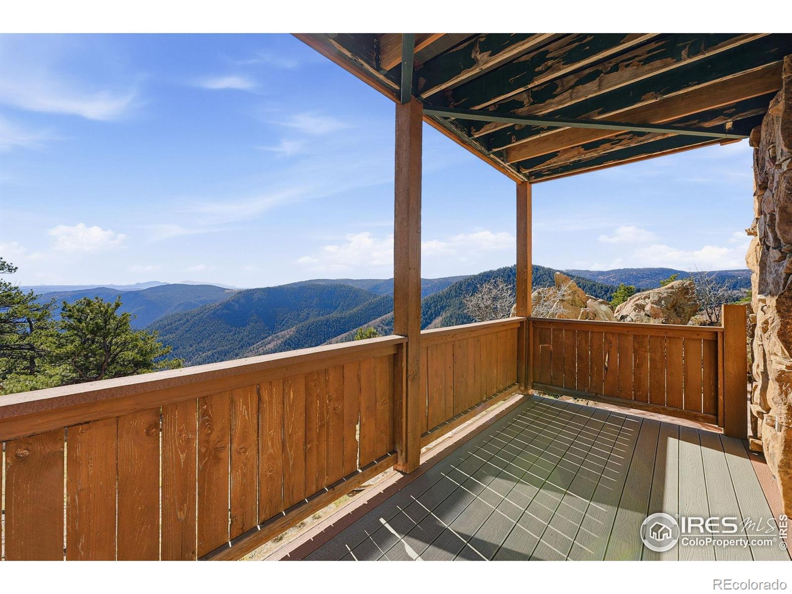 Perched atop the ridgelines of Deer Creek Canyon at over 8,000 feet in Littleton, CO, this custom estate at 14900 Elk Mountain Trail offers remarkable privacy, wide-open views, and relaxed Colorado mountain living. Set above forested valleys and rolling peaks, it blends classic mountain architecture with thoughtful craftsmanship throughout. Designed to maximize natural light and scenery, the home features expansive windows, vaulted beams, rich stonework, eastern white pine floors, and custom hickory cabinets, and picture windows on every level framing Pike's Peak, Mount Evans, Longs Peak, and the distant Denver skyline. The grand entry leads into a welcoming great room and well-appointed chef's kitchen with premium appliances, generous granite surfaces, dumbwaiter, and views in every direction. Warm finishes and a beautiful stone fireplace create an inviting, livable feel. Multiple primary suites with private balconies, plus additional bedroom retreats, ensure privacy and outdoor connection. Multiple decks make sunrise coffee, sunset dinners, and stargazing effortless. A separate oversized garage/workshop includes a full carriage home above-ideal for guests or multigenerational living. Propane generator and two owned 1,500-gallon tanks guarantee year-round reliability. Owners enjoy exclusive access to an adjoining 90-acre rural cluster and the property sits just 65 minutes from DIA-perfect as a full-time residence, mountain getaway, or family retreat with easy Front Range access. 14900 Elk Mountain Trail-your private mountaintop sanctuary.