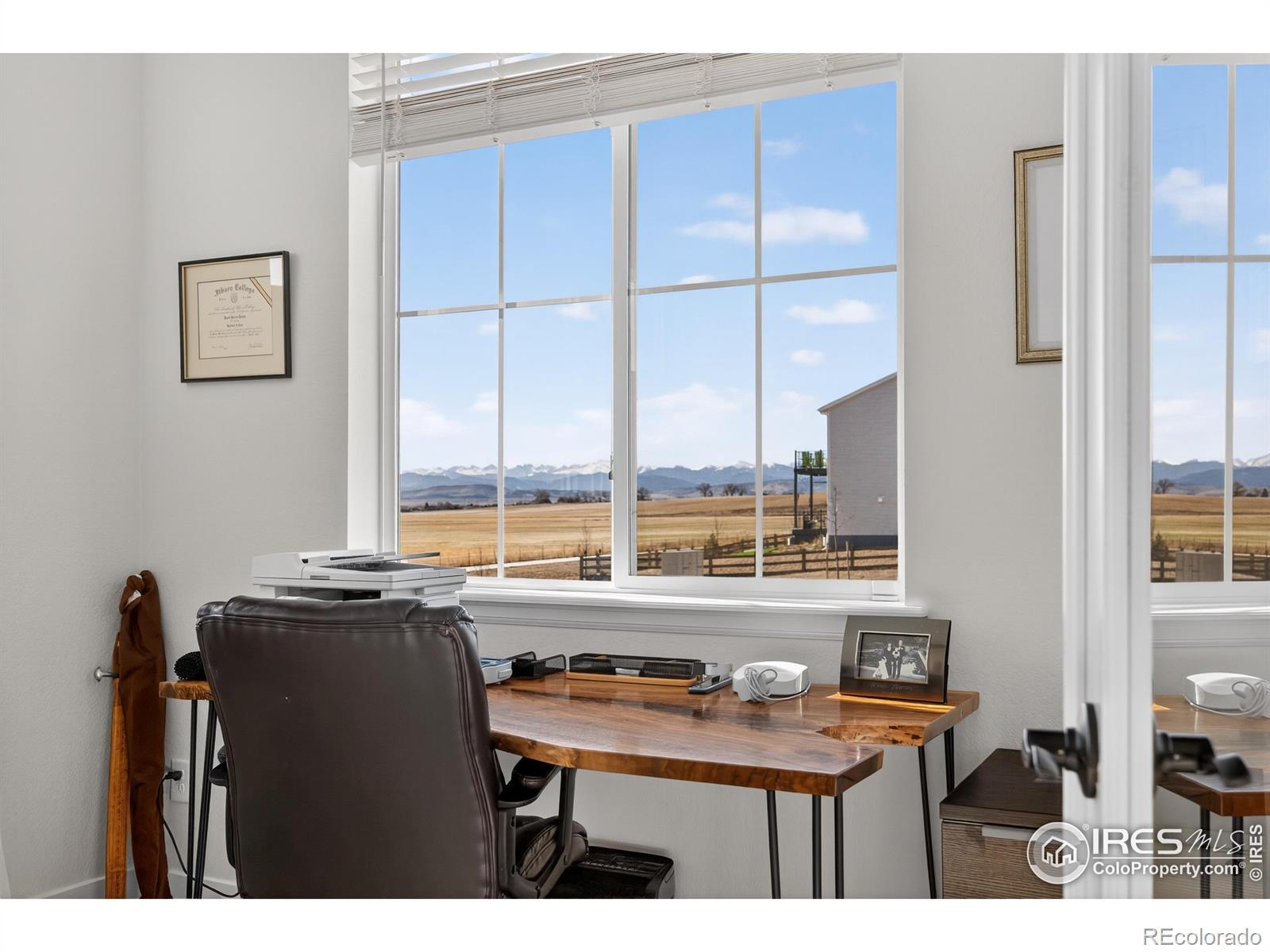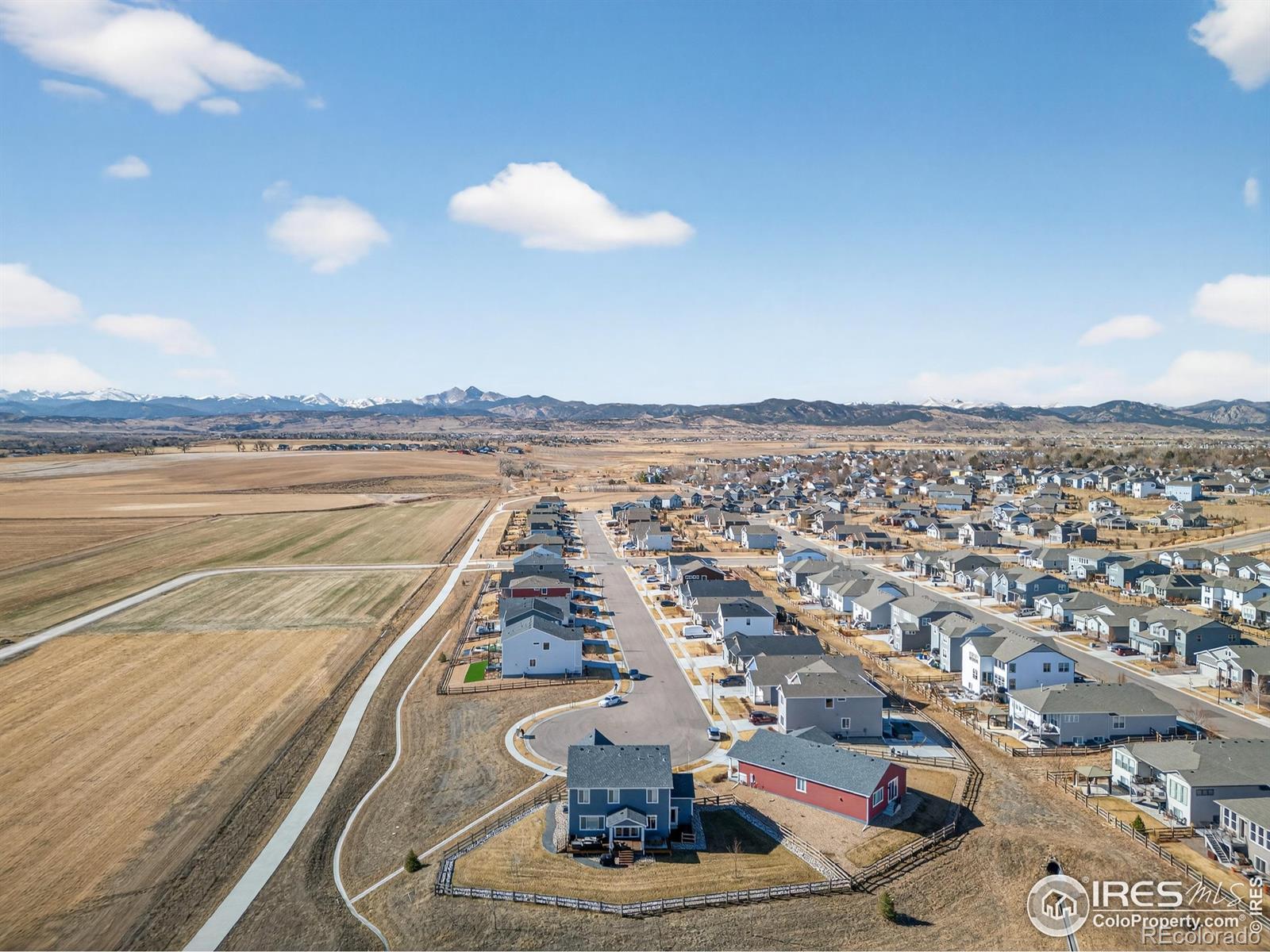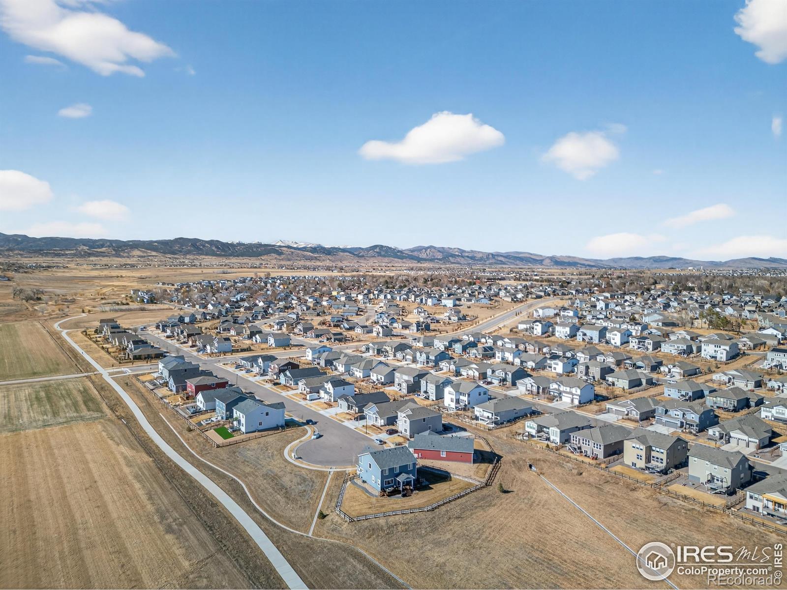 Nestled at the end of a serene cul-de-sac in sought-after Heritage Ridge, this better than new 2-story home offers the perfect blend of privacy, luxury, and convenience. Boasting arguably the best lot in the neighborhood, this is a private retreat with breathtaking views of open space and farmland, and only one adjacent neighbor. The home feels like a builder's model home! Set on an expansive 11,000 sqft lot, the 2,482 sqft home has been thoughtfully designed with modern style. The main floor features a bright, dedicated office with french doors-perfect for remote work, complete with inspiring south facing views. The living room, with its inviting fireplace and 9-ft ceilings, balances spaciousness with warmth, while the kitchen dazzles with white shaker cabinets, stainless steel appliances, gas range, pantry, and space for cooking and entertaining. Upstairs, the versatile loft offers a second living space, play area, or media room, while the conveniently located laundry room adds to everyday ease. The luxurious primary suite includes a large walk-in closet and en suite bath. Two additional bedrooms offer ample space for family or guests. The formal guest bedroom is enormous and feels like a small apartment. Step outside to the new composite deck to enjoy pleasant evenings unwinding. The oversized, gently sloped yard is fully fenced and complete with a dog run with artificial turf for low-maintenance. In Heritage Ridge residents enjoy access to the community pool, walking trails and sidewalks just outside your door, and close access to Berthoud's amenities, businesses, and schools. This home is a rare find, offering modern style, breathtaking colorado views, and a close connection to the best of Berthoud. Don't miss your chance to own this extraordinary property!