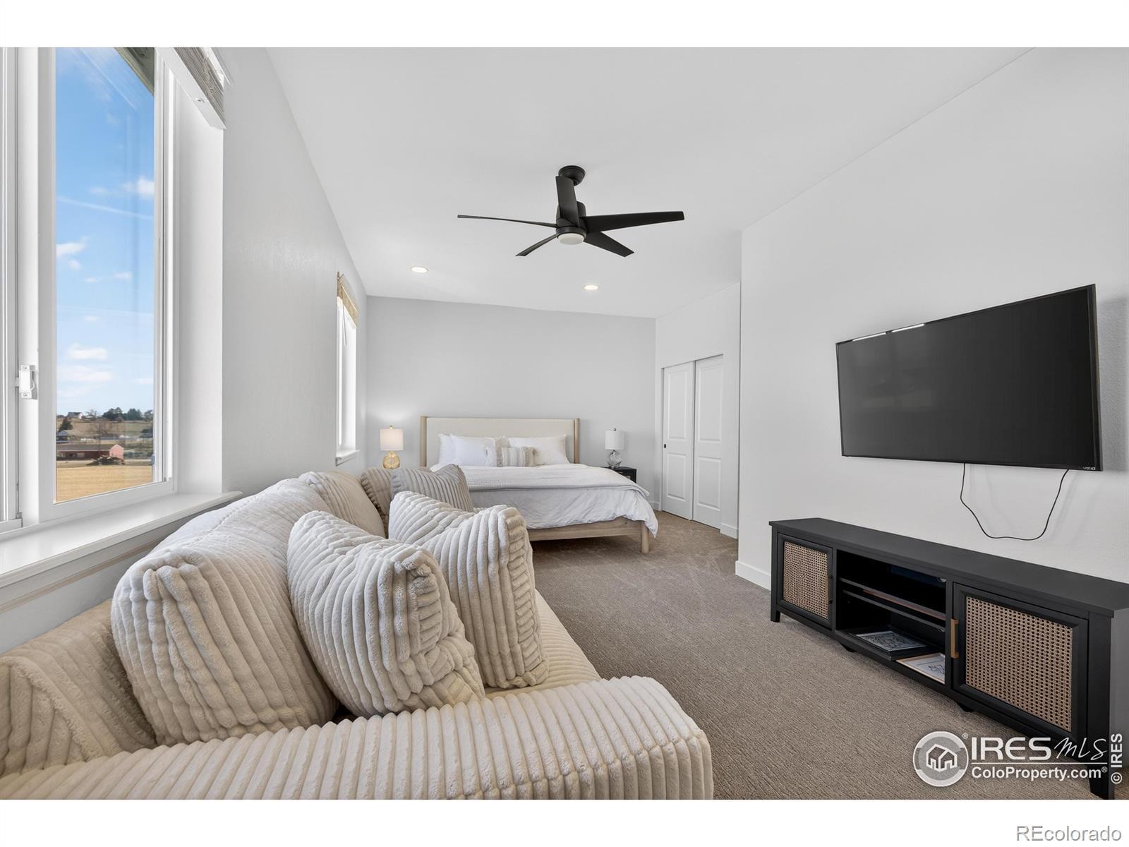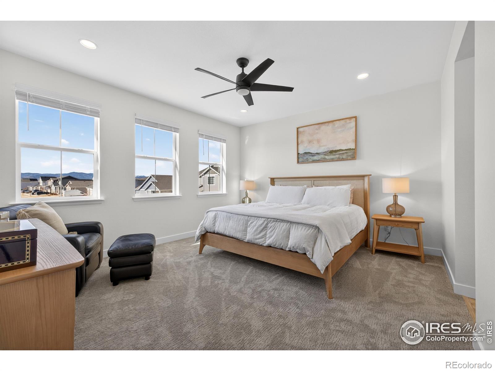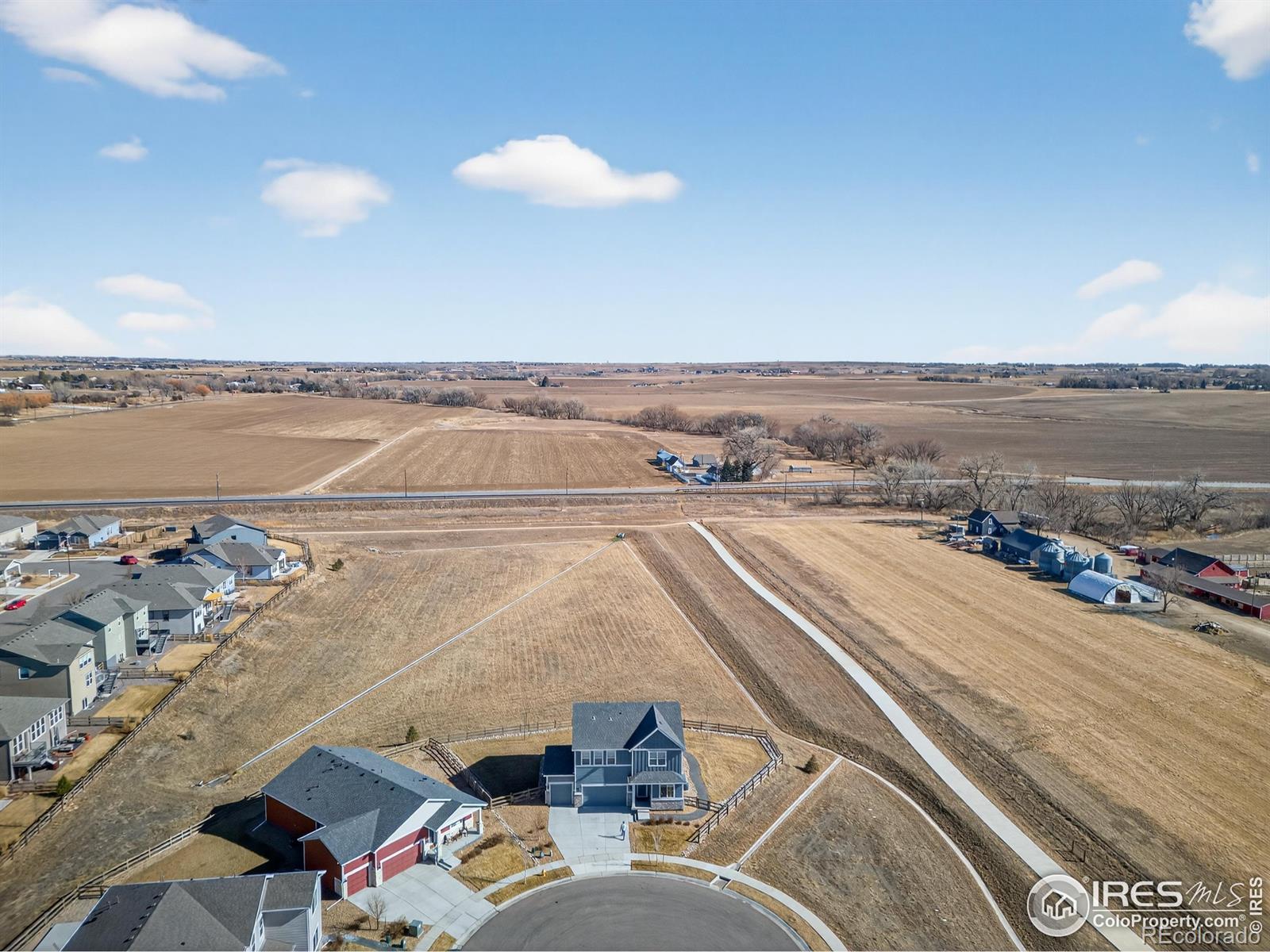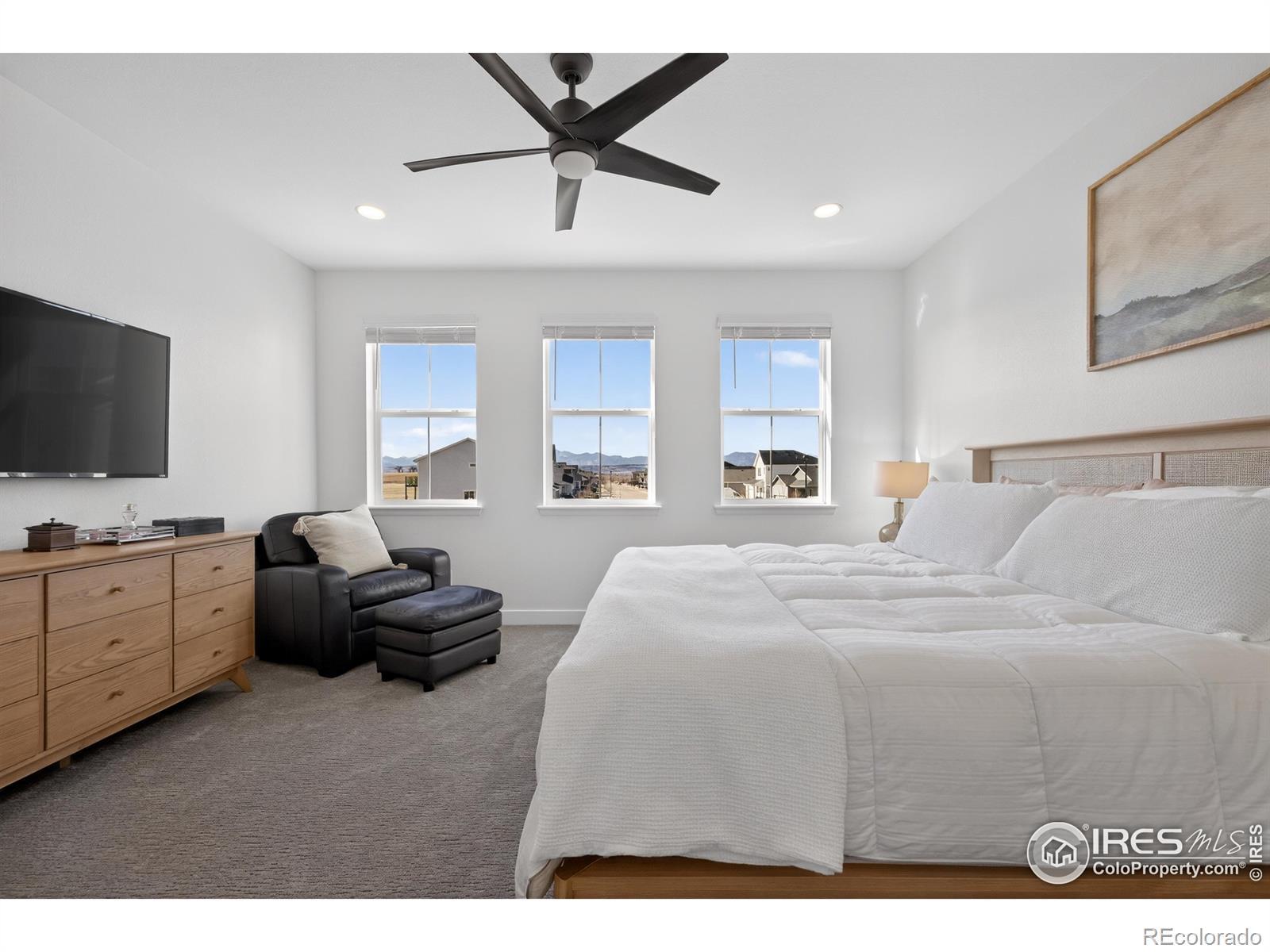 Nestled at the end of a serene cul-de-sac in sought-after Heritage Ridge, this better than new 2-story home offers the perfect blend of privacy, luxury, and convenience. Boasting arguably the best lot in the neighborhood, this is a private retreat with breathtaking views of open space and farmland, and only one adjacent neighbor. The home feels like a builder's model home! Set on an expansive 11,000 sqft lot, the 2,482 sqft home has been thoughtfully designed with modern style. The main floor features a bright, dedicated office with french doors-perfect for remote work, complete with inspiring south facing views. The living room, with its inviting fireplace and 9-ft ceilings, balances spaciousness with warmth, while the kitchen dazzles with white shaker cabinets, stainless steel appliances, gas range, pantry, and space for cooking and entertaining. Upstairs, the versatile loft offers a second living space, play area, or media room, while the conveniently located laundry room adds to everyday ease. The luxurious primary suite includes a large walk-in closet and en suite bath. Two additional bedrooms offer ample space for family or guests. The formal guest bedroom is enormous and feels like a small apartment. Step outside to the new composite deck to enjoy pleasant evenings unwinding. The oversized, gently sloped yard is fully fenced and complete with a dog run with artificial turf for low-maintenance. In Heritage Ridge residents enjoy access to the community pool, walking trails and sidewalks just outside your door, and close access to Berthoud's amenities, businesses, and schools. This home is a rare find, offering modern style, breathtaking colorado views, and a close connection to the best of Berthoud. Don't miss your chance to own this extraordinary property!