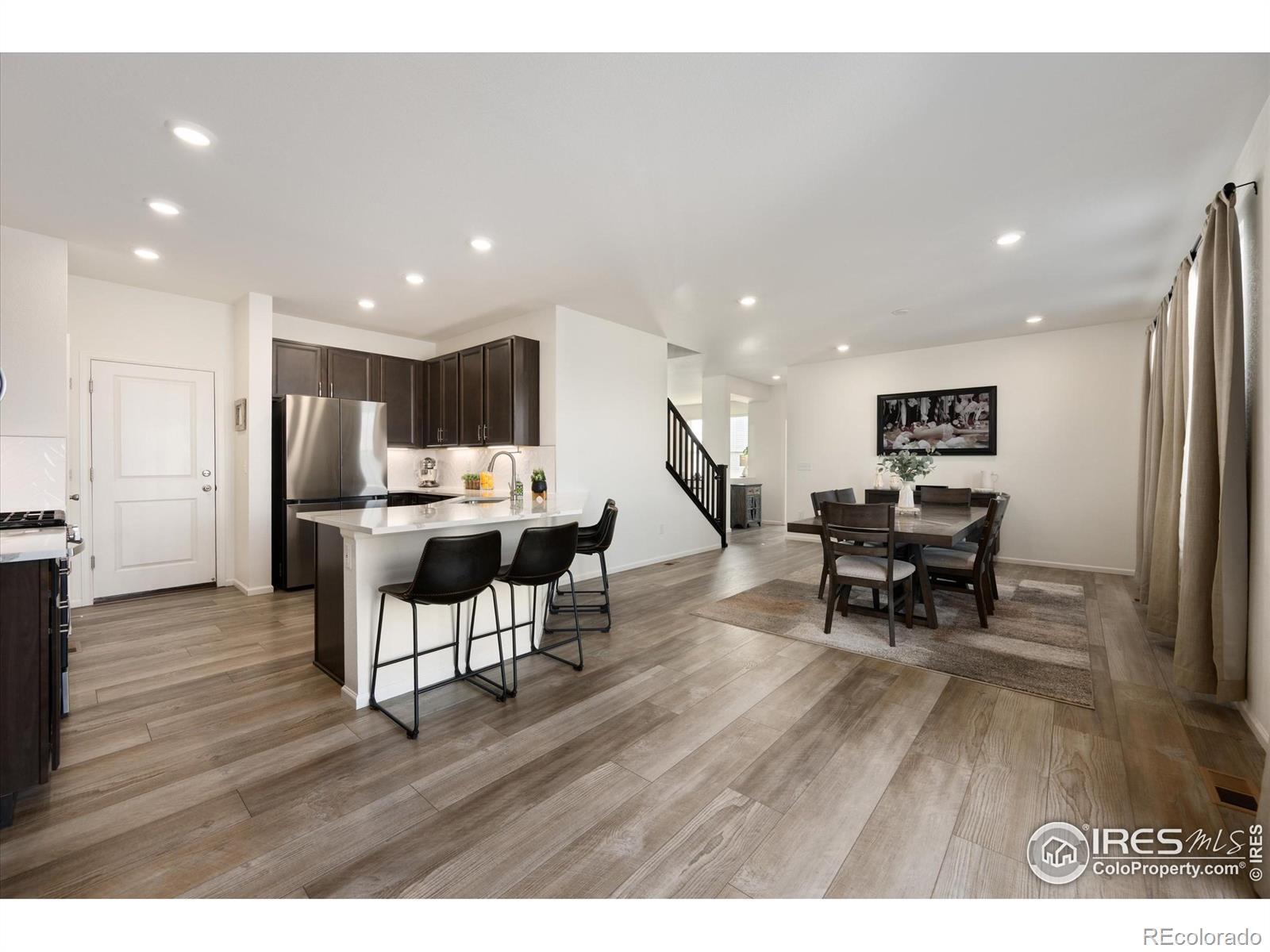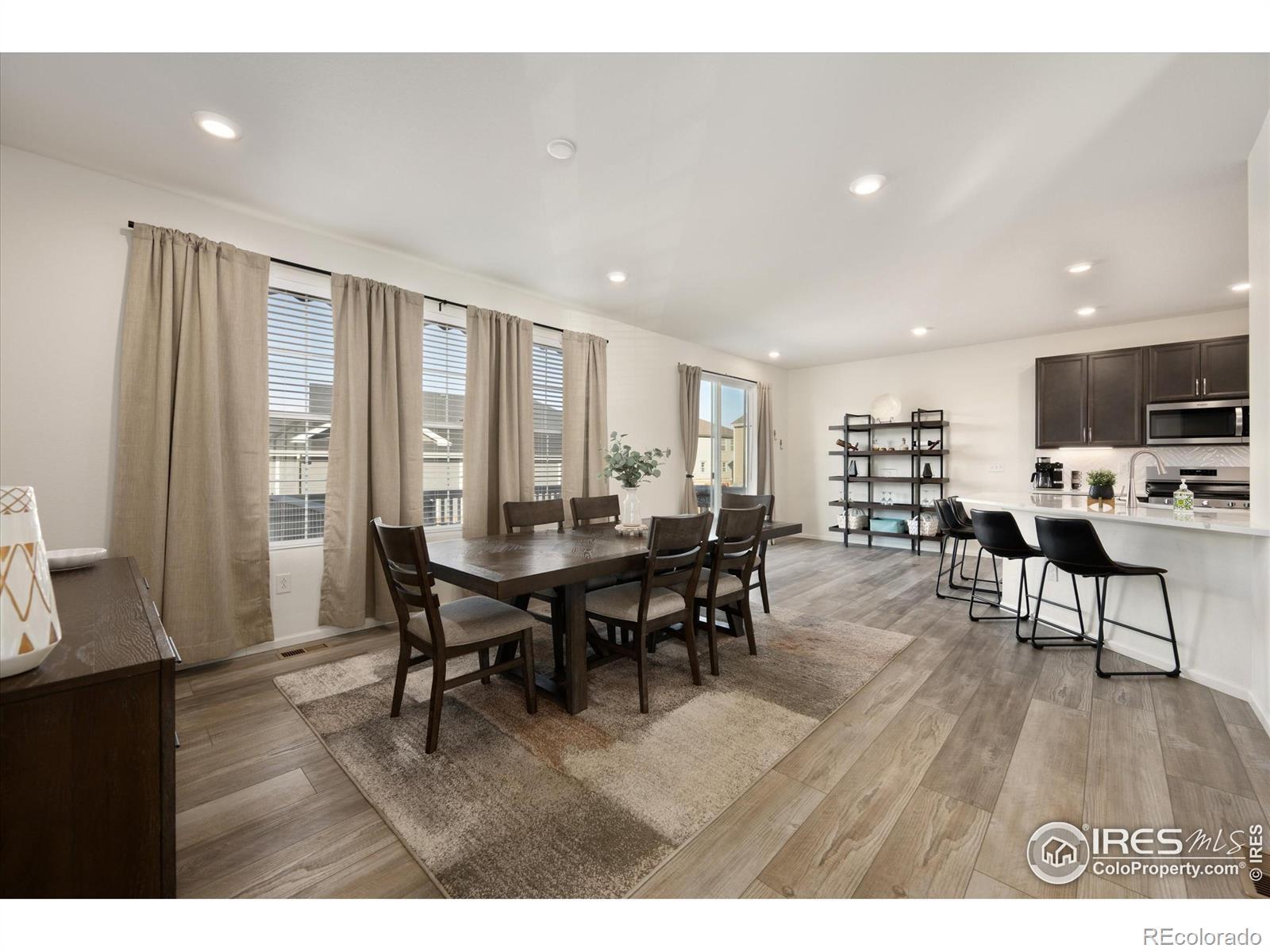 Welcome to Sweetgrass, where you get the perks of newer construction without the "live in a construction zone while finishing the house" phase. Landscaping is done. Deck is done. Window coverings are done. You can move in and immediately start enjoying life instead of making a to-do list.This corner lot home offers 4 bedrooms, a loft, study upstairs laundry, and an oversized garage with space for storage, bikes, tools, or the Costco haul. The layout is open, functional, and designed for real life. The main level features a spacious family room that flows into the dining area and kitchen, making it easy to host friends, or keep everyone connected during everyday routines.The kitchen includes espresso cabinetry, stainless steel appliances, generous counter space, and a layout that works whether you're cooking a full dinner or assembling takeout containers. Upstairs, all four bedrooms are conveniently located together along with a flexible loft that can be used as an office, playroom, workout space, reading nook, or second living area. Laundry is upstairs too, because carrying baskets up and down stairs is overrated.The primary suite captures beautiful Colorado views and includes a five-piece bath and walk-in closet, creating a comfortable retreat. Enjoy morning coffee on the front porch, evenings on the back deck, and wide-open skies from multiple vantage points throughout the home.Sweetgrass is known for its neighborhood pool, parks, playgrounds, and walking trails, offering an easy, active lifestyle. The location provides quick access to I-25 for commuting to Denver, Boulder, or Fort Collins, while still offering that neighborhood feel you're are searching for. Shopping, dining, and everyday conveniences just minutes away. As a fun local bonus, the adorable sourdough stand Bows & Loaves sits right across the street, making fresh bread steps away. This is the home you've been searching for.
