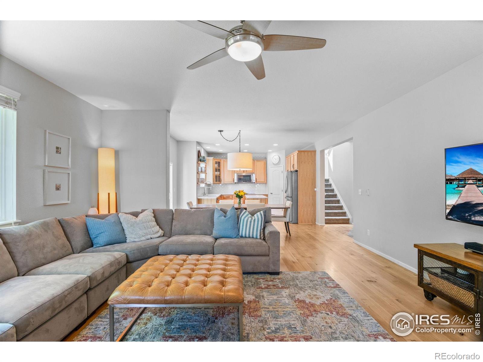 This lovingly maintained 4 bedroom, 4 bathroom Canyon Creek home features an updated kitchen with double wall ovens and beautiful moroccan style backsplash, white oak hardwood floors that span throughout the entire main level, a dedicated home office, EV charger in the two-car garage, durable concrete tile roof, low HOA, and no metro tax. Upstairs you'll find the primary suite with custom walk-in closet and 5-piece bath, 2 additional bedrooms which share a full bathroom, and the laundry room conveniently located adjacent to the bedrooms. The finished basement offers a rec area for playing or watching TV, a 4th bedroom and additional full bathroom, along with a sweet creative space tucked away under the stairs. Step outside to the ultra private backyard retreat complete with a large Trex deck that's perfect for entertaining, relaxing or enjoying quiet evenings. The home is situated less than a block from the neighborhood park and playground, and offers easy access to Thomas Reservoir, along with a number of nearby walking and biking trails connecting the entire Town of Erie. Pride of ownership is evident in this warm and inviting move-in ready home.