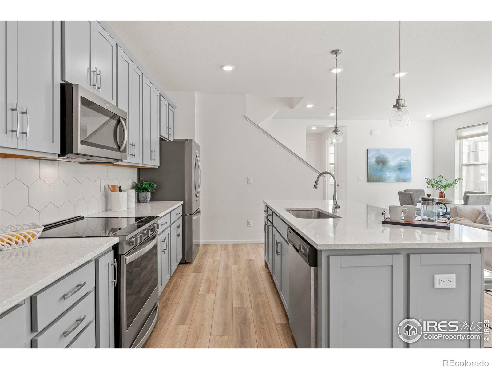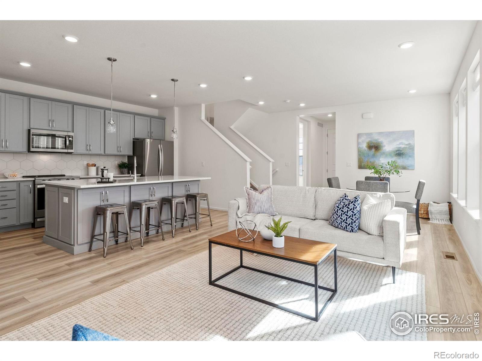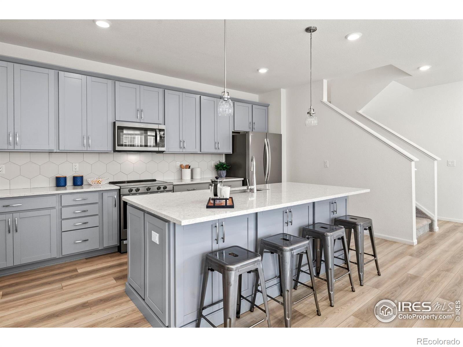 Newer and beautifully designed, this spacious townhome with a fully finished basement offers an ideal combination of style, functionality, and a prime location near top-rated K-8 Meadowlark school.Step inside to an open-concept layout filled with natural light, sleek luxury vinyl floors, and modern finishes that create a warm yet contemporary vibe. The kitchen is a chef's delight, showcasing quartz countertops, stainless steel appliances, a generous island, and plenty of cabinetry to meet all your culinary needs. The adjoining living area is both cozy and expansive, with large windows that frame picturesque views.Upstairs, unwind in the serene primary suite, complete with a spa-like en-suite bathroom and a walk-in closet. Two additional bedrooms and a versatile loft provide ample space for guests, a home office, or your favorite hobbies.Step outside, and you'll find the community park with a playground just a stone's throw away. A covered porch invites you to relax and enjoy the outdoors in any season. Don't miss the opportunity to make this your new home-schedule a showing today and start living the lifestyle you've been dreaming of!