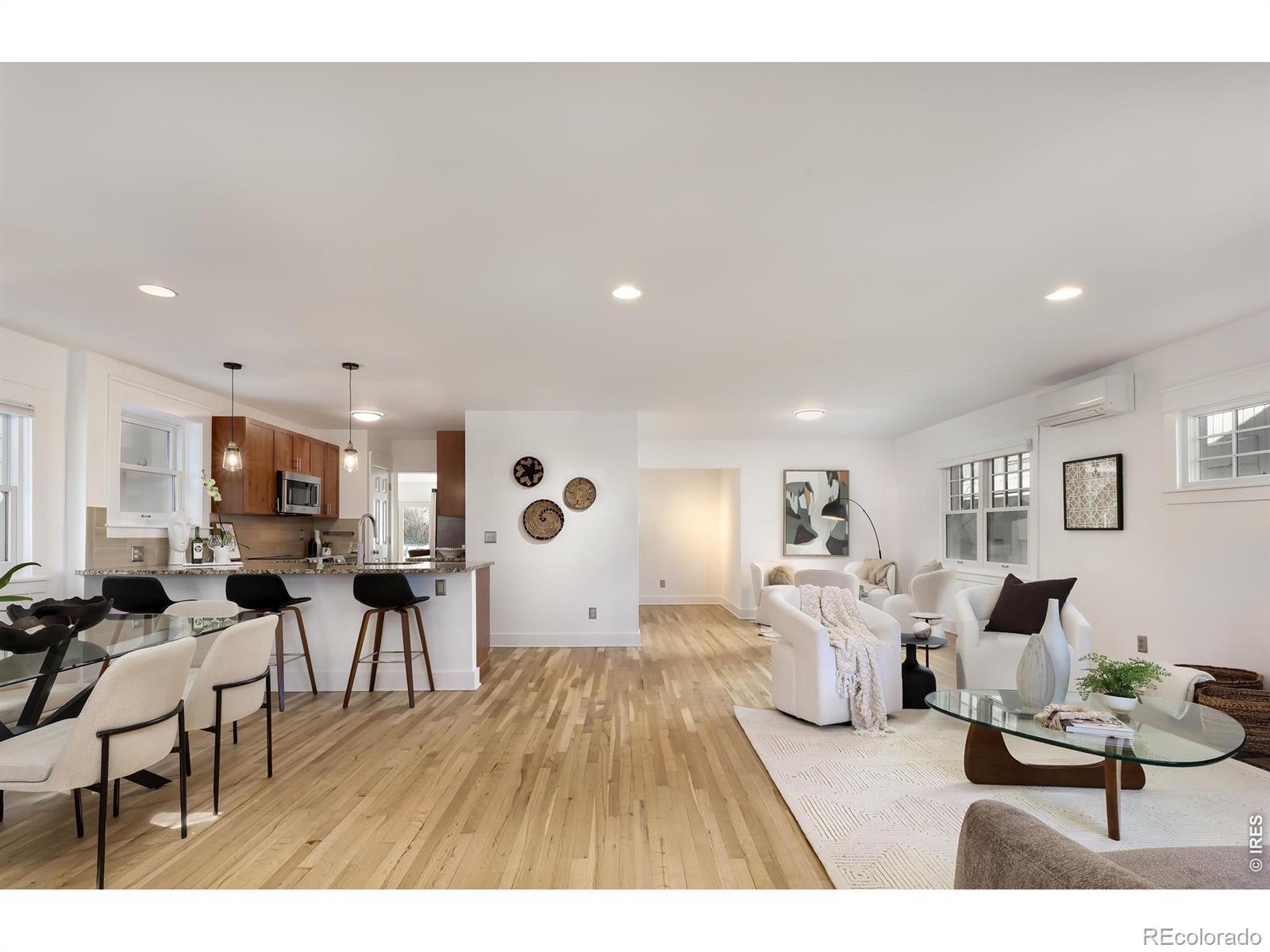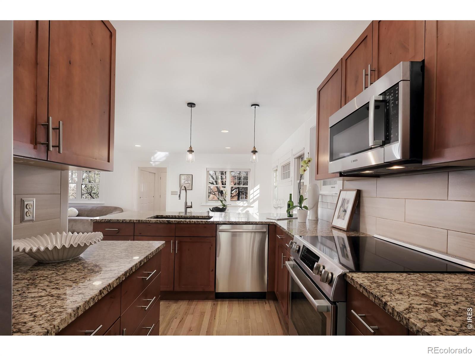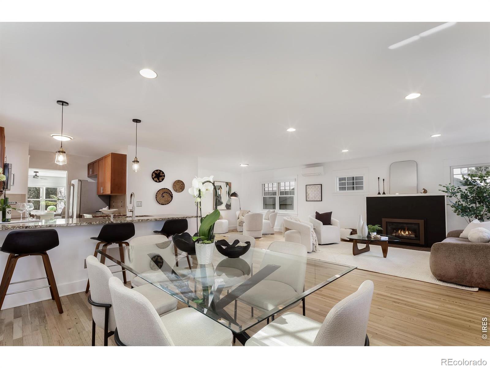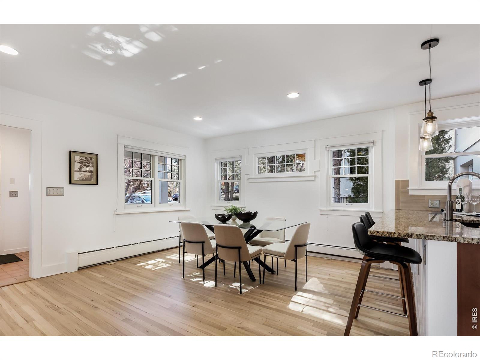This thoughtfully updated Chautauqua 3BD/2.5BA home shines with pristine sun-kissed interiors, beautifully landscaped outdoor space and an unbeatable location just steps from Chautauqua Park and Trails and 2027 Sundance Film Festival events. A tiled foyer welcomes you inside this 2,490SF charmer filled with amazing natural light, refinished hardwood floors, fresh paint and new ceiling fans. Relax alongside a fireplace and oversized windows in the open floor plan living room, or plan your next dinner party in the spacious dining room. Chefs will love the open kitchen, where custom cabinetry, a pantry, breakfast bar, new pendants and granite counters surround stainless steel Bosch and Electrolux appliances. Ahead, the indoor-outdoor family room flows seamlessly to a large patio, perfect for al fresco dining and lounging. Throughout the special property, the lovingly maintained landscaping includes fully irrigated lawns, mature trees and plantings surrounded by handsome stonework and redwood fencing. Back inside, two large bedrooms share a recently remodeled bathroom. A convenient powder room and a large laundry room with a newer LG washer-dryer complete the main level. Upstairs, the expansive owner's suite includes a large balcony, an oversized walk-in closet and a freshly updated, windowed en suite bathroom. The home's extensive upgrades include newer Marvin and Andersen windows, a new roof and insulation, solar panels, Tesla Powerwall, upgraded electrical panel, EV charger, a new radon system, an energy-efficient boiler for five-zone hydronic heat and hot water, and a four-zone Mitsubishi AC system. A long two-car driveway with a 30-amp RV electrical outlet, manicured landscaping and a charming patio add wonderful curb appeal to this turnkey sanctuary. This sought-after neighborhood is surrounded by thousands of acres of open space, Chautauqua's newly updated auditorium, world-class trails, Basemar Shopping Center, the CU campus and Downtown/Pearl Street amenities.