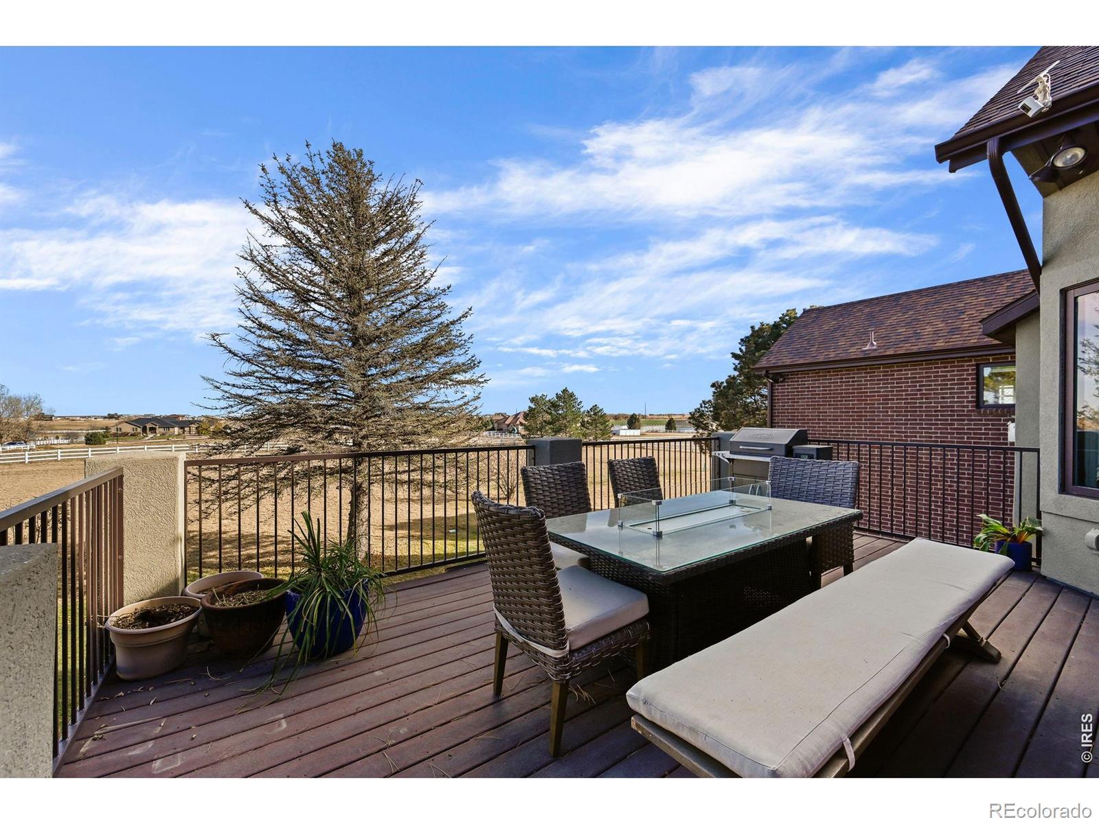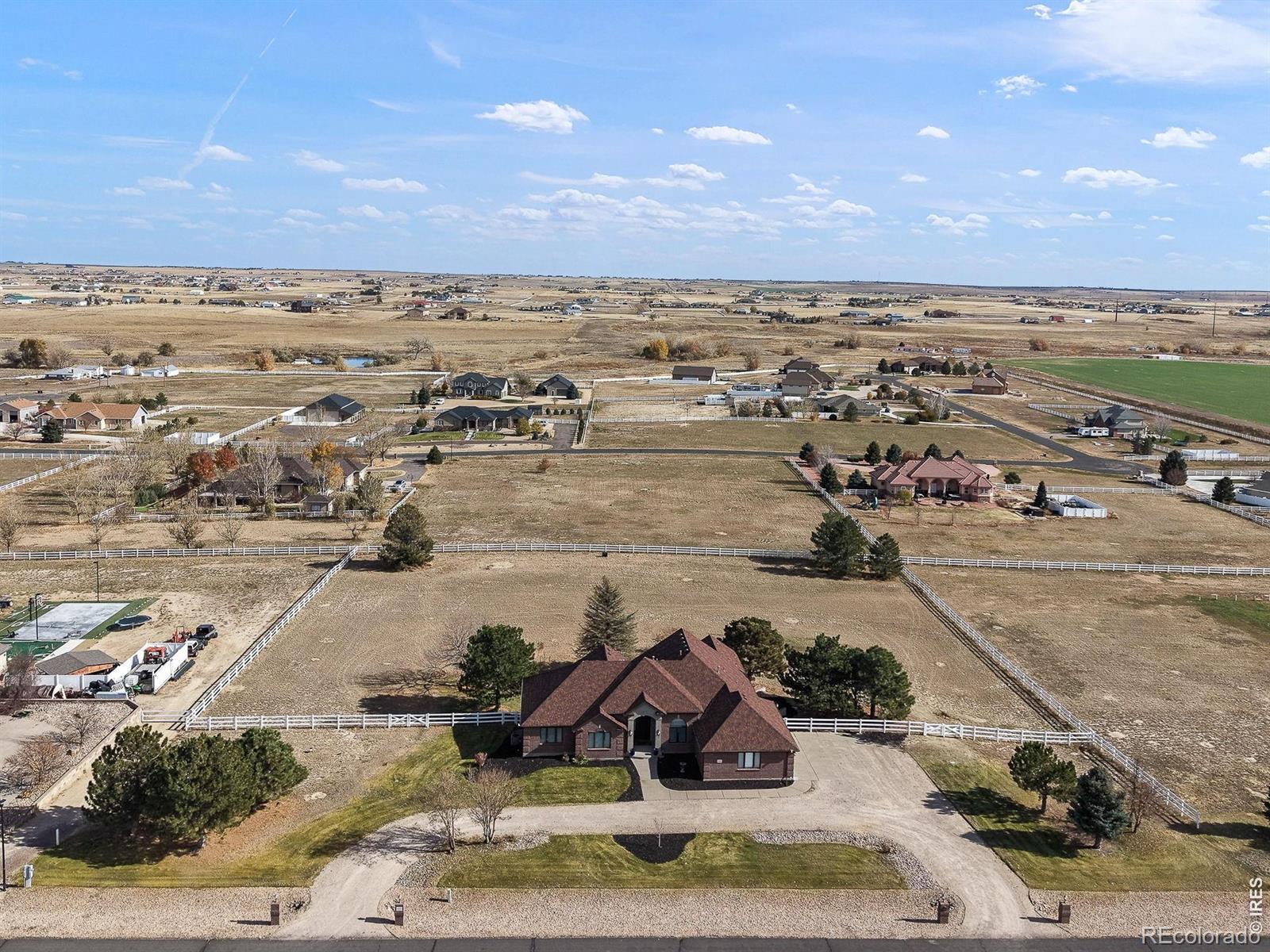 OVER 200K IN UPGRADES! Welcome home to contemporary country living in this reimagined and renovated sprawling ranch, situated on 2.3 acres in Brighton's sought-after, Box Elder Estates. Modern luxury meets functional living with all-new scratch-resistant hardwood floors, new interior paint, vaulted ceilings, and refined finishes throughout. The formal living and dining spaces are ideal for entertaining with a custom-built-in wet bar which seamlessly connects to the fully renovated chef's kitchen. Enjoy preparing a meal in the FULLY RENOVATED kitchen featuring dual islands and sinks & custom cabinetry. BRAND NEW 42" GE Built-in Refrigerator and 48" Thor gas range, Bosch Dishwasher. Steps off the kitchen is the inviting den, complete with an oversized picture window and cozy gas fireplace. Retreat to your main-floor primary suite. This sanctuary features a fully renovated 5-piece ensuite bath with a show-stopping 10-head walk-in spa shower, free-standing tub, and radiant heat flooring. The opposite wing features two bedrooms with ensuite bathrooms, and the third is an ideal home office or playroom. The expansive composite deck is ready for al fresco dining or summer entertaining with endless easterly views. Additional features of this turnkey residence include integrated smart home technology, custom remote-controlled window treatments in the primary bedroom, and gorgeous new light fixtures throughout. Plus, Class 4 Impact Resistant Roof, 3-car HEATED GARAGE, main floor laundry with custom cabinetry, and updated main floor powder bath. Options are endless with a full unfinished walk-out basement with R/I plumbing ready for you to finish exactly how you like! Enjoy the serene tranquility of country living with the ability to have horses and the convenience of modern amenities only moments away. Box Elder Estates is ideally located near major roadways, DIA, and multiple shopping and dining options at Reunion Marketplace and Brighton Pavilions. Book your showing today!