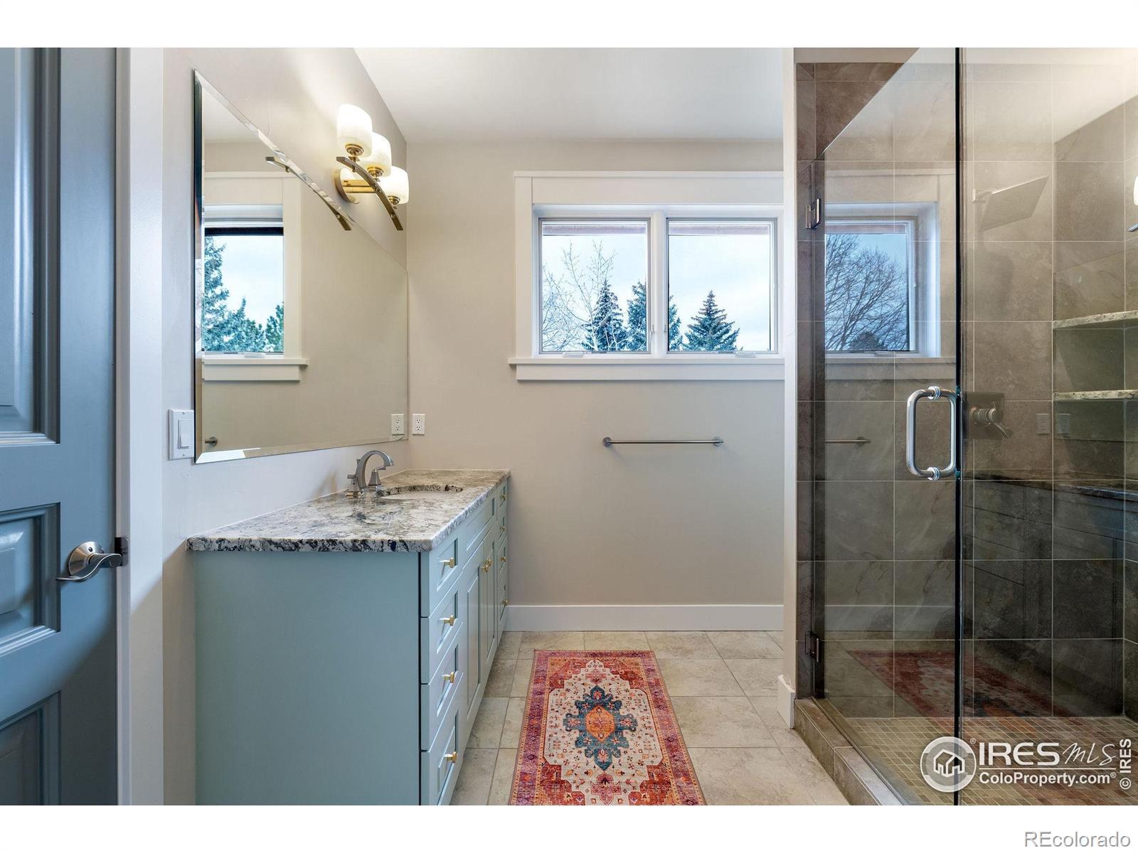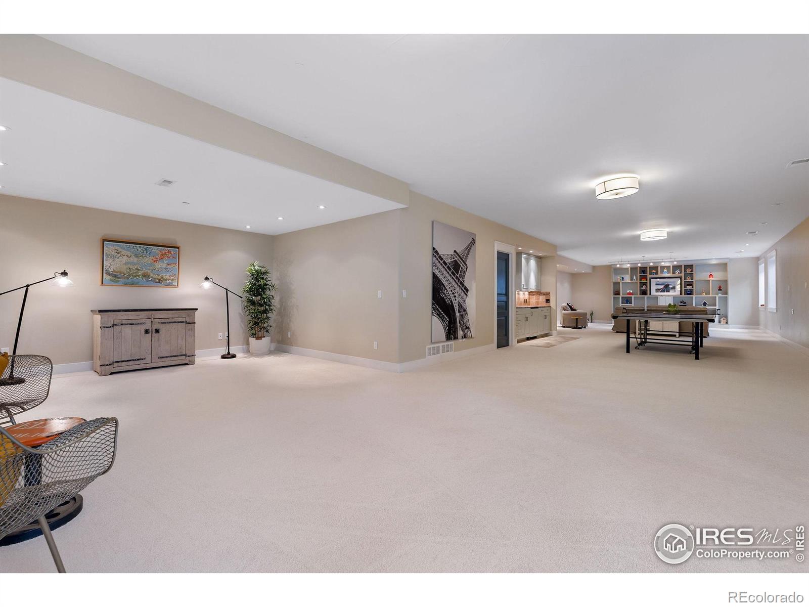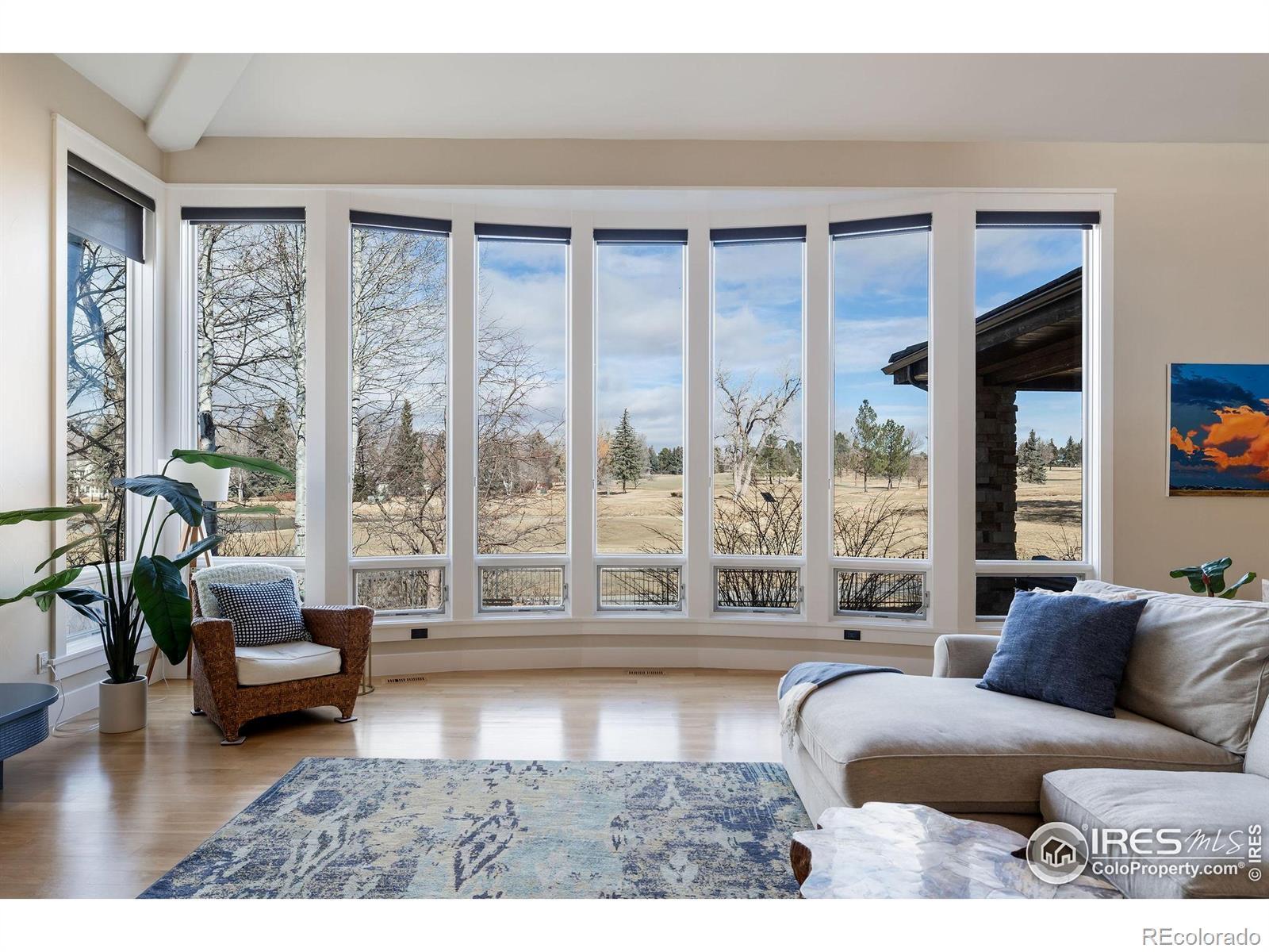 A refined, casually sophisticated residence positioned on the 17th hole of Boulder Country Club, this distinguished home blends timeless craftsmanship with modern comfort. Enter the dramatic great room and be greeted by soaring ceilings and floor-to-ceiling windows that frame expansive golf-course and mountain vistas while bathing the interior in natural light. The open layout connects a chef's kitchen, living and dining areas - anchored by a welcoming fireplace - creating an ideal flow for entertaining and everyday living.Outdoor living is effortless from the covered stone porch and meticulously landscaped grounds, offering a serene setting for gatherings or quiet relaxation. The main level also features a handsome private study with built-ins, rich wood wainscoting, and a coffered ceiling - a refined workspace. Upstairs, the sunlit primary suite includes a private balcony with mountain views, a spa-like bath with steam shower and jetted tub, and two generous walk-in closets. Three additional bedrooms, each with its own en-suite bath, ensure privacy and comfort for family and guests.The lower level adds expansive recreation space plus two more guest suites with ensuite baths. Practical amenities include three garage bays and a dedicated golf cart garage with direct access to the cart path to the 17th green. Elegant, spacious, and designed for effortless Colorado living, this home delivers a premium Boulder Country Club lifestyle.