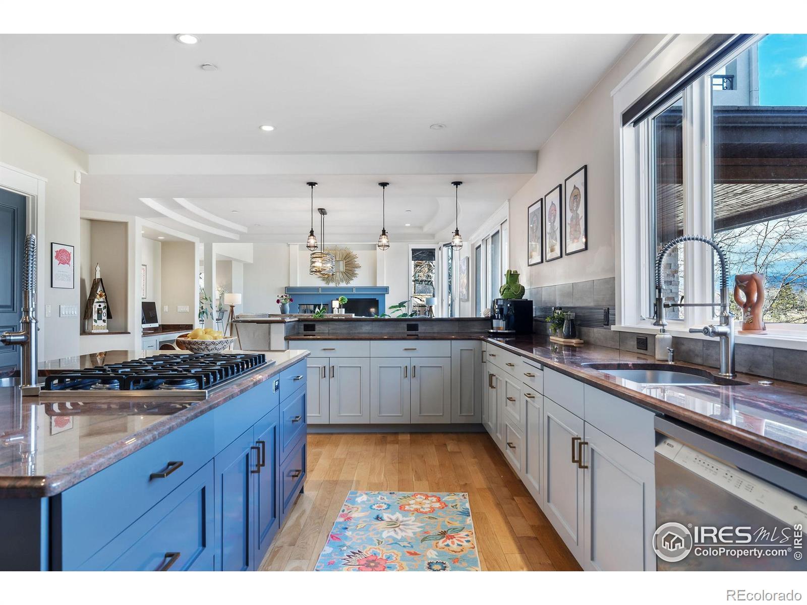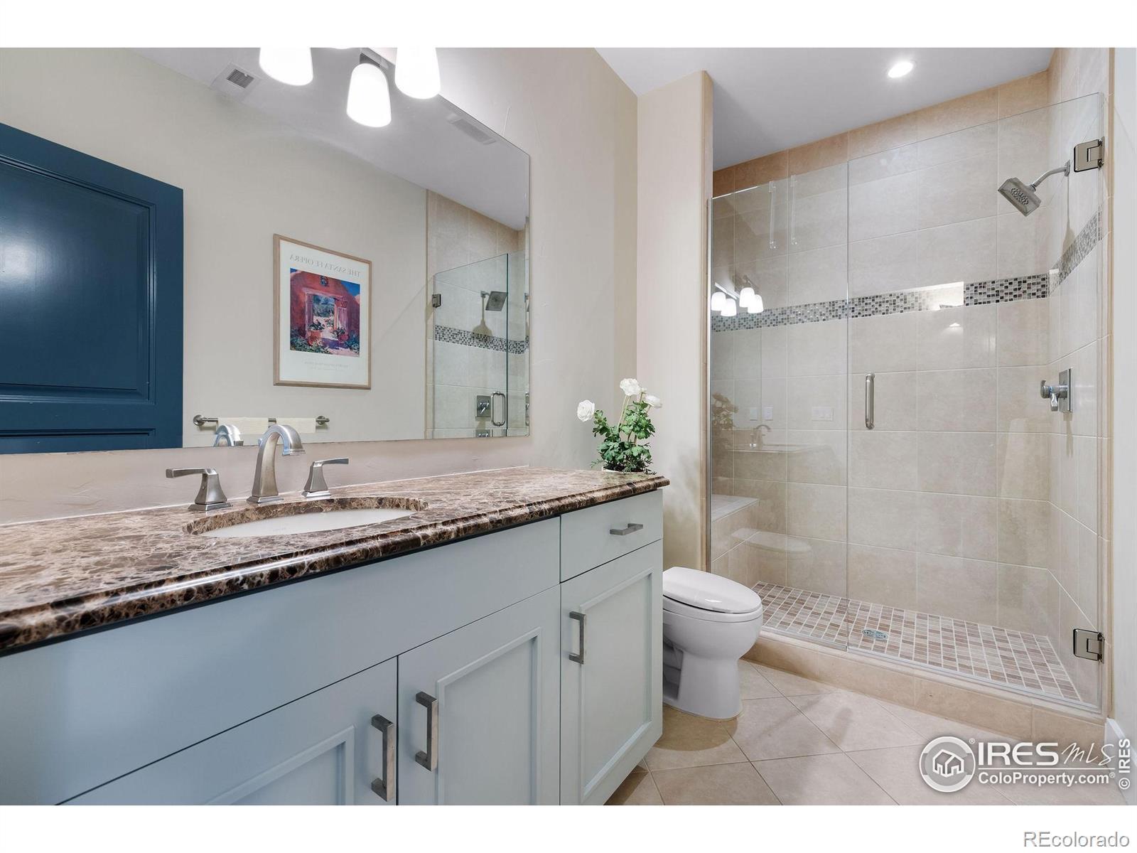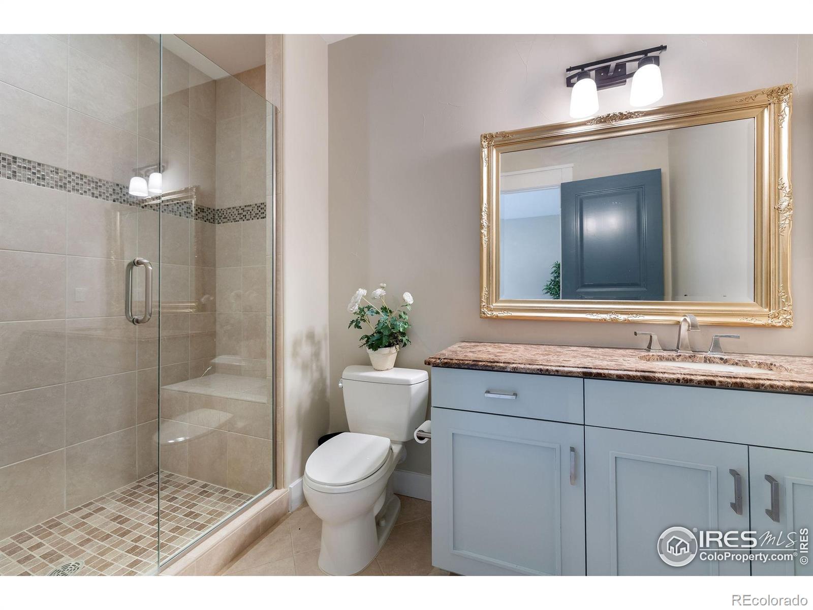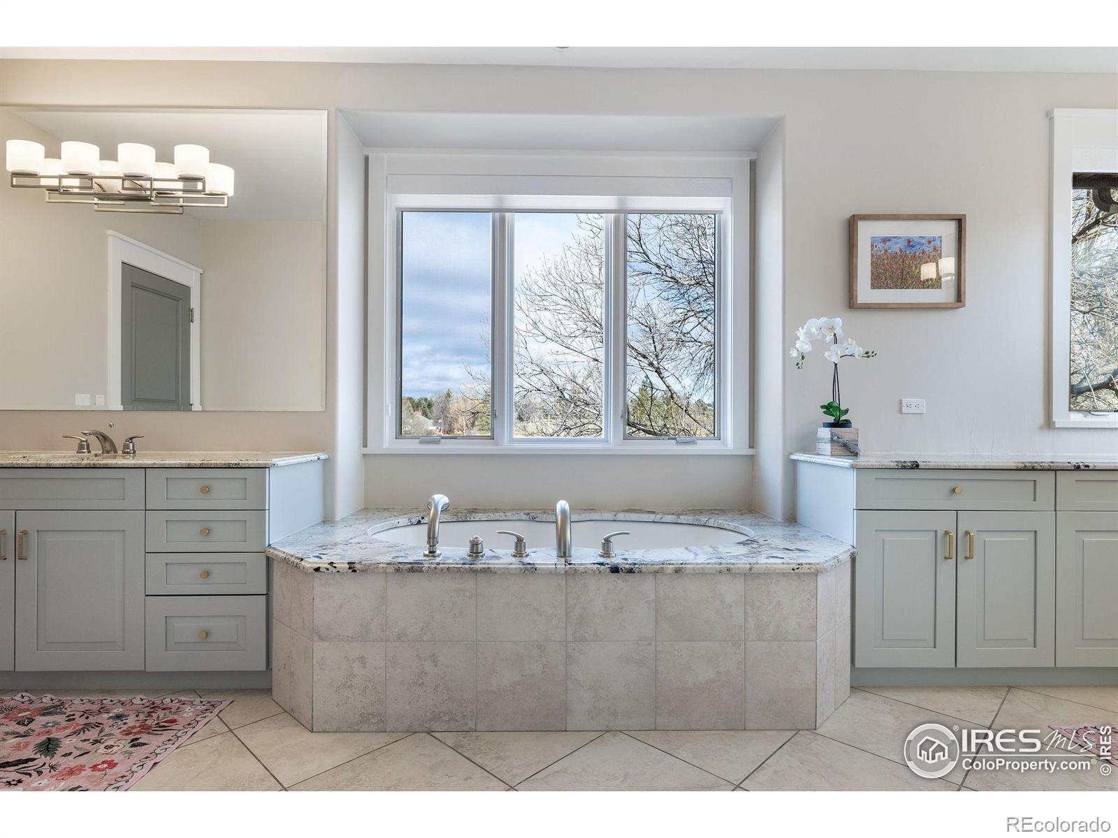 A refined, casually sophisticated residence positioned on the 17th hole of Boulder Country Club, this distinguished home blends timeless craftsmanship with modern comfort. Enter the dramatic great room and be greeted by soaring ceilings and floor-to-ceiling windows that frame expansive golf-course and mountain vistas while bathing the interior in natural light. The open layout connects a chef's kitchen, living and dining areas - anchored by a welcoming fireplace - creating an ideal flow for entertaining and everyday living.Outdoor living is effortless from the covered stone porch and meticulously landscaped grounds, offering a serene setting for gatherings or quiet relaxation. The main level also features a handsome private study with built-ins, rich wood wainscoting, and a coffered ceiling - a refined workspace. Upstairs, the sunlit primary suite includes a private balcony with mountain views, a spa-like bath with steam shower and jetted tub, and two generous walk-in closets. Three additional bedrooms, each with its own en-suite bath, ensure privacy and comfort for family and guests.The lower level adds expansive recreation space plus two more guest suites with ensuite baths. Practical amenities include three garage bays and a dedicated golf cart garage with direct access to the cart path to the 17th green. Elegant, spacious, and designed for effortless Colorado living, this home delivers a premium Boulder Country Club lifestyle.