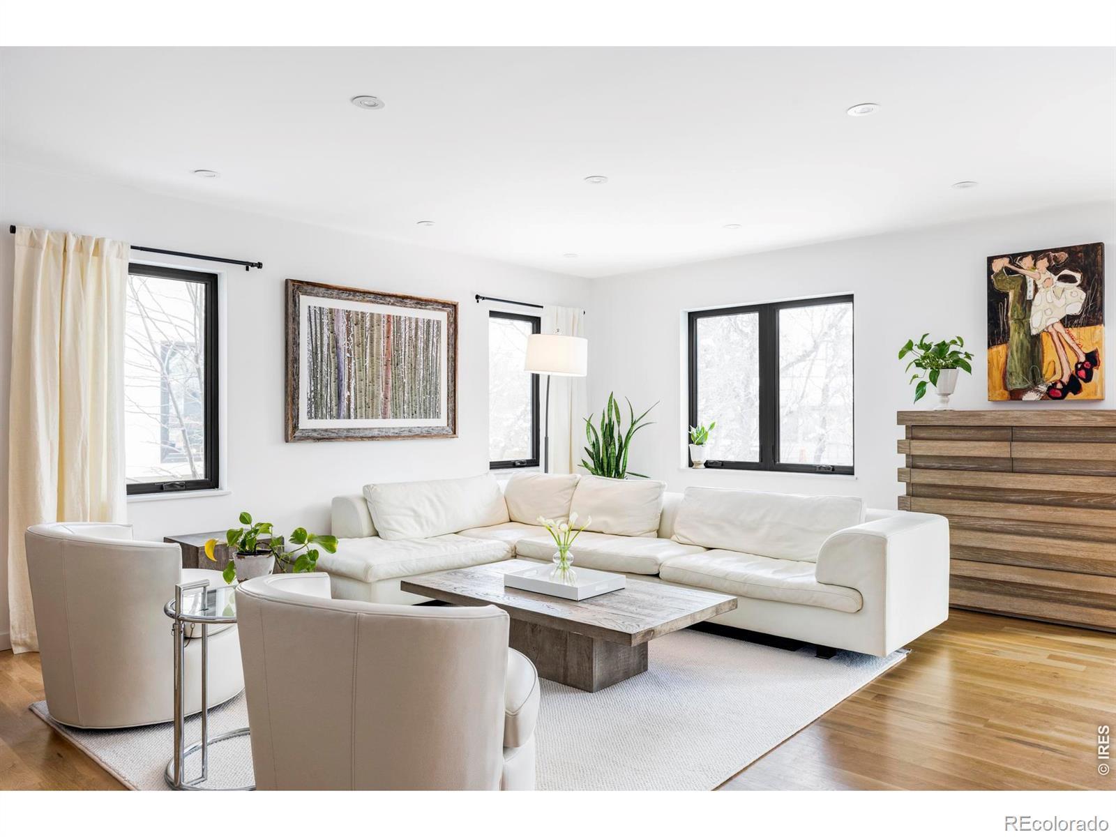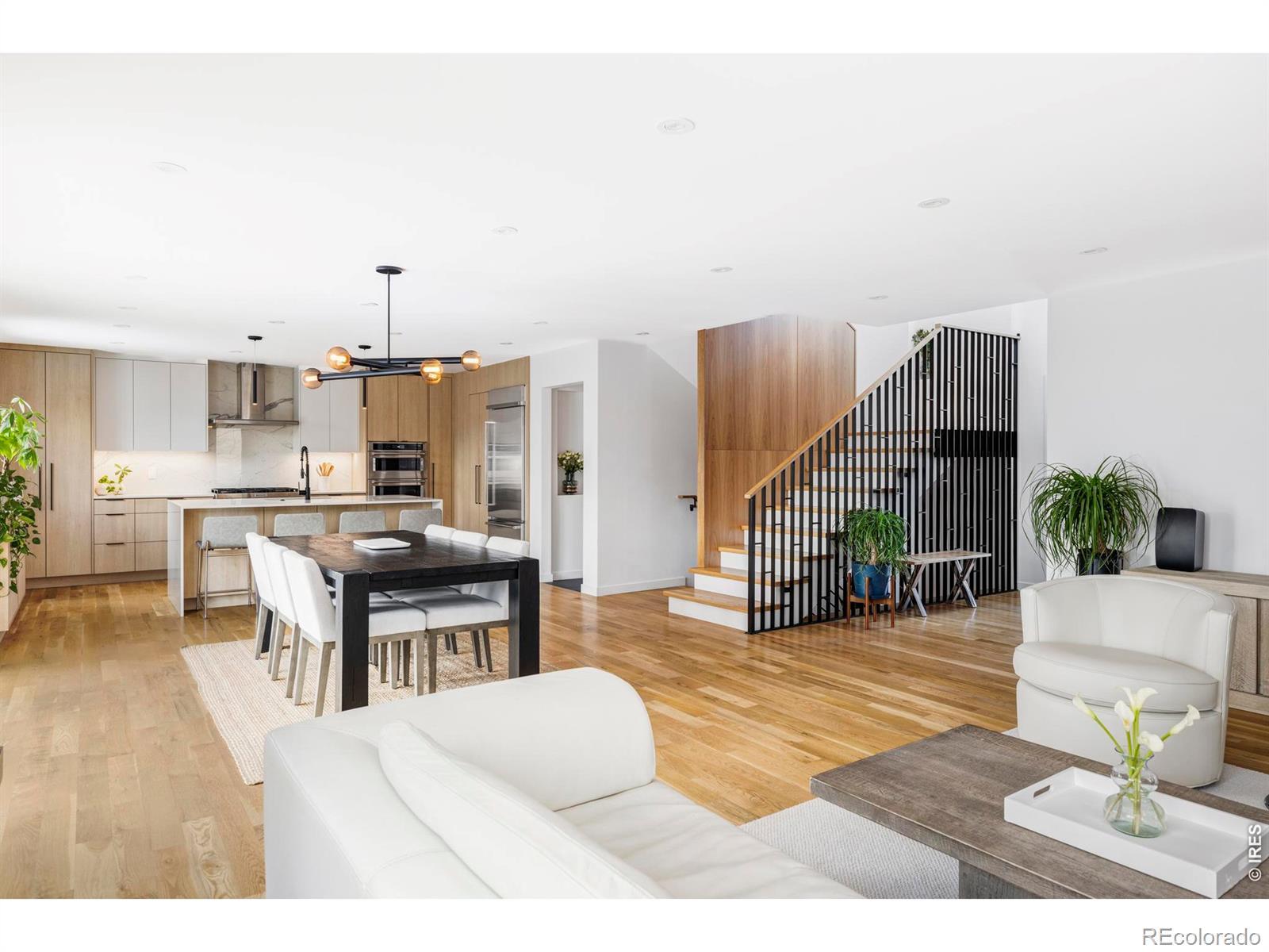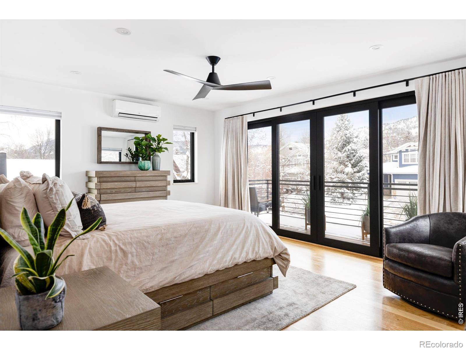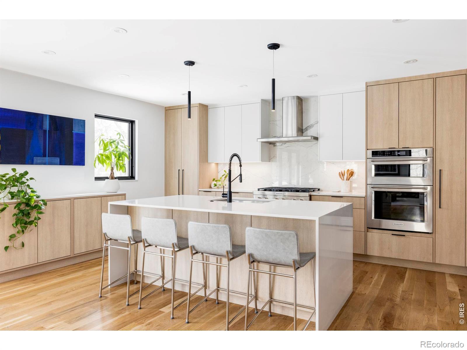 Sophisticated modern design meets effortless luxury living in this stunning home in desirable Melody Heights. This residence showcases premium finishes and exceptional indoor-outdoor flow that epitomizes Boulder living. Light-filled interiors welcome you into the main level, where wide-plank hardwood floors flow through an open-concept great room. The living and dining areas capture abundant natural light through large windows, while a sleek fireplace adds warmth and ambiance. The chef's kitchen features custom flat-panel cabinetry in a blend of white and natural wood tones, a marble-inspired backsplash, and a waterfall island with additional cabinetry. Dramatic sliding glass doors extend the living space onto a generous deck, creating an ideal setting for indoor-outdoor entertaining. The upper level is a private retreat crowned by a primary suite with sweeping Mt. Sanitas views and private deck access. The pristine five-piece ensuite bath includes a walk-in shower with designer tile, freestanding soaking tub, floating dual sinks, and windows framing Flatirons views. Two additional bedrooms and a well-appointed bathroom complete this floor. The lower level is a full height daylight level with substantial natural light and functional living spaces including a spacious recreation room, two additional bedrooms, and a full bathroom. Set on a landscaped lot with a manicured backyard and fruit trees, this home enjoys a prime location in Melody Heights. Residents are close to Lucky's Market and just minutes from North Boulder dining and Ideal Broadway Shops. Outdoor recreation is abundant with Melody Park across the street and the trails of Wonderland Lake and Mt. Sanitas nearby.