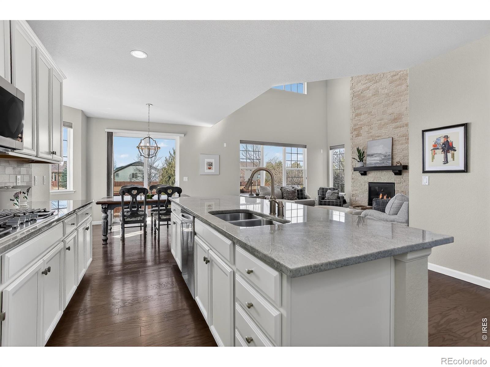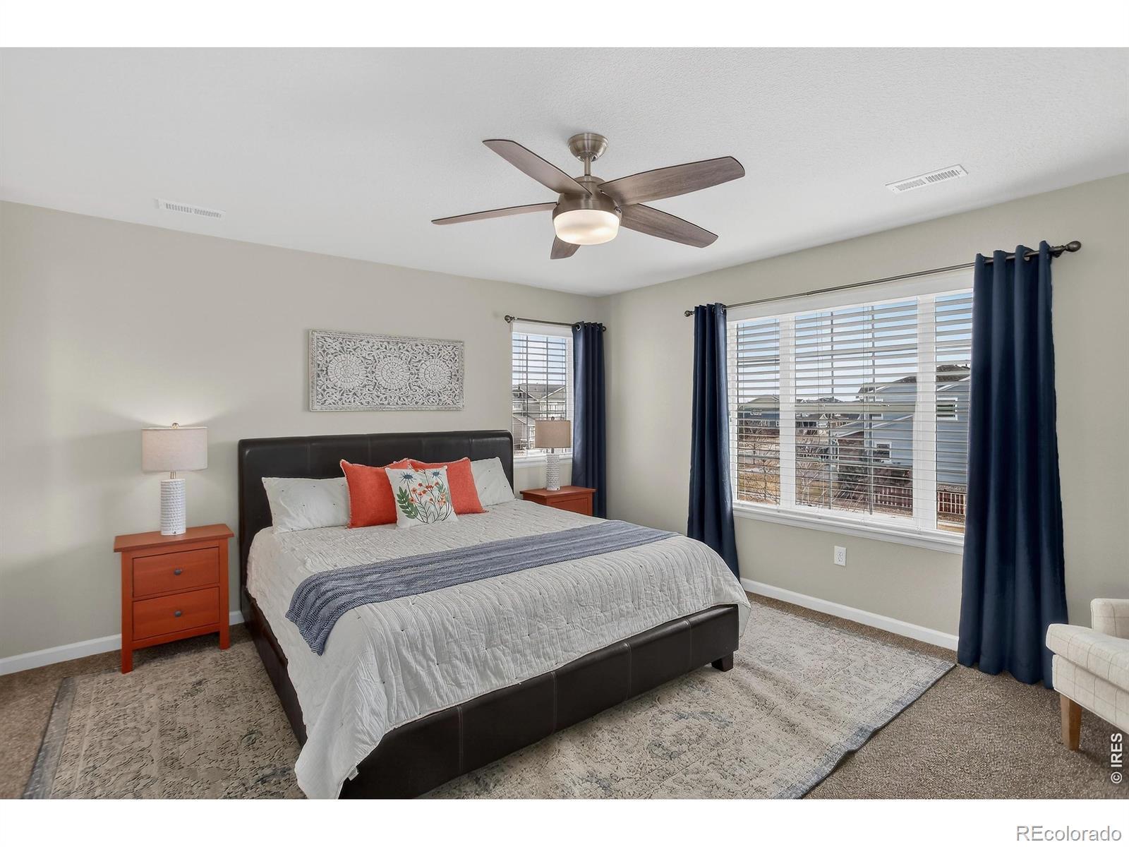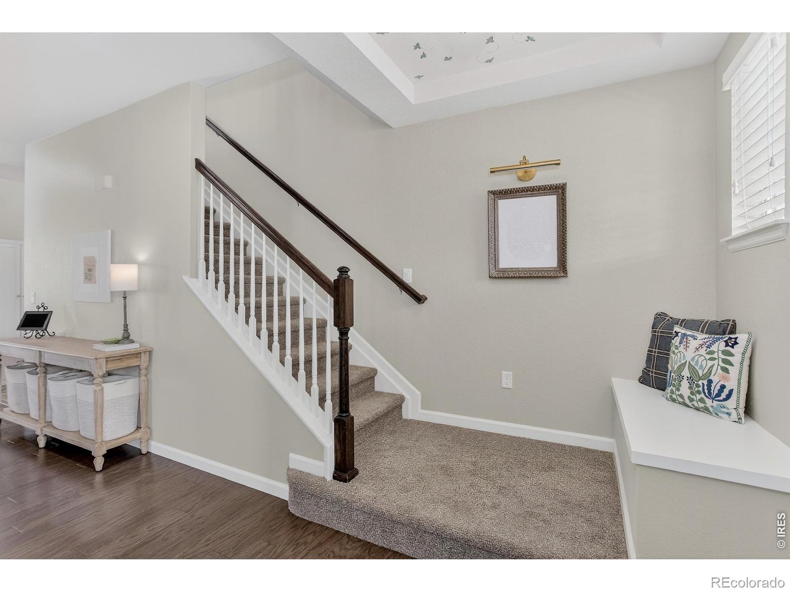Built by Meritage Homes in 2015 with a permitted basement finished in 2020, this 4BD 3.5BA two-story residence in Timnath Ranch features MOUNTAIN VIEWS, a gourmet kitchen w/pantry, gas cooktop, and ss appliances, main floor office/den with custom built-ins, living room fireplace with stone accents, upper loft and laundry, new interior paint, multiple dimmer switches, 3-car tandem garage, and "wet-bar ready" electrical and plumbing in the basement. Two thermostats for both main floor/basement and upstairs comfort (2 A/C units and furnaces). Fully landscaped with sprinkler system, backyard patio, and fire pit. Close to the community clubhouse, pool, and park. Located within the boundaries of the Poudre School District including Bethke Elementary and Timnath Middle-High School. Don't miss your opportunity to live in one of the most desirable communities in Northern Colorado - schedule your showing today!