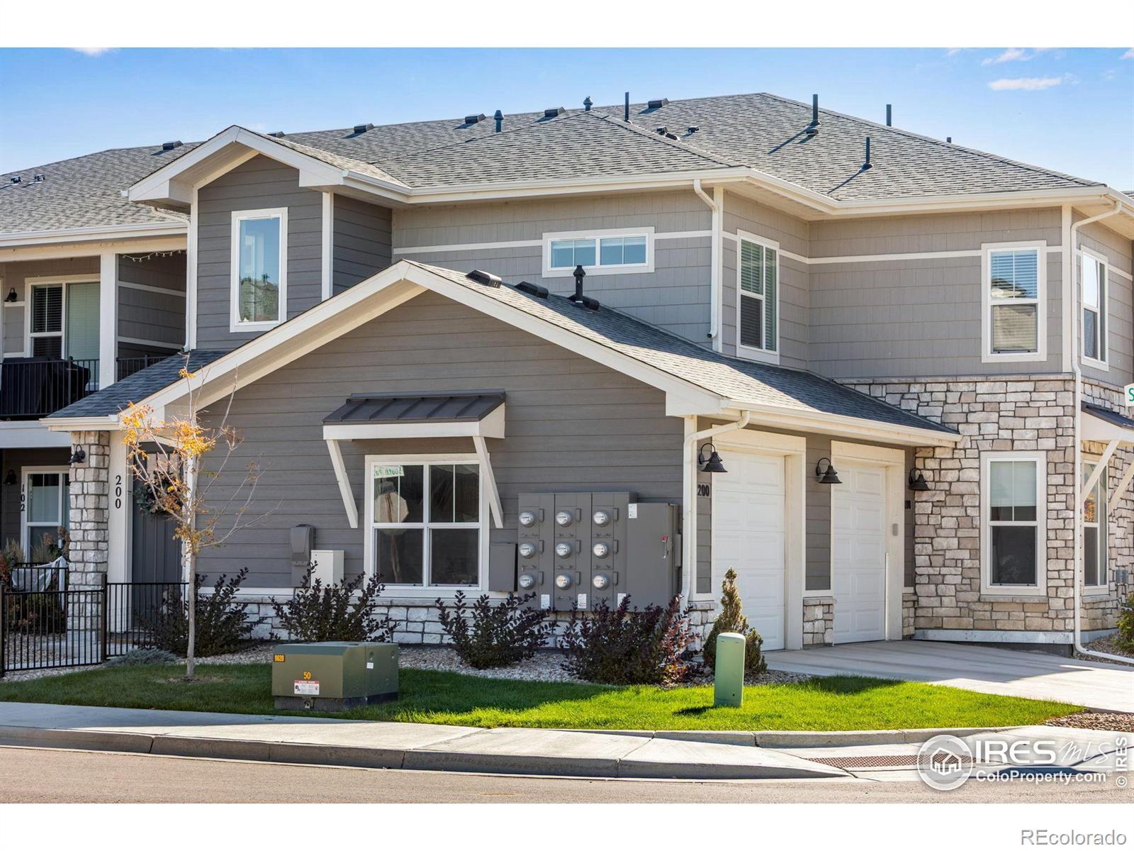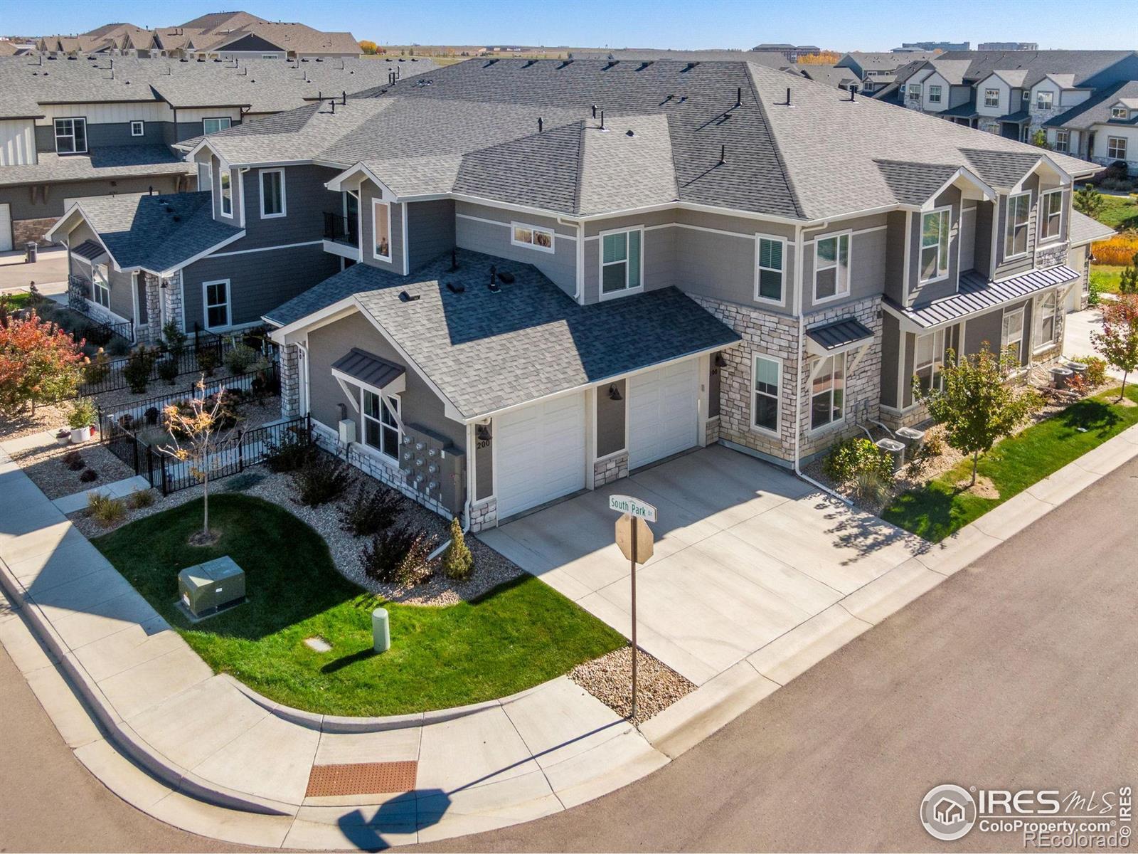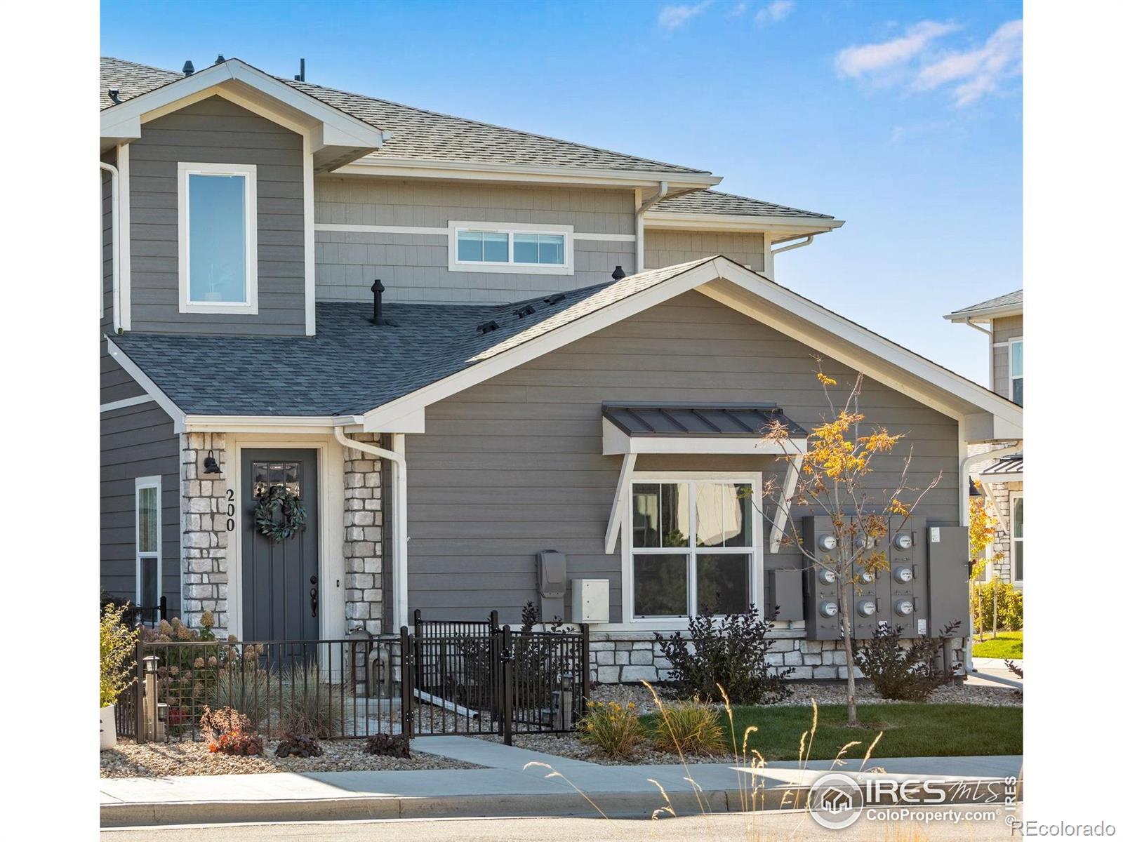 Move-in Ready, An exceptionally sunny corner end-residence, townhome-style condo in the coveted Lakes at Centerra, ideally positioned moments from I-25 and Highway 34 with effortless access to Centerra's premier amenities! Adorable Raised Ranch lightly lived-in & inviting open-concept layout. 1,653 finished SQFT with 1,535 SQFT on one level living, thoughtfully designed with 3 Bedrooms + versatile Office Nook area, 2 Bathrooms balancing comfort, function and style. The west-facing oversized single-car garage is fully insulated and sheet-rocked with an insulated door panel, perfect for Colorado seasons-while acres of HOA-protected open space to the south create a peaceful backdrop with immediate trail access. Inside - abundant storage off foyer and adjacent to the stairwell. The generous Primary suite serves as a private retreat with a walk-in closet & separate dual vanities in a spa-inspired primary bath with cool down seat in the shower. An expansive living room, covered front porch, and comfortable balcony enhance indoor-outdoor livability. Featuring a high efficiency furnace, tankless water heater & gorgeous designer finishes: quartz counters, full kitchen subway tile splash, maple cabinetry, stainless steel appliances and stainless appliances. Just down the street from the new park & Explorer's Club, miles of stunning trail access and along with access to Houts Reservoir & Equalizer Lake, close to the clubhouse, pool & community garden, play area, and High plains environment center. Minutes from all the Centerra shops/restaurants & Medical Center of the Rockies & the new Avenue South Centerra development/south side of 34 (HOA includes internet too/Pulse High Speed Fiber.) Easy guest parking to the north.