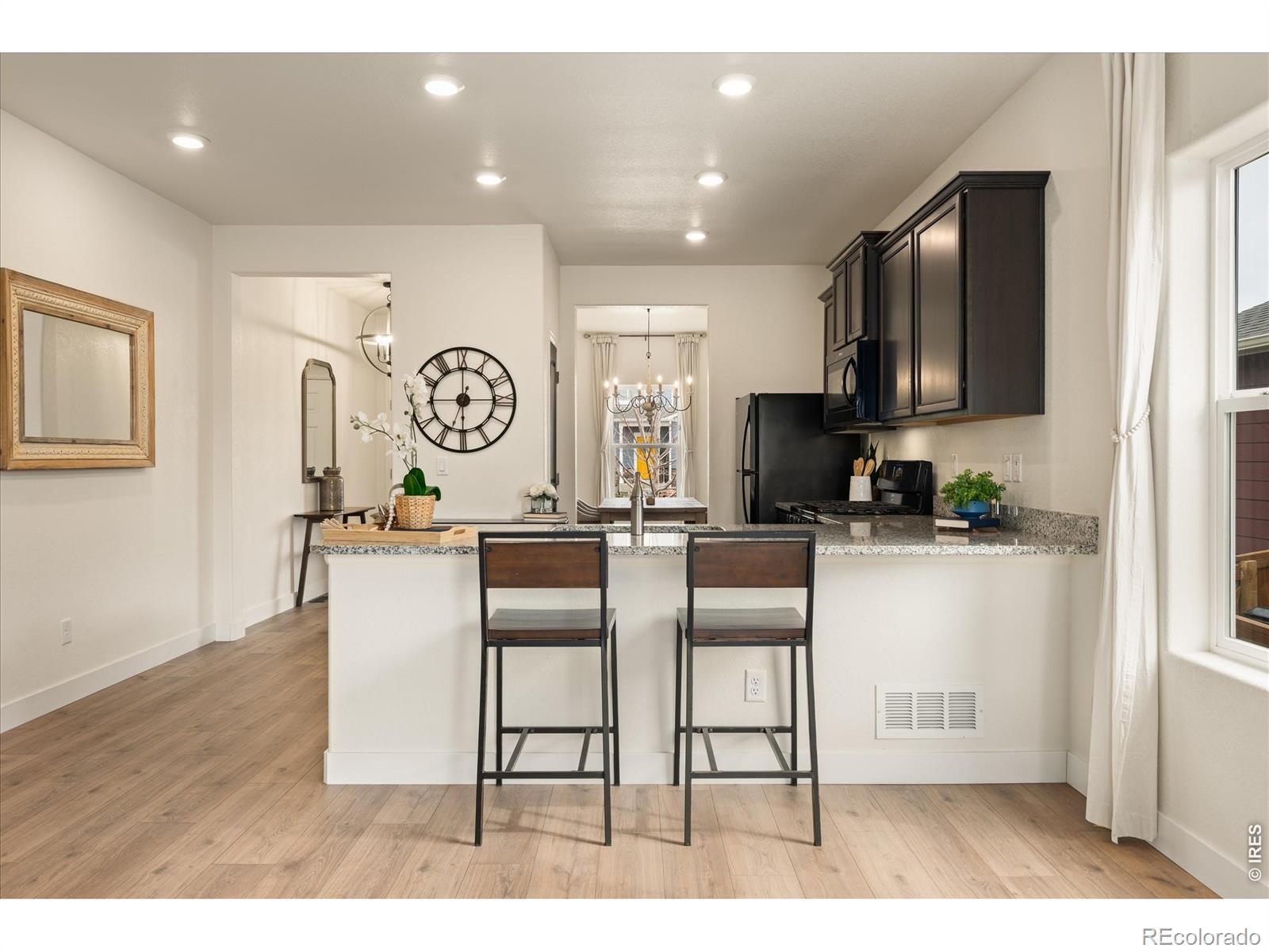 Meticulously maintained and thoughtfully updated, this 3-bedroom, 2-bath ranch offers true turnkey living. The home features new luxury vinyl plank flooring throughout in a neutral tone that works with any style. Updated light fixtures and ceiling fans add a clean, modern feel. The primary suite lives like a true suite, filled with natural light. The fully renovated primary bathroom includes a double vanity with quartz countertops and a spacious, spa-like shower with high-end fixtures and quality craftsmanship. The walk-in closet is oversized and intentionally designed to maximize storage. The kitchen includes a gas range, eat-in space, and an additional dining room or flex space. Natural light carries throughout the home. A fully lined crawlspace provides substantial additional storage. Outside, enjoy a fully fenced yard, large patio with room to entertain, and new low-maintenance landscaping. The updated sprinkler system can be controlled from your phone. Centrally located less than 10 minutes to downtown Windsor, with easy access to the Great Western Trail. Approximately 15 minutes to the edge of Fort Collins, 20 minutes to Loveland, and 20 minutes to Greeley. Well maintained, extensively updated, and move-in ready - a rare find in this price point.