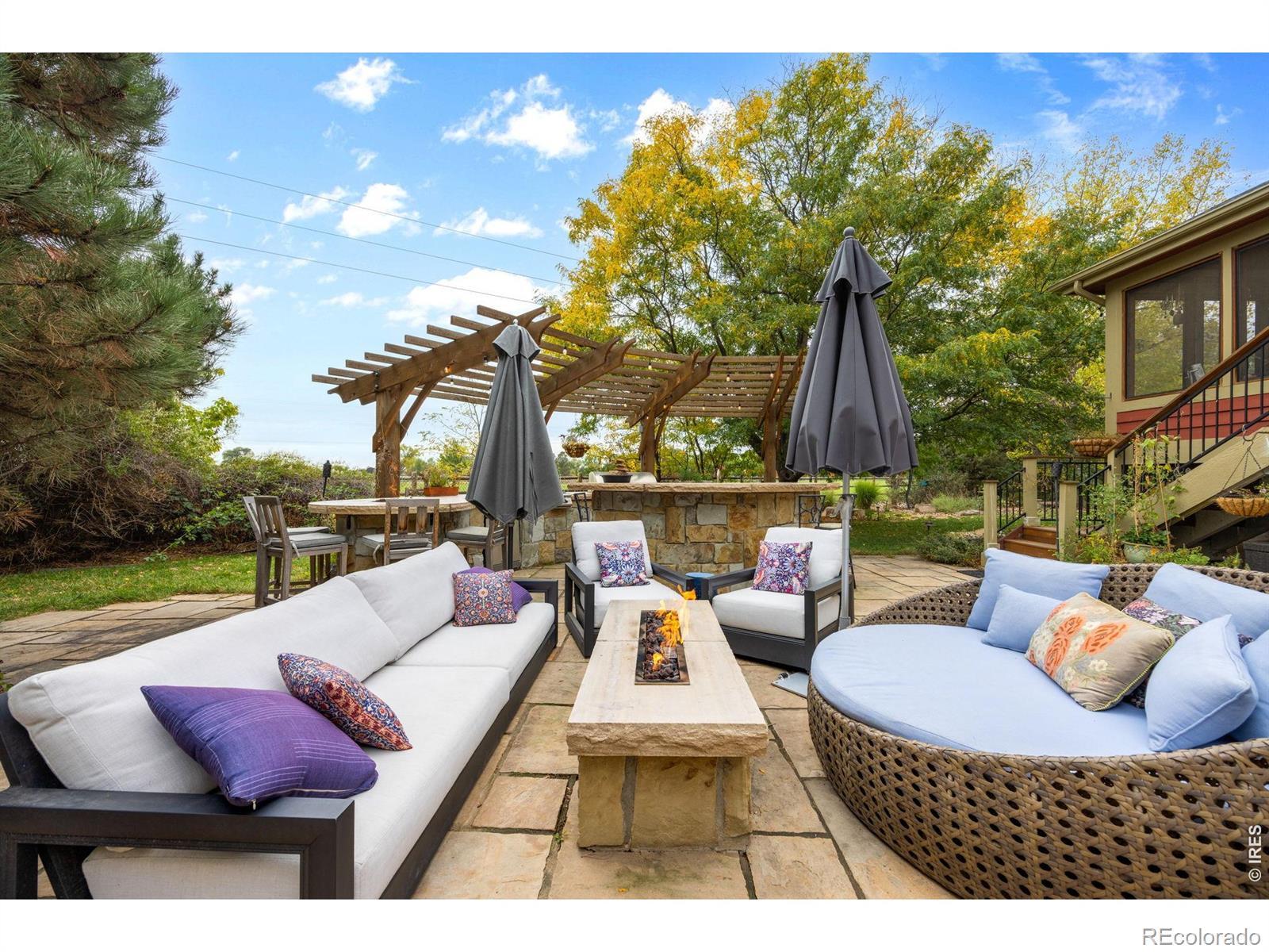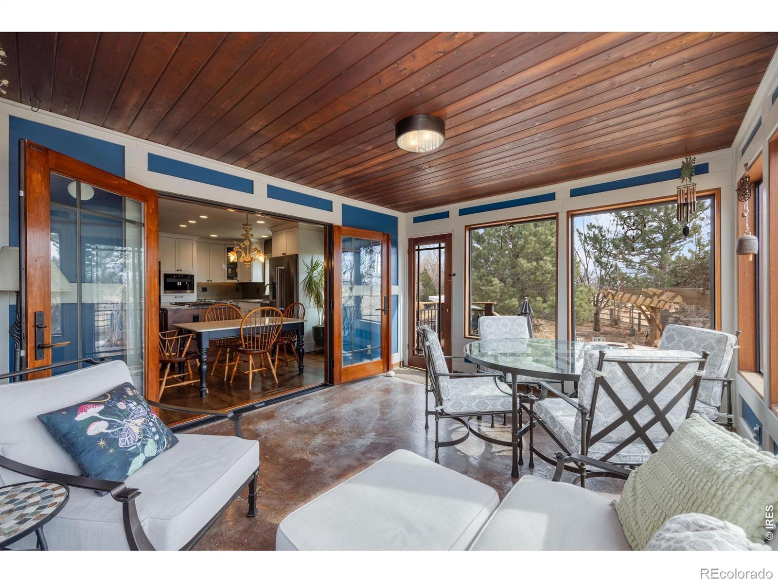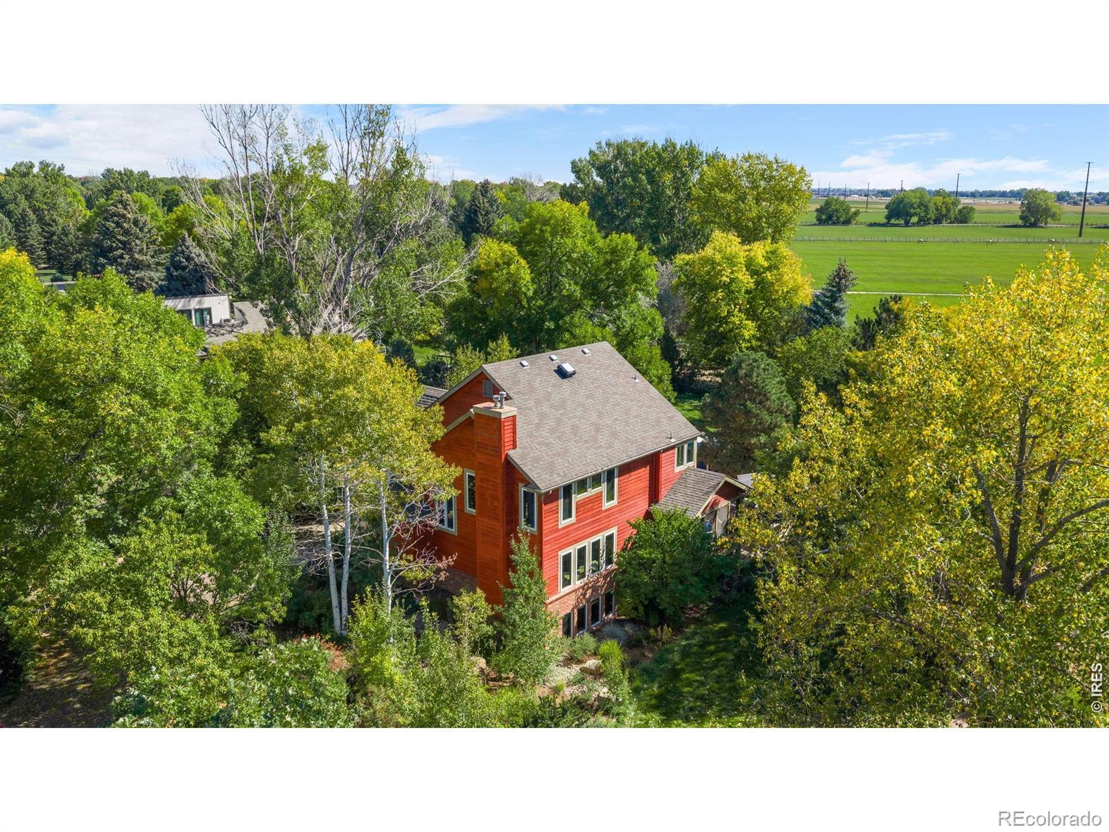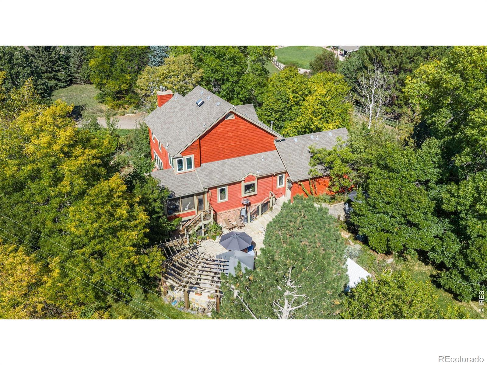 Discover your private oasis on 1.5 serene acres just minutes from Old Town Fort Collins, where this charming 3-bedroom, 3.5-bath home offers the perfect blend of luxury, nature, and seclusion. Tucked away for ultimate privacy, visitors can't even see it from the road. This property feels like a peaceful escape yet remains conveniently walkable to nearby amenities.Step inside to a warm, timeless interior featuring rich cherry hardwood floors, elegant travertine tile, and natural wood finishes trimmed in maple. The heart of the home is the chef's kitchen, boasting premium Wolf appliances including a Wolf double oven and cooktop with griddle, and built-in Miele coffee machine-ideal for effortless entertaining and everyday gourmet cooking.The eat-in kitchen flows seamlessly to a spacious screened porch, perfect for enjoying Colorado's mild shoulder seasons year-round.Outside, the remodeled outdoor living space is truly spectacular: a massive stone patio with a built-in island sink, grill, refrigerator, smoker, multiple fire pits for cozy gatherings, and a refreshing salt water pool/hot tub heated up to 104 degrees for year-round enjoyment.The home also features a climate controlled attached garage and an extra detached two car garage with attic storage.The acreage is a gardener's and homesteader's dream-fully set up with edible plants, berries, herbs, and a thriving strawberry patch producing around 10 pounds multiple times per year, a small orchard, and an active chicken coop. Mature pine, oak, maple, and ash trees surround the property, framing breathtaking views overlooking a sprawling horse farm on one side.Embrace Colorado living at its finest: privacy, productive land, luxury finishes, and stunning natural surroundings all in a highly desirable Fort Collins location. This rare gem won't last long, so schedule your private showing today!