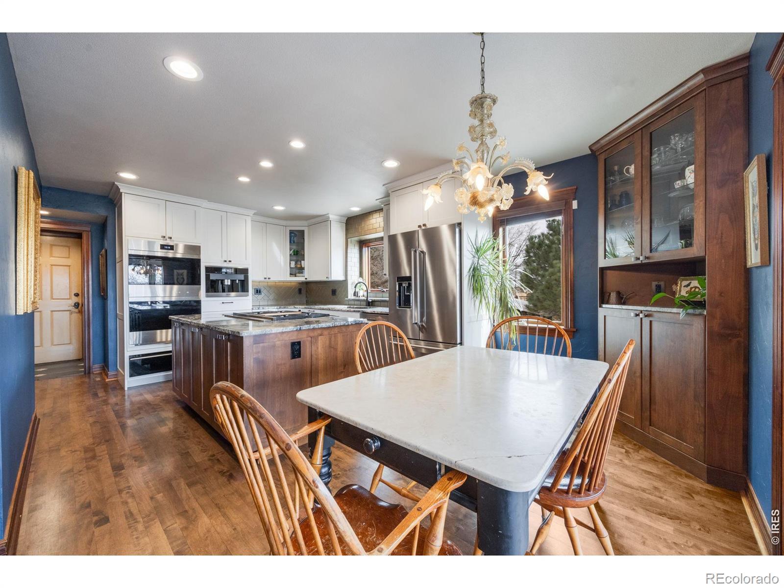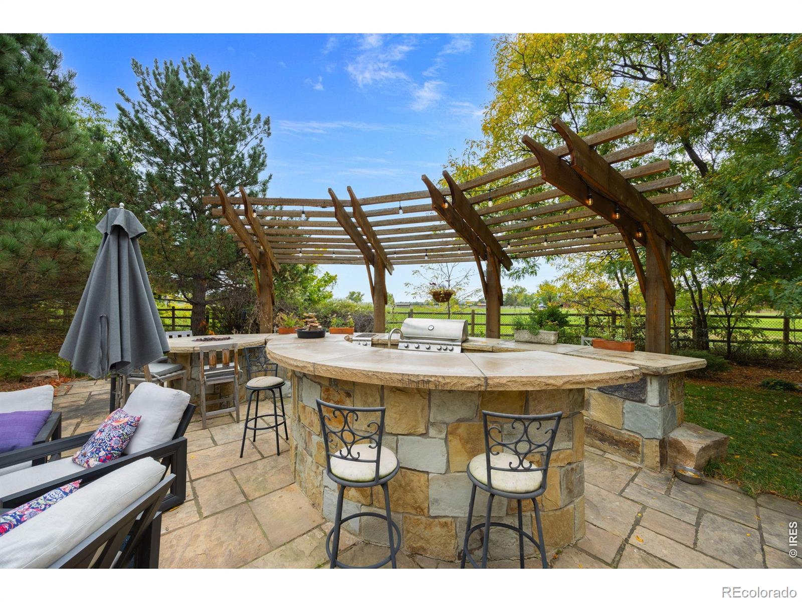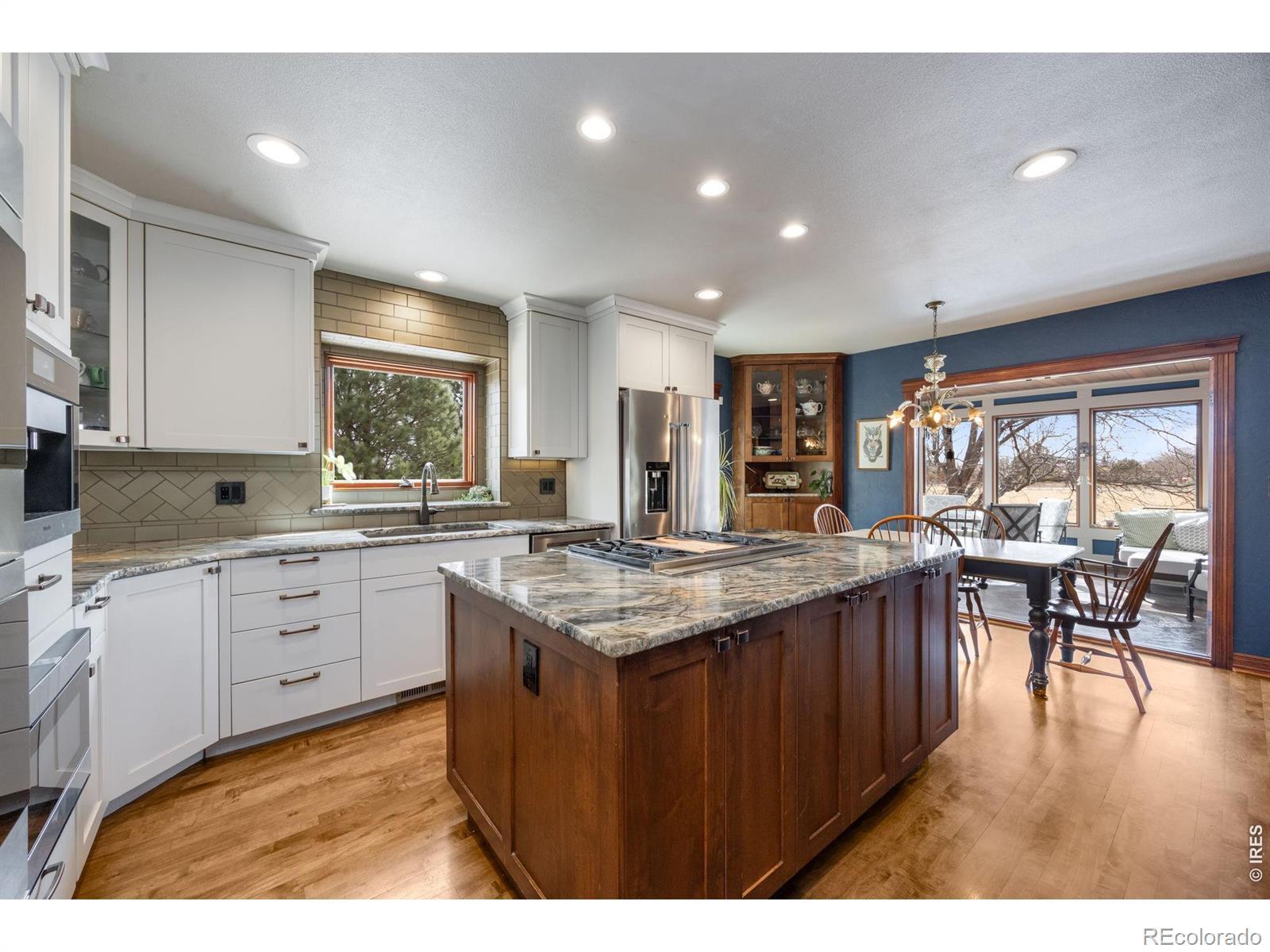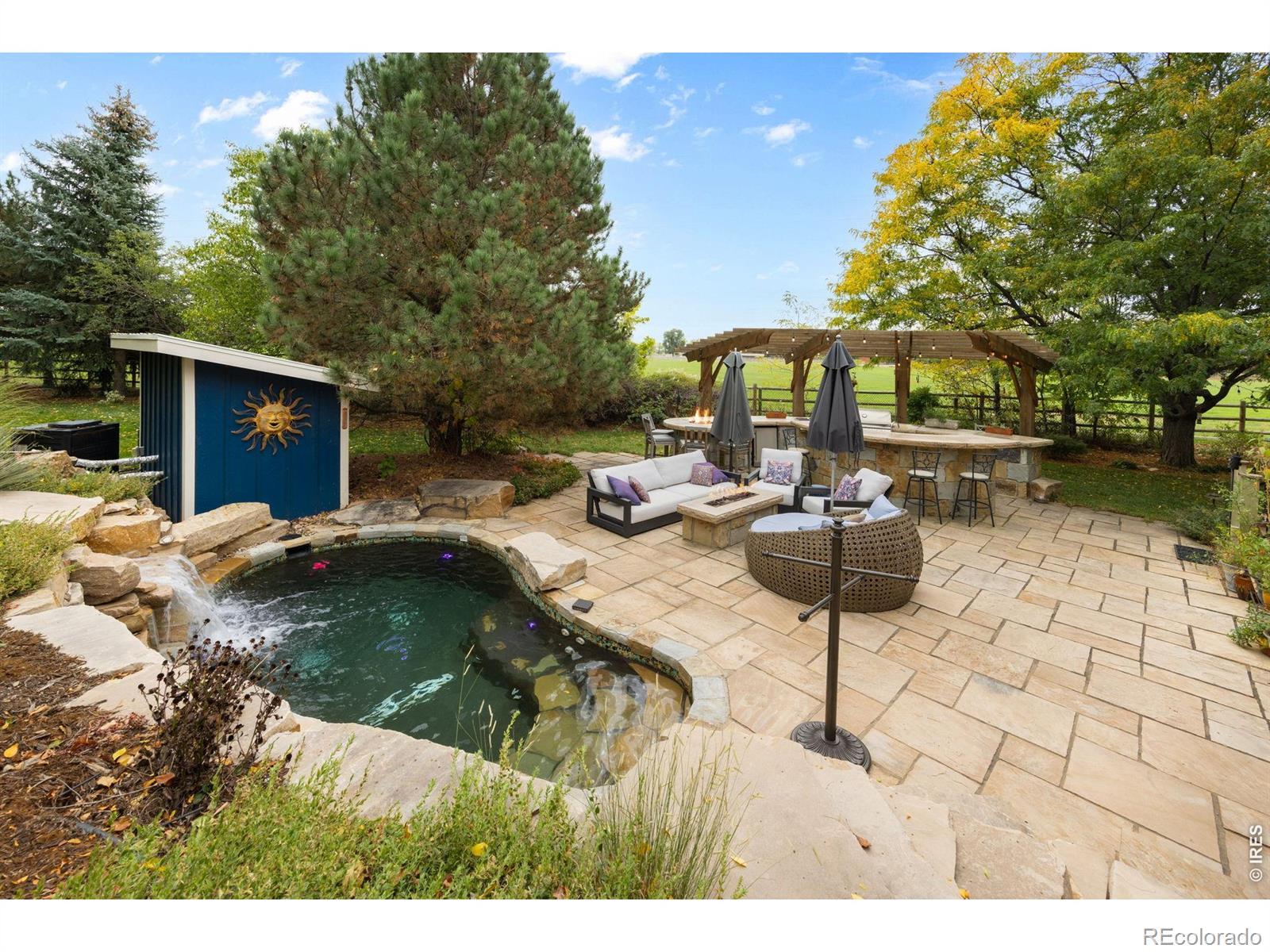 Discover your private oasis on 1.5 serene acres just minutes from Old Town Fort Collins, where this charming 3-bedroom, 3.5-bath home offers the perfect blend of luxury, nature, and seclusion. Tucked away for ultimate privacy, visitors can't even see it from the road. This property feels like a peaceful escape yet remains conveniently walkable to nearby amenities.Step inside to a warm, timeless interior featuring rich cherry hardwood floors, elegant travertine tile, and natural wood finishes trimmed in maple. The heart of the home is the chef's kitchen, boasting premium Wolf appliances including a Wolf double oven and cooktop with griddle, and built-in Miele coffee machine-ideal for effortless entertaining and everyday gourmet cooking.The eat-in kitchen flows seamlessly to a spacious screened porch, perfect for enjoying Colorado's mild shoulder seasons year-round.Outside, the remodeled outdoor living space is truly spectacular: a massive stone patio with a built-in island sink, grill, refrigerator, smoker, multiple fire pits for cozy gatherings, and a refreshing salt water pool/hot tub heated up to 104 degrees for year-round enjoyment.The home also features a climate controlled attached garage and an extra detached two car garage with attic storage.The acreage is a gardener's and homesteader's dream-fully set up with edible plants, berries, herbs, and a thriving strawberry patch producing around 10 pounds multiple times per year, a small orchard, and an active chicken coop. Mature pine, oak, maple, and ash trees surround the property, framing breathtaking views overlooking a sprawling horse farm on one side.Embrace Colorado living at its finest: privacy, productive land, luxury finishes, and stunning natural surroundings all in a highly desirable Fort Collins location. This rare gem won't last long, so schedule your private showing today!
