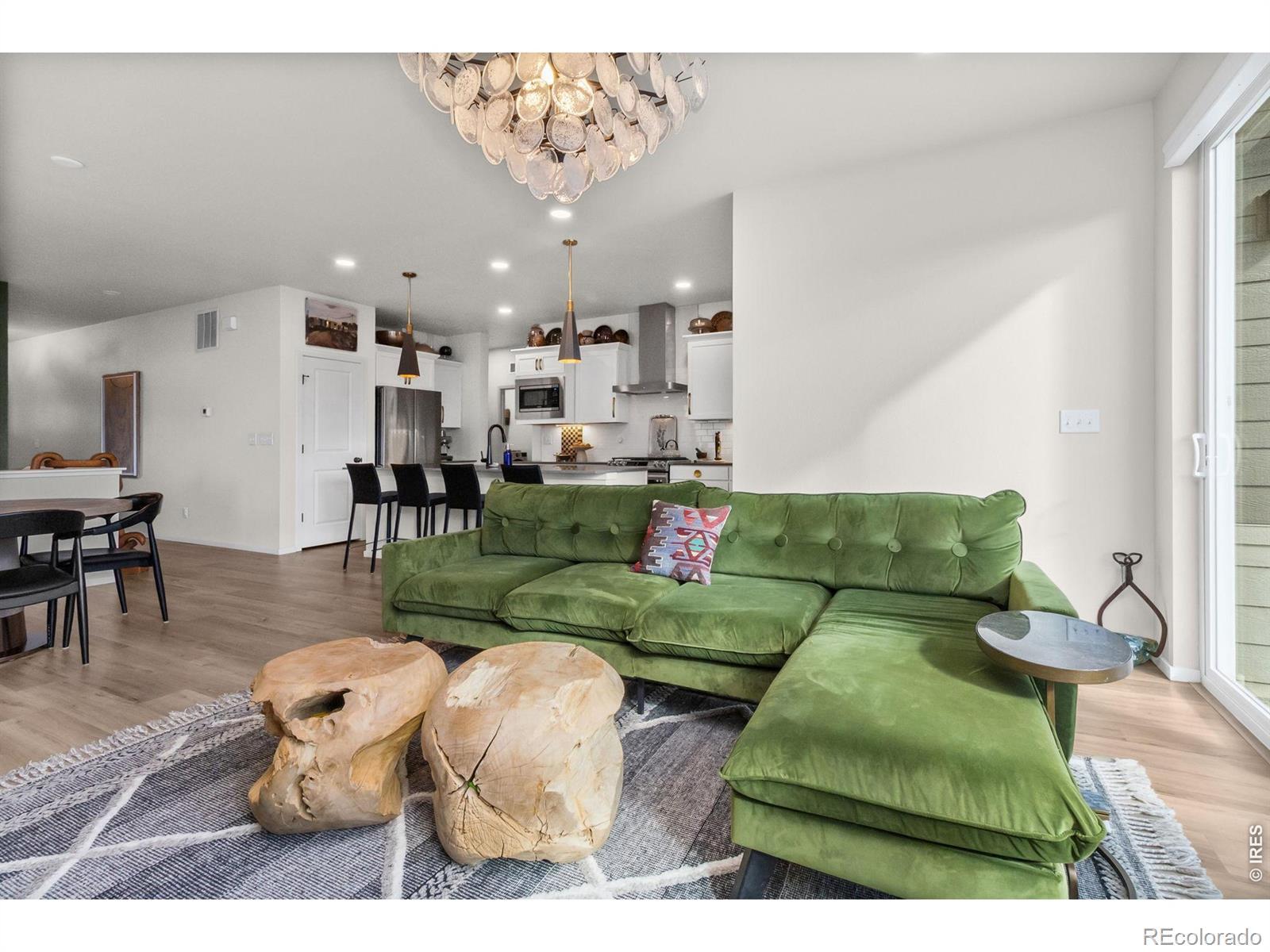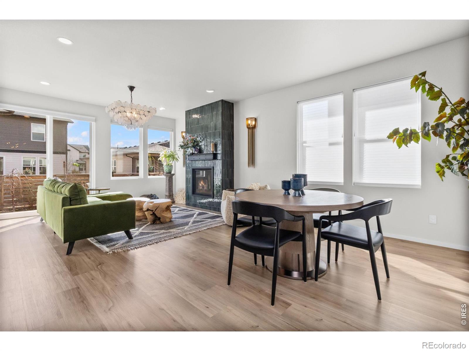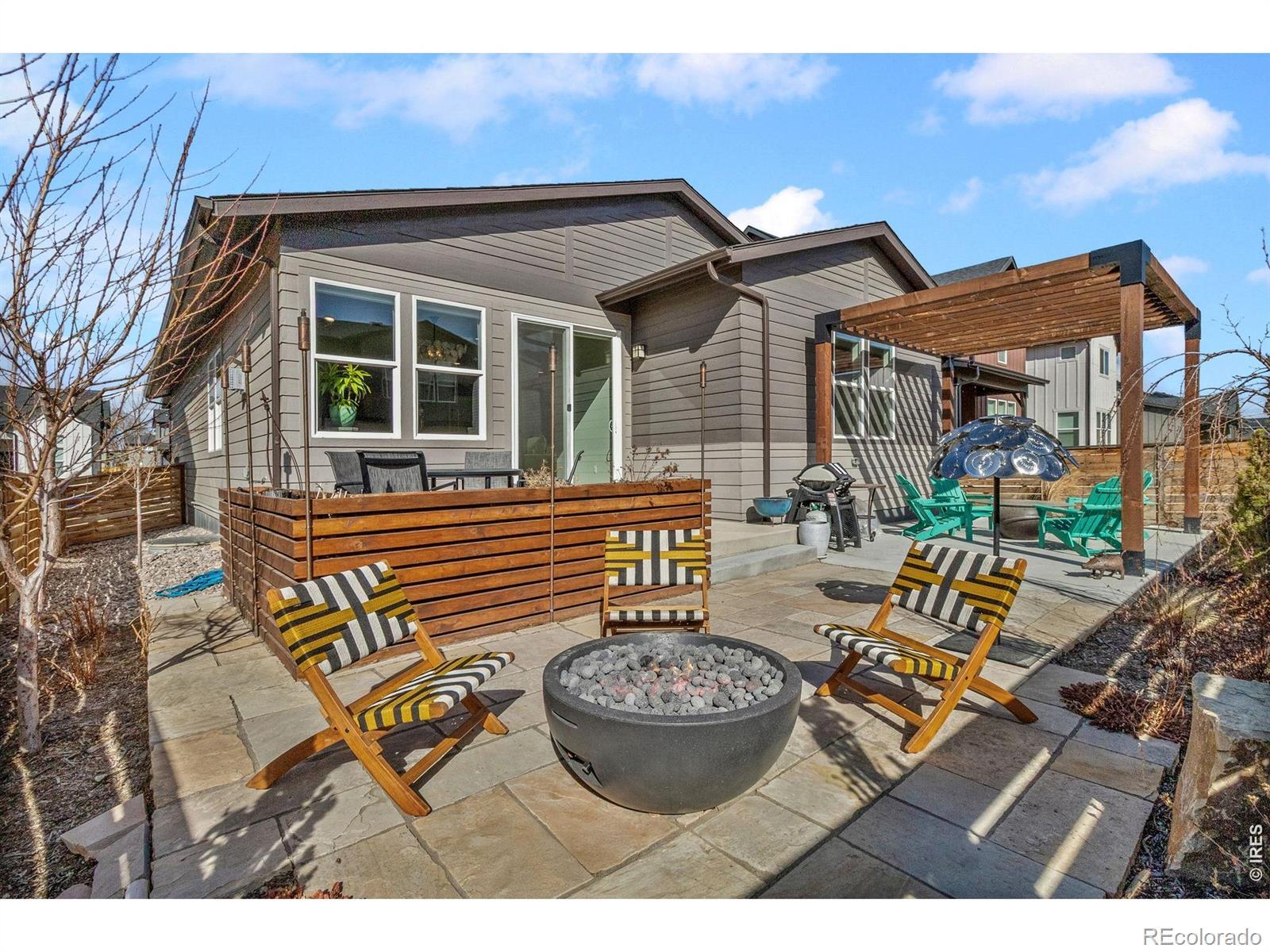 Builder-grade? Not here. This stunning ranch-style home in the highly sought-after, metro-tax-free Mosaic community is loaded with thoughtful, high-end upgrades from top to bottom. Lighting, faucets, fixtures - even the porcelain thrones - have been elevated to create a polished, designer feel throughout.Perfectly located less than 10 minutes from Old Town and just 5 minutes to I-25, Mosaic residents enjoy miles of scenic walking trails, expansive green spaces, two community pools, and an exciting new park coming soon.Inside, no detail has been overlooked. The open-concept main living area is anchored by a striking gas fireplace, creating warmth and style in the heart of the home. The kitchen is a true standout, featuring quartz countertops, soft-close cabinetry, upgraded appliances, and an enormous pantry that keeps everything beautifully organized. Hunter Douglas Luminescent top-down/bottom-up blinds add both function and elegance.The main-floor primary suite offers a custom built-in closet and a luxurious ensuite bath complete with a linen closet. With two bedrooms, two bathrooms, and laundry all on the main level, this home offers true single-level living convenience. Downstairs, you'll find a spacious secondary living room, two additional bedrooms, a full bathroom, and unfinished space with expansive crawlspace storage. Step outside to your own low-maintenance retreat. Three distinct seating areas, built in planter box, a pergola with removable cover, and a gorgeous gas fire pit create the perfect setting for entertaining or relaxing. The thoughtfully landscaped yard includes a peach tree, weeping cherry, pines, and raspberry bushes - a private outdoor oasis.Carefully curated and impeccably maintained, this home truly shows like a model. Come experience it for yourself.
