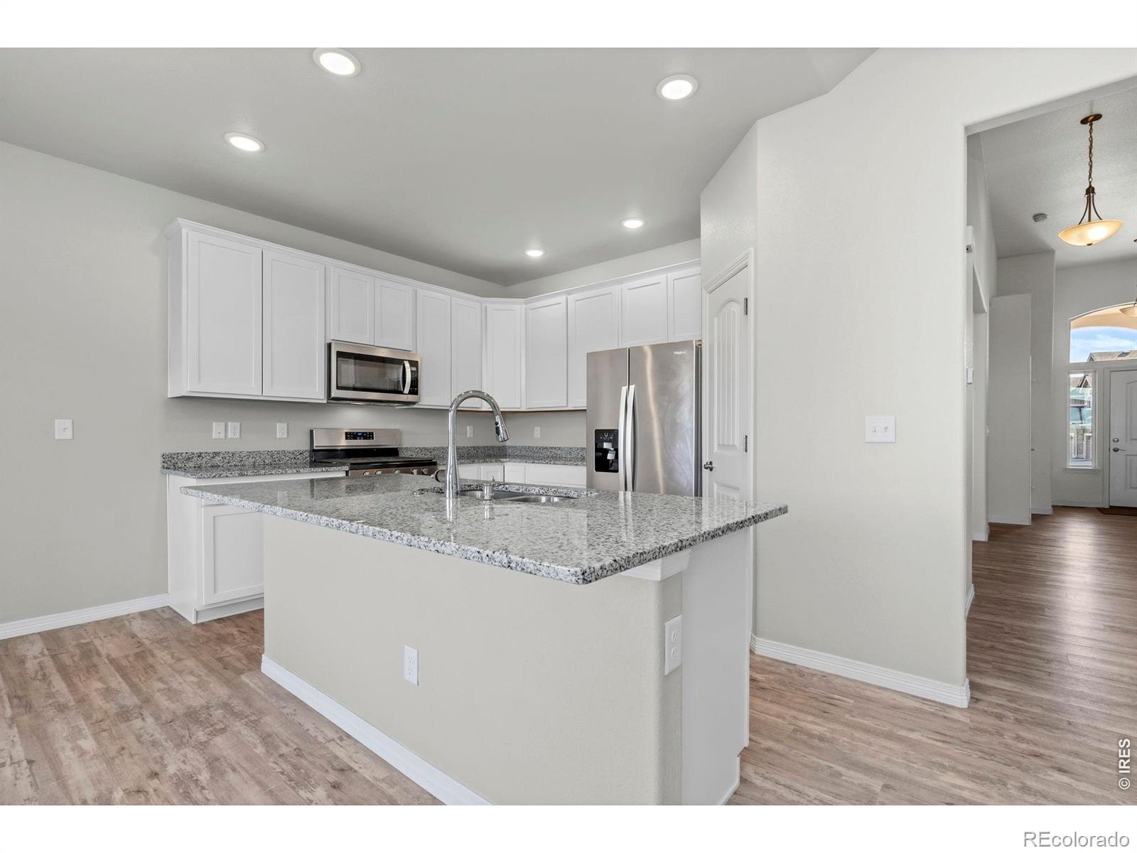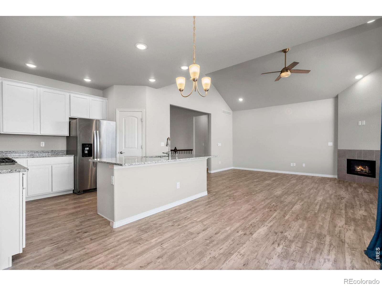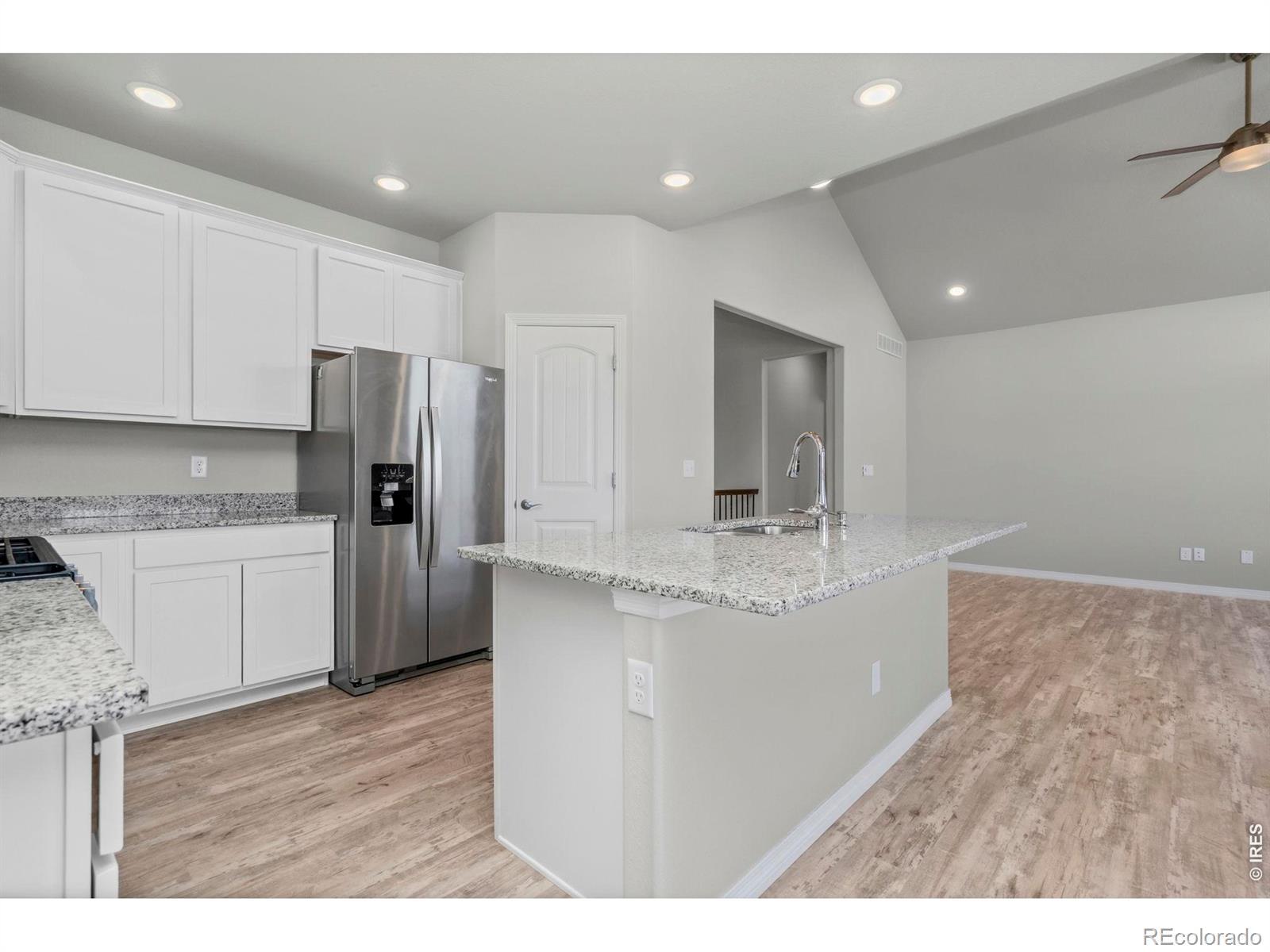 Welcome to 1733 Lazar Street in Eagle Brook Meadows - a stunning 2022-built sprawling ranch perfectly positioned in prime North Loveland. Backing to open space with breathtaking foothills views, this home offers the rare combination expansive scenery, and modern design. Step inside to soaring vaulted ceilings and a bright, open-concept layout that feels both expansive and inviting. The well-appointed kitchen anchors the main living space and features stainless steel appliances, timeless shaker cabinetry, and generous prep space - ideal for entertaining or everyday living. The kitchen flows seamlessly into the dining and living areas, creating a true gathering space.The spacious primary suite is a private retreat, complete with a luxurious 5-piece en-suite bath and an oversized walk-in closet. Luxury vinyl plank flooring adds durability and style throughout the main living areas. Downstairs, the massive finished basement significantly expands your living space with two additional bedrooms and abundant room for recreation, guests, a home gym, or media area - offering flexibility for any lifestyle. Enjoy unobstructed backyard views of open space and the foothills - Colorado living at its best!
