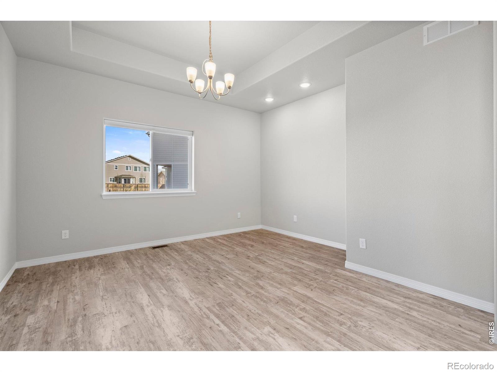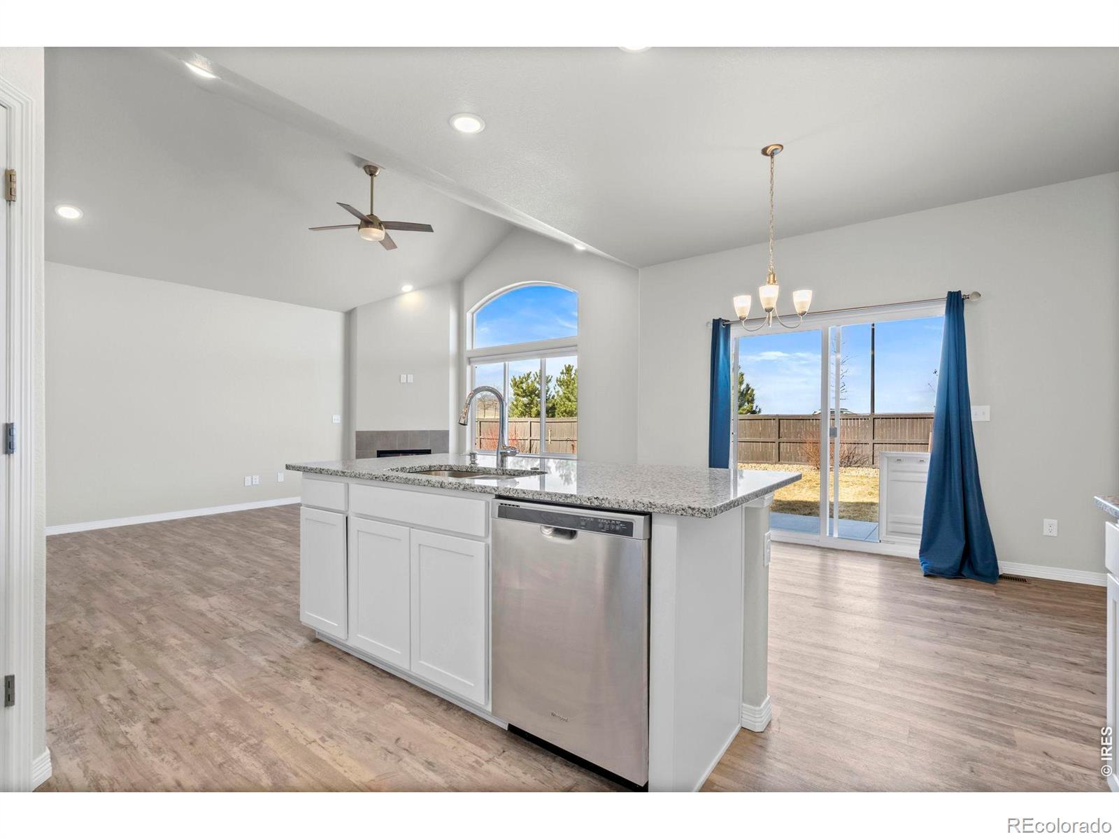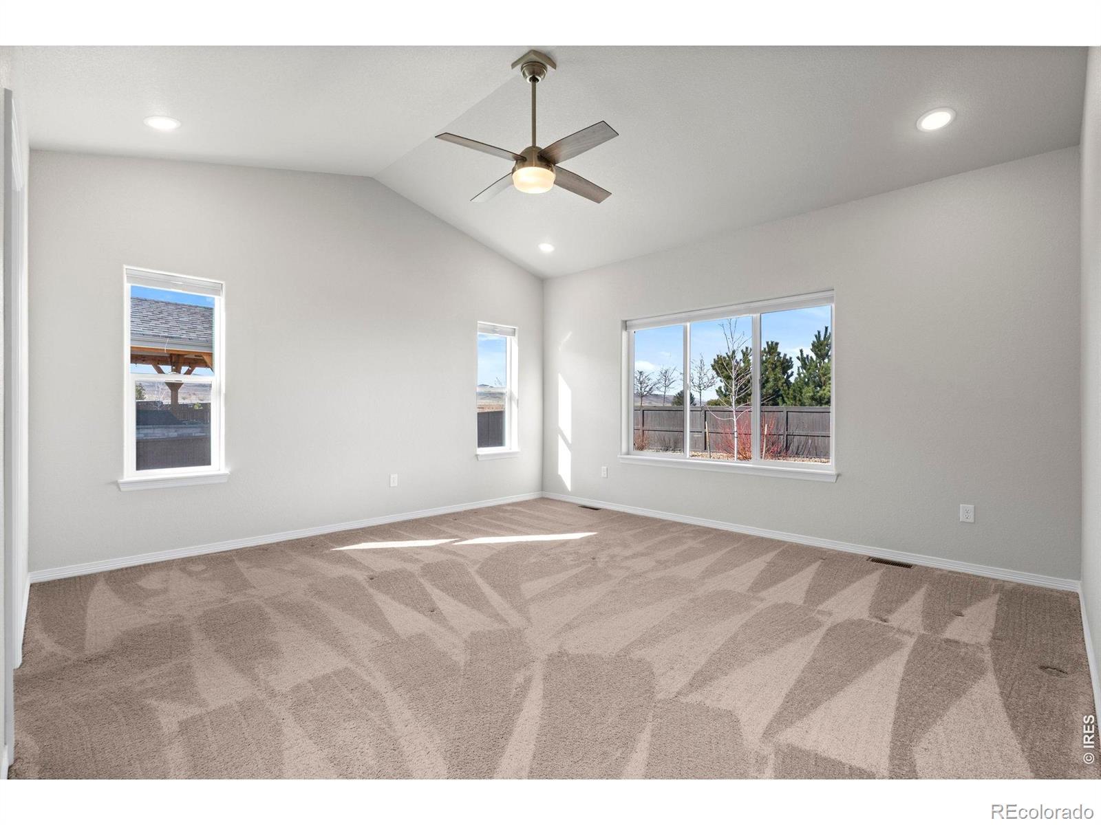 Welcome to 1733 Lazar Street in Eagle Brook Meadows - a stunning 2022-built sprawling ranch perfectly positioned in prime North Loveland. Backing to open space with breathtaking foothills views, this home offers the rare combination expansive scenery, and modern design. Step inside to soaring vaulted ceilings and a bright, open-concept layout that feels both expansive and inviting. The well-appointed kitchen anchors the main living space and features stainless steel appliances, timeless shaker cabinetry, and generous prep space - ideal for entertaining or everyday living. The kitchen flows seamlessly into the dining and living areas, creating a true gathering space.The spacious primary suite is a private retreat, complete with a luxurious 5-piece en-suite bath and an oversized walk-in closet. Luxury vinyl plank flooring adds durability and style throughout the main living areas. Downstairs, the massive finished basement significantly expands your living space with two additional bedrooms and abundant room for recreation, guests, a home gym, or media area - offering flexibility for any lifestyle. Enjoy unobstructed backyard views of open space and the foothills - Colorado living at its best!