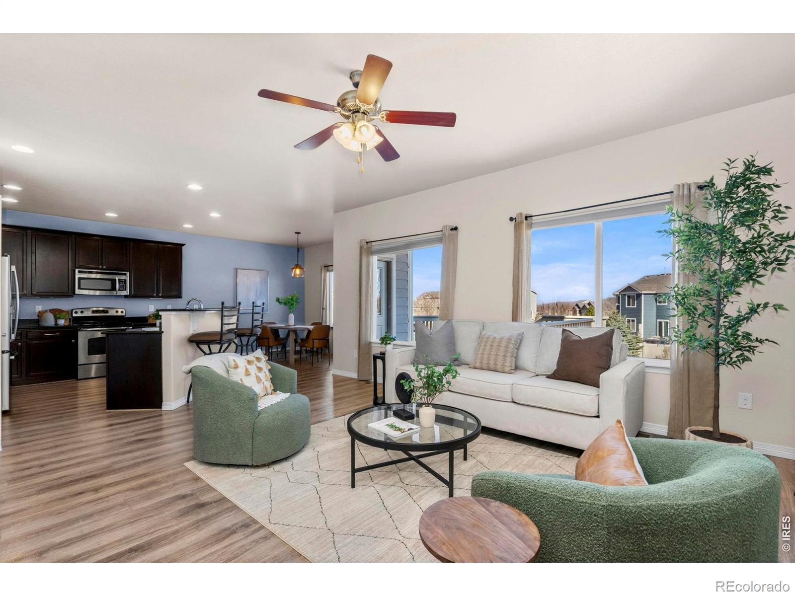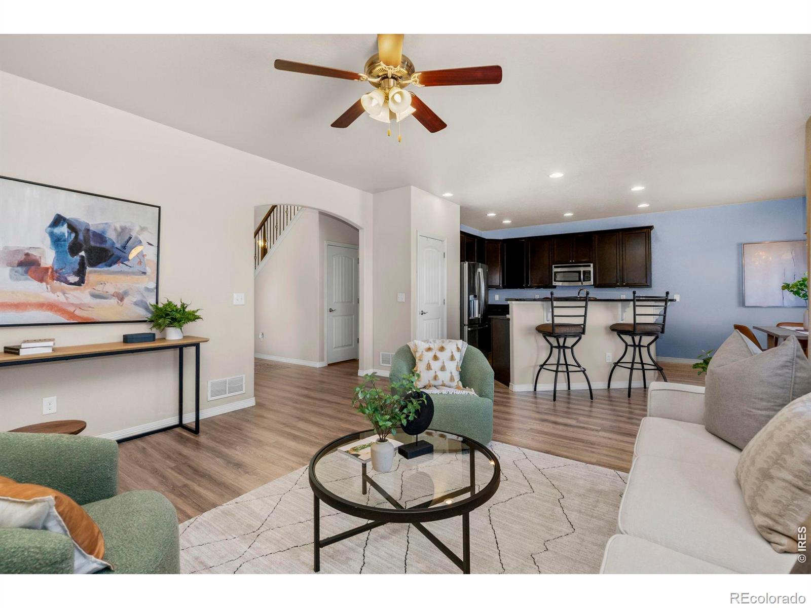 Wonderful home located in the Fossil Ridge Subdivision with NO METRO DISTRICT! The home features 4 bedrooms and an office, a 4 car garage with upgraded garage doors. The floor plan is centered around an open kitchen, dining and living room, and has a great deck and outdoor space just steps from the main area of the home. The house was recently painted and has a new, impact resistant roof that was replaced in 2024. Granite countertops & 42" upper cabinets and easy care flooring throughout the main floor, a huge primary bedroom with a 5 piece bath and walk in closet, a high efficiency furnace, and brand new A/C. The plan has a lot of space and an unfinished, daylight basement with room for expansion. Located on a quiet street with plenty of available parking, and a large backyard, this is a great home for anyone looking to make their home a peaceful oasis! The owners have taken great care of the property and have installed brand new carpet! Come take a look and enjoy all that this home has to offer.