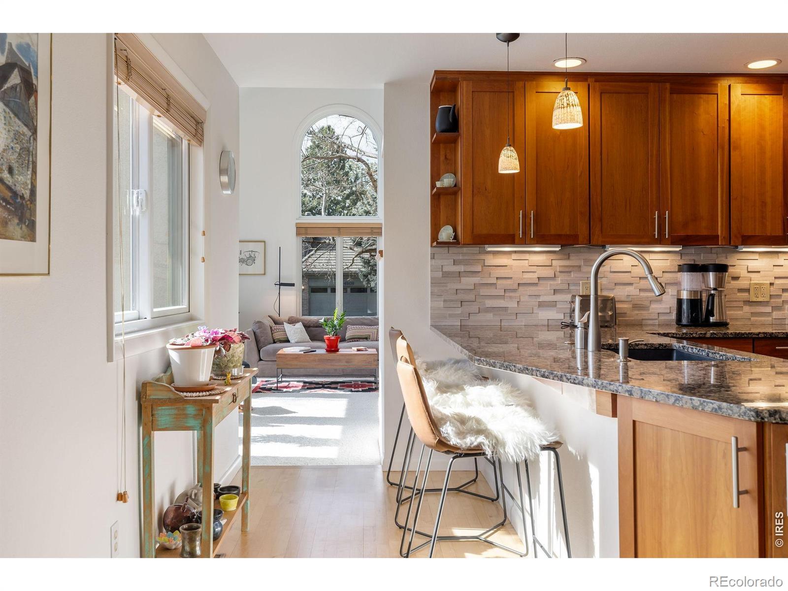 A serene Gunbarrel retreat! Refined interiors, abundant natural light, mature trees, and idyllic indoor-outdoor living define this turnkey 4BD/3BA residence! Encompassing 3,544 SF, the home opens with a gracious vestibule entry and coat closet, offering vaulted ceilings, new Andersen windows, hardwood floors, new carpet, fresh paint and custom millwork throughout. A sun-drenched living room framed by dramatic Palladian windows creates an elegant setting for both intimate gatherings and entertaining. Beyond, the great room invites relaxed gatherings beside a warm fireplace accented by bespoke cabinetry and elegant Italian plaster detailing. The open chef's kitchen is both beautiful and functional, featuring all-new wood cabinetry, granite countertops, and stainless steel appliances. New Andersen French doors tempt you outside to enjoy professionally landscaped, irrigated and fully fenced yard featuring a new pergola-topped patio and deck. Three secondary bedrooms and two well-appointed full baths are thoughtfully situated on the main level, offering flexibility for guests. Upstairs, the expansive and ultra-private owner's retreat serves as a true sanctuary with iconic views! Featuring a king-sized bedroom with access to a secluded deck, a custom walk-in closet, a beautifully updated en suite bath, a spacious office, and a versatile bonus room ideal for fitness, hobbies, or creative pursuits. Dual staircases enhance both privacy and convenience. The lower level reveals a light-filled recreation room flanked by custom cabinetry, a charming under-stair reading nook, and a dedicated workshop/mechanical room. Additional updates include an updated sidewalk entry and a 6.66kW solar system. A main-level laundry room and attached two-car garage complete the home. This ideal location offers access to miles of fantastic hiking/biking trails, Boulder Country Club recreation, and South Meadows HOA private park/tennis courts, with Downtown/Pearl Street amenities just minutes away.