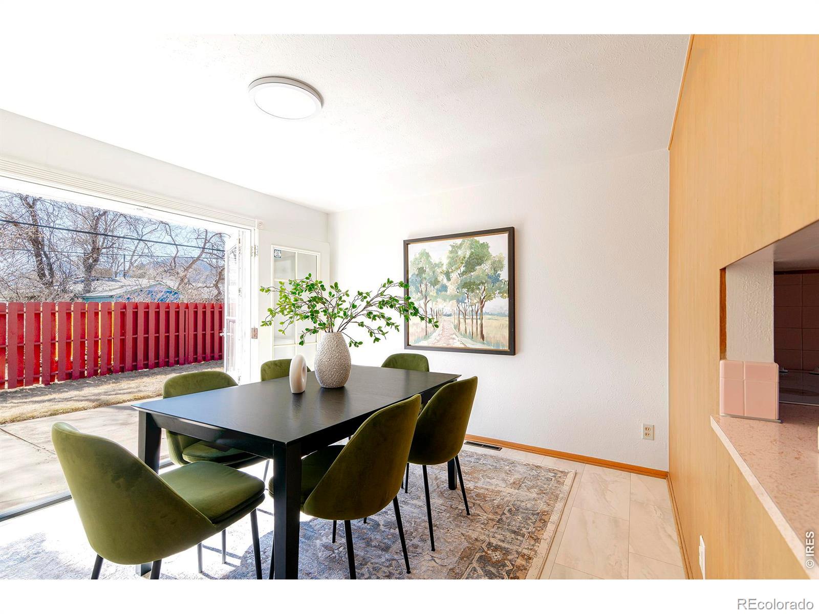 Ideally located in the beloved High Meadows neighborhood, just one block from Columbine Park, this classic 1961 brick ranch captures the essence of North Boulder living. At a compelling entry point into city living, the home celebrates preserved mid-century character paired with everyday functionality & long-term potential Large south-facing windows fill the living spaces with natural light and frame views of Boulder's iconic mountain backdrop. The living room overlooks the private backyard, creating a bright & inviting atmosphere, while French doors in the dining room open seamlessly to the yard - perfect for indoor-outdoor living. The preserved mid-century kitchen honors the home's original era, offering authentic lines, vintage character, & a nostalgic design aesthetic. Fresh interior paint & new lighting complement beautifully refinished original hardwood floors throughout the living room & all bedrooms - a true celebration of 1960s craftsmanship. The functional main-level layout includes a private primary suite with ensuite bath, along w/ two additional bedrooms served by a spacious secondary bathroom. Downstairs, the partially finished basement with bathroom rough-in plumbing and office offers exceptional opportunity for future expansion - whether additional living space, recreation room, guest suite, or a custom retreat tailored to your vision. Situated on a fully fenced lot with space for entertaining, pets, or gardening, the property also includes an attached one-car garage. Solid brick construction, established neighborhood charm, and exceptional walkability provide easy access by foot, bike, or car to parks, Pearl Street, Ideal Market, and countless local shops and restaurants. Whether you're drawn to its preserved mid-century soul or inspired to thoughtfully evolve it over time, this is a rare opportunity to own a centrally located Boulder home with enduring value and architectural authenticity. It's comfortable now and customizable for the future.