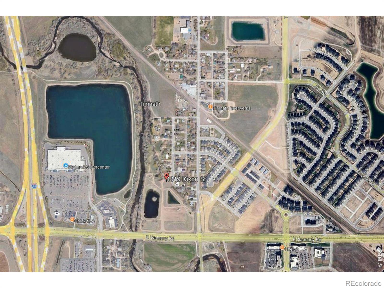 Development opportunity with Harmony Road frontage, great exposure with high traffic counts and convenient access to cities of Fort Collins, Loveland, Windsor, Greeley. Less than 1/2 mile from I-25 with a steady flow of traffic enhancing visibility, surrounded by ongoing residential and commercial growth. Development opportunity consists of approximately 21 acres more or less along Poudre River with island and decreed reservoirs. Zoned C-2 Community Commercial, Town of Timnath together with single family residence on .825 acres known as 4319 Dickson St currently used as an office. Prior subdivision concepts showing potential of multiple commercial pads with a myriad of zoning uses such as retail, restaurants, QSR, grocery, medical/dental, hotel, fuel station, daycare, office, mixed use, vet clinic, banks, entertainment, long term care just to name a few.