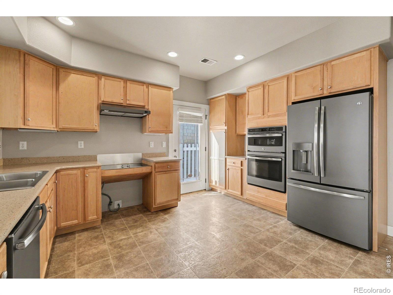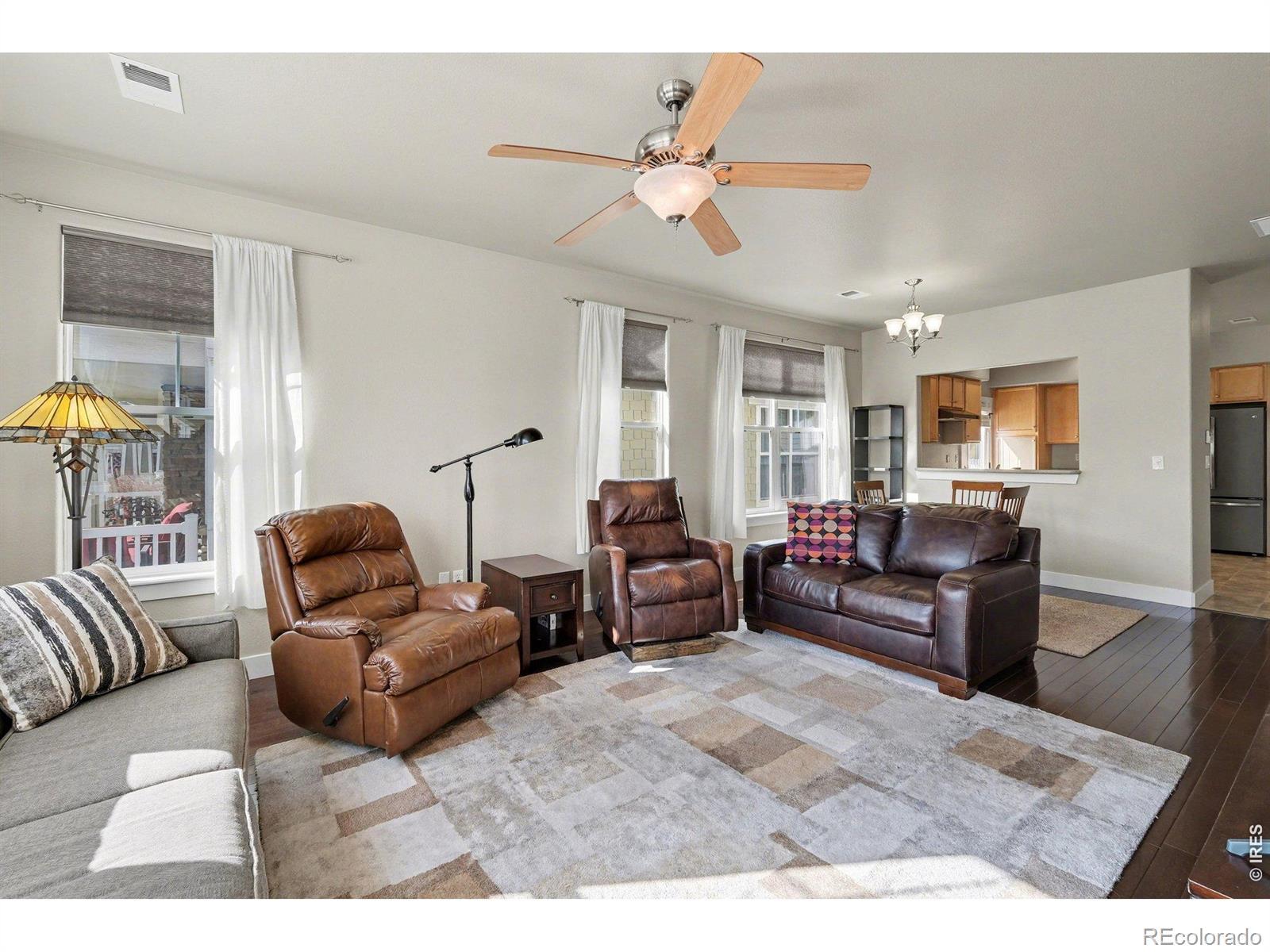 This beautifully maintained two-story cottage at MacKenzie Place is located in the heart of Fort Collins in a 55+ community. This 2-bedroom, 2.5-bath home features an open floor plan filled with natural light and a spacious living area ideal for everyday living. Wood floors, upgraded black stainless steel appliances, and convenient main-level laundry add style and function, while pride of ownership throughout makes this home truly move-in ready. Thoughtful accessibility features include wider hallways and doorways, a lowered stovetop with open space below, a disposal switch under the kitchen sink, and a lower front door peephole. The primary suite offers a large walk-in closet and a stepless entry shower with an upgraded glass enclosure. A rare upstairs suite provides flexible space for a second bedroom, guest area, or hobbies, along with an additional full bathroom. Enjoy relaxing on the private back patio or taking advantage of the nearby clubhouse. Community amenities include a theater, pool, fitness center, restaurant, and pub. Conveniently located near shopping, medical offices, public transportation, and with easy access to I-25, this home offers comfort, convenience, and a vibrant community setting.