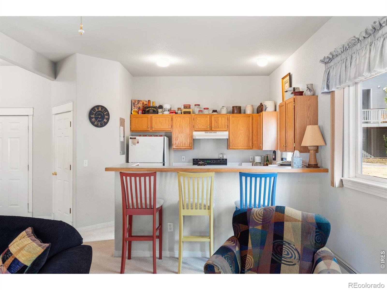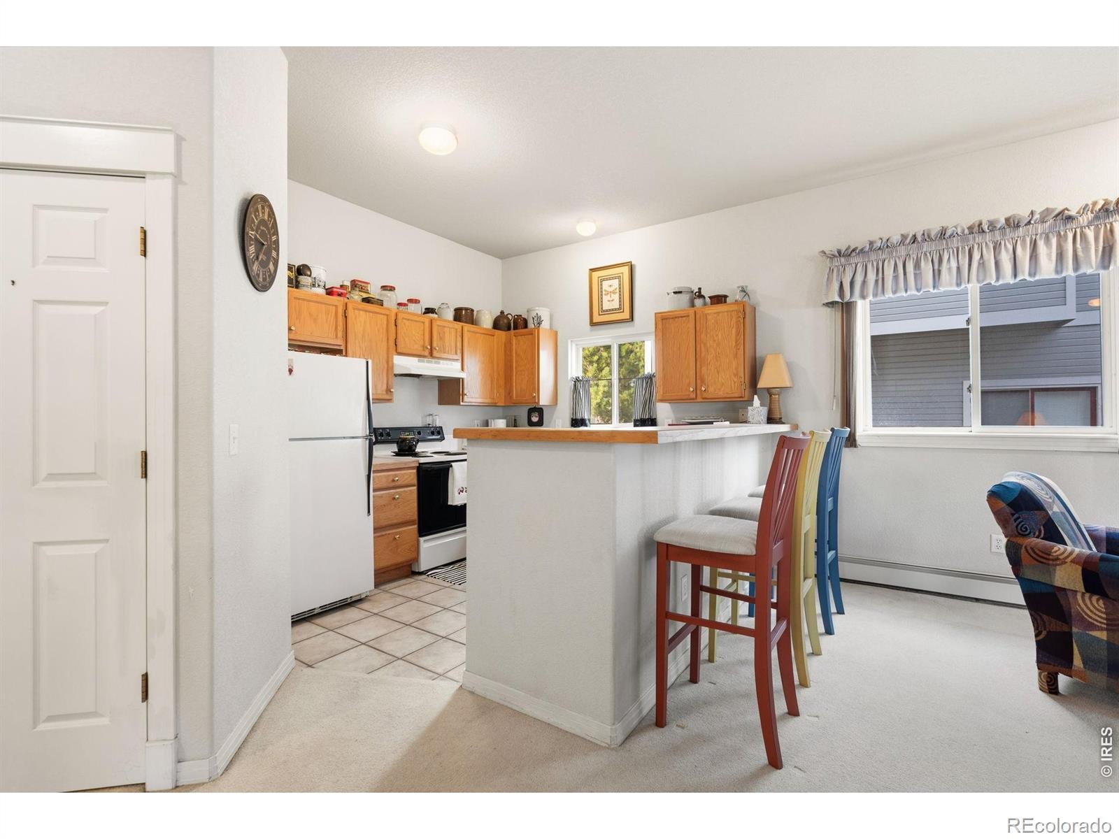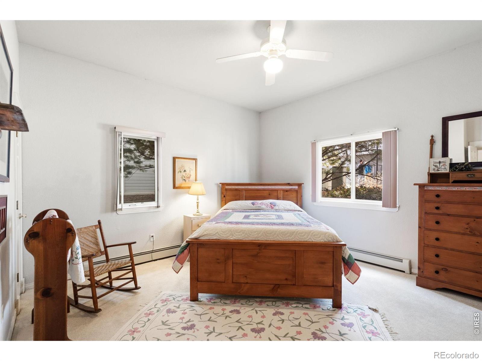 This 2-bedroom, 2-bathroom condo, featuring an additional study/bedroom, is perfectly located in the heart of midtown. Surrounded by mature trees in Spring Creek Hollow, this home is across the street from the beautiful Spring Creek Park & offers immediate access to the Spring Creek trail. It is conveniently situated near parks, Whole Foods, King Soopers, The MAX, & is just minutes from Old Town, UC Health, CSU, & various shopping centers. The interior features high ceilings, a gas fireplace in the living room, & a private back patio overlooking the park. The kitchen overlooks the living room & dining room, offering wonderful light & views of the private open space & park. The spacious primary bedroom includes a walk-in closet & an en-suite bathroom with dual vanities. Additional highlights include a detached single-car garage & a recently updated boiler for the hot water heating system. This home offers a quiet, peaceful, & truly special location.