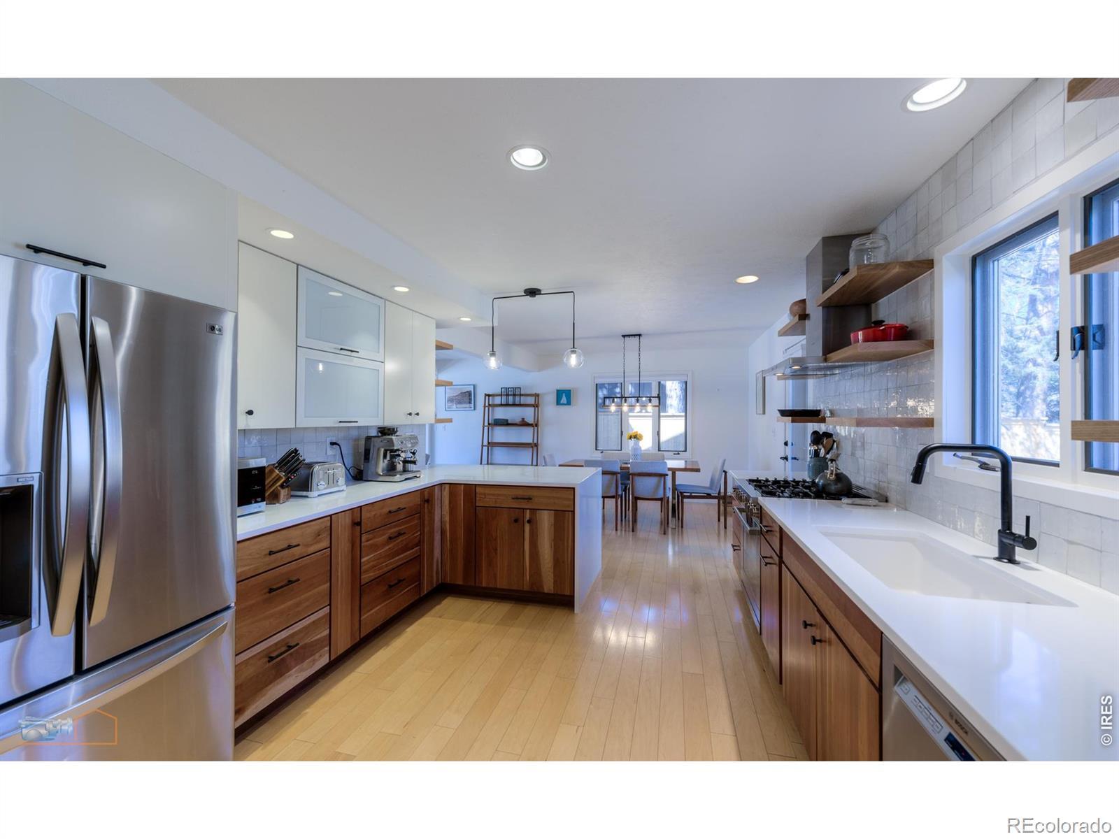 This beautifully updated home in North Boulder is located at the end of a small cul-de-sac off 15th street offering both privacy and safety! Features include an open main level floor plan with a recently remodeled kitchen including quartz countertops and Bosch appliances, three bedrooms on the second level including a spacious primary and a fully finished lower level with a fourth bedroom and family room. Major components replaced by the current owners include the A/C, HWH, furnace and fence all new in 2022. This quiet secluded park like setting offers easy access to Lucky's Market, Wonderland Lake, open space trails and only 2 miles to the Laughing Goat!