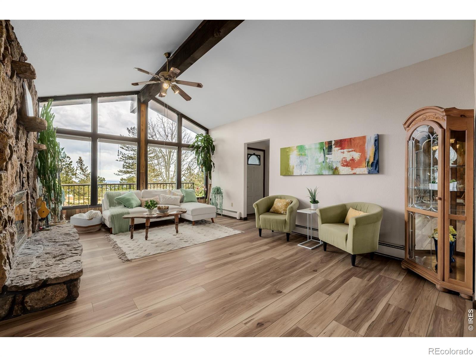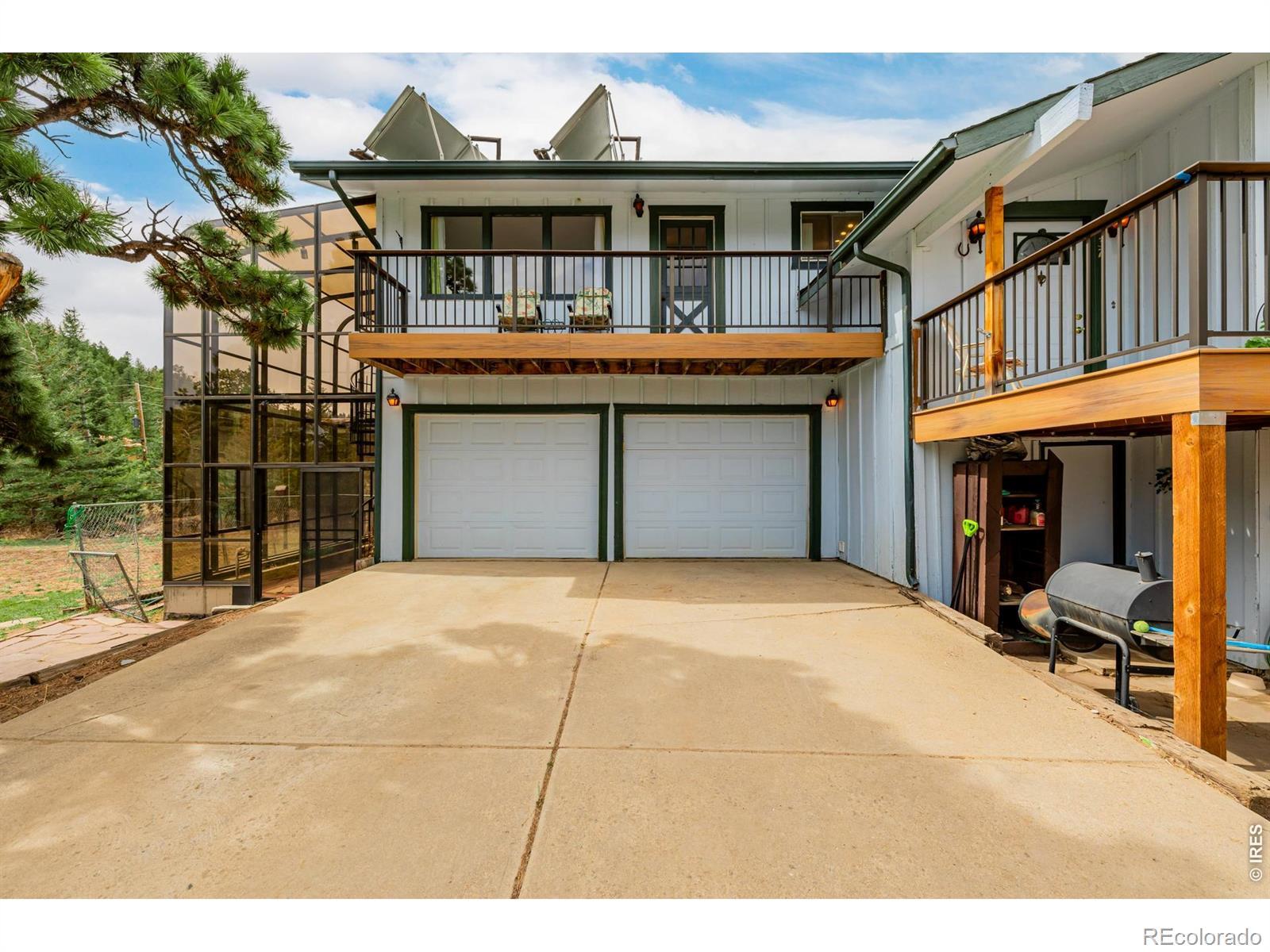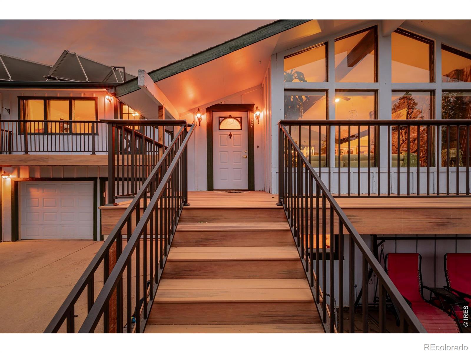 What a RARE find! Situated on a corner gently sloping 1.47-acre lot of a cul-de-sac, this beautiful property offers unparalleled privacy, tranquility, and panoramic views of the Foothills & the sparkling lights of Boulder Valley. Offering 4 bedrooms, 3 bathrooms, and an oversized 2-car garage w/extended driveway. The interior beautifully embraces a rustic contemporary style, blending natural materials like wood and stone with modern design elements to create a warm & inviting atmosphere! Enhanced by abundant natural light, vaulted ceilings, exposed beams, a designer palette, and wood-look flooring w/plush carpet in all the right places. Discover the separate dining room and the welcoming living room with a fireplace! The kitchen boasts solid-surface counters, a subway tile backsplash, ample wood cabinetry, and a peninsula w/breakfast bar. You'll LOVE the main bedroom with a full bathroom! It also includes access to the attached solarium/greenhouse, where you can watch the snow fall in warmth and comfort. But that's not all-the large walk-out basement will impress! It features an inviting family room, an additional fireplace, a bathroom, 4th bedroom, and sliding doors that merge the inside/outside activities. Imagine sipping your favorite beverage while enjoying the breathtaking mountain vistas right from your multiple decks! This residence is surrounded by towering pine trees and scenic rock outcroppings, creating a tranquil retreat to unwind, watch wildlife, and soak in the beauty of nature. Located on a county-maintained and plowed road, this home offers year-round accessibility. PLUS! Just minutes from downtown Boulder's shops, restaurants, hiking trails, and top-rated schools, this home blends serene mountain living with easy city access. Don't miss this opportunity to own a piece of Boulder's coveted mountain community!