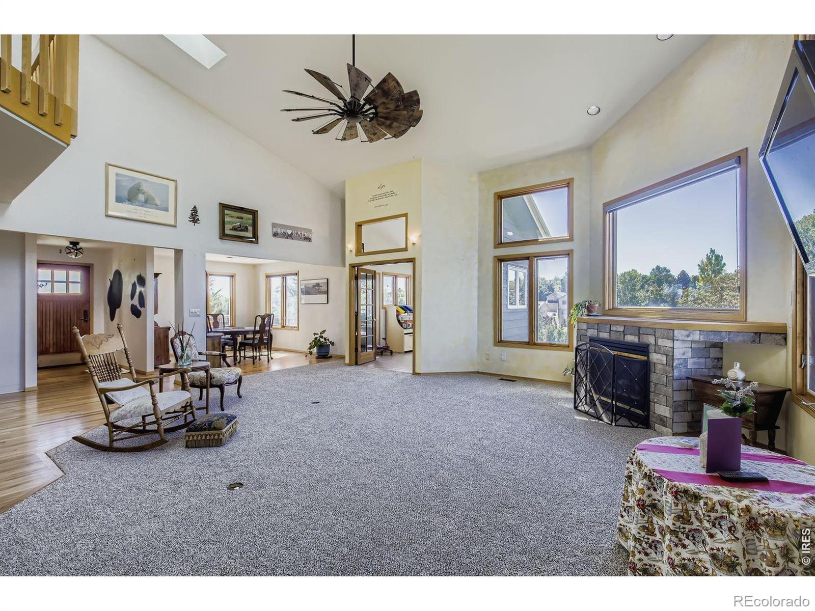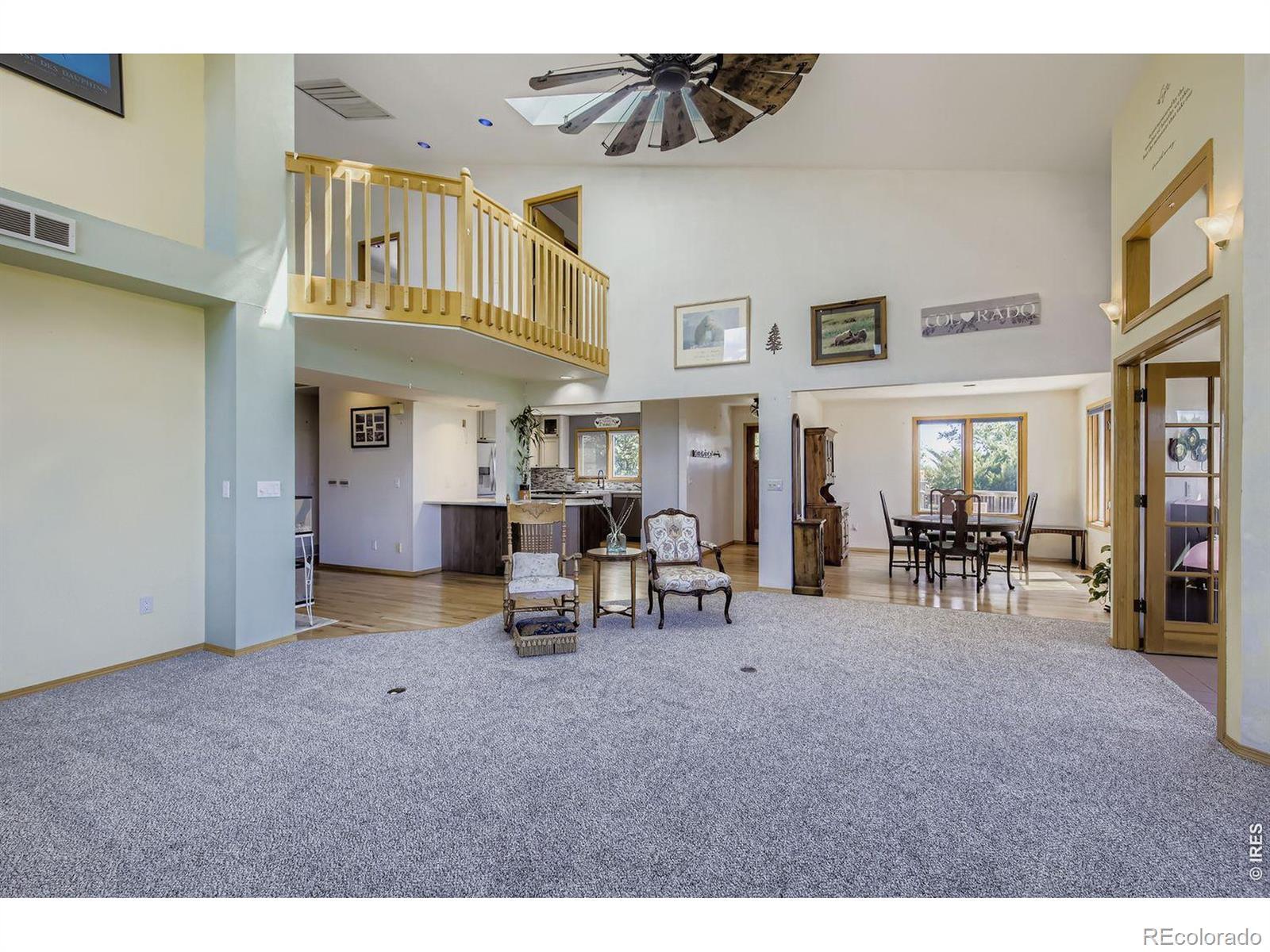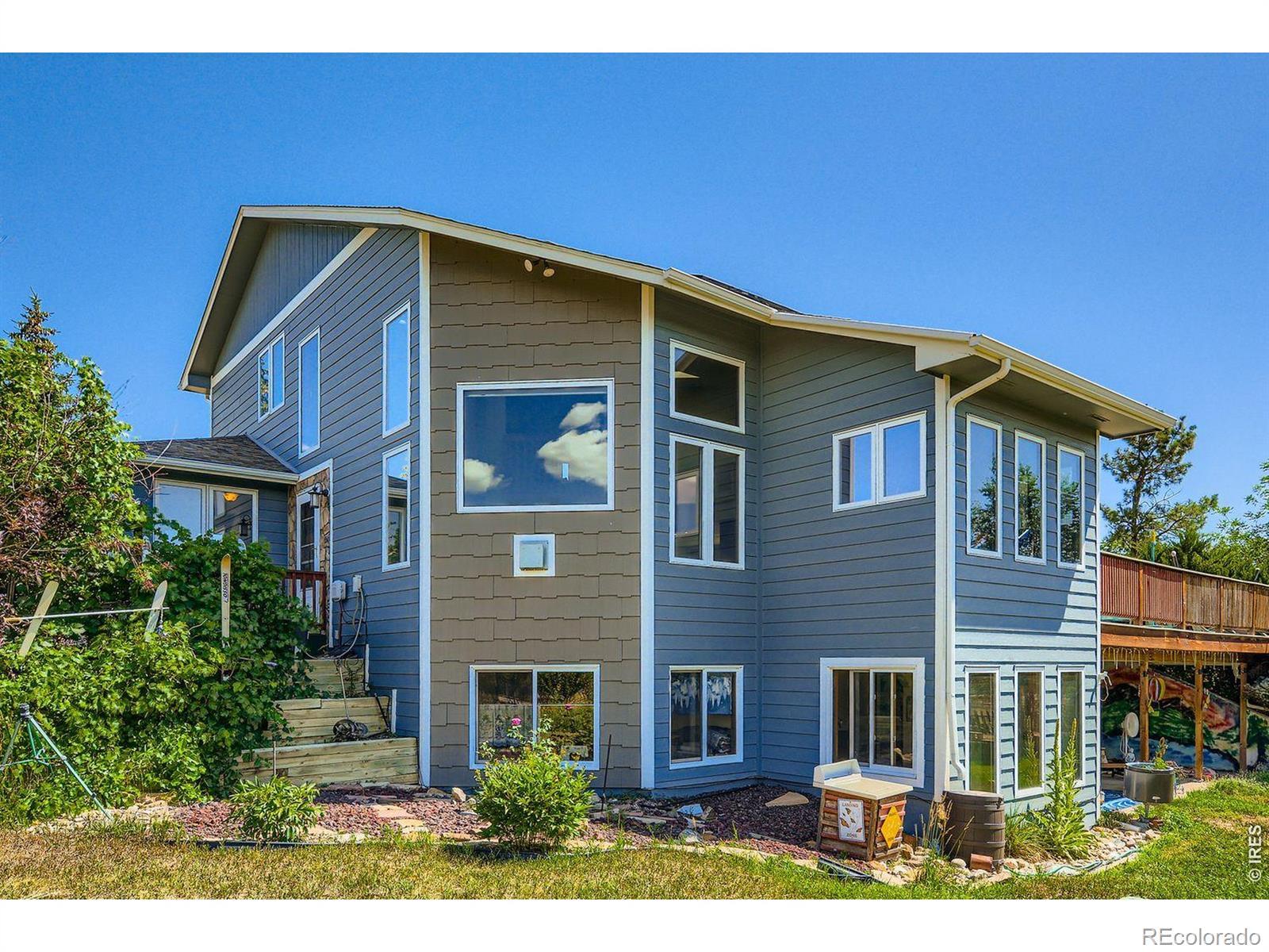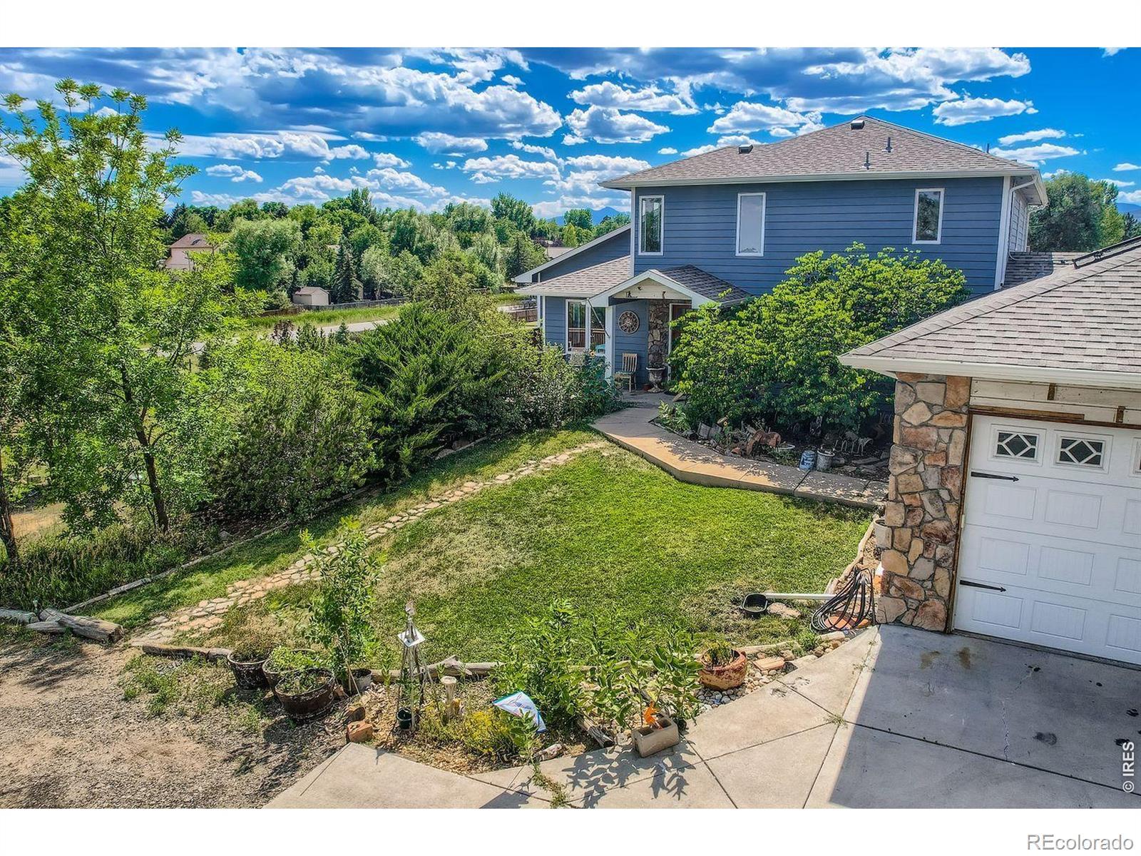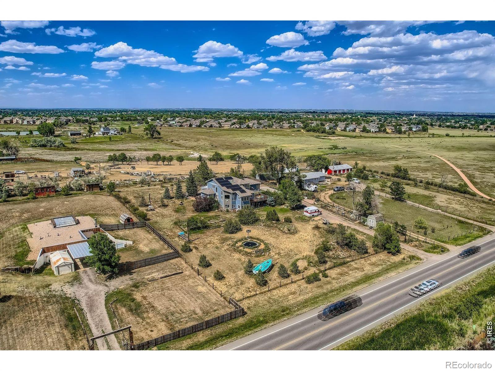 Enjoy true Colorado living on 1.5 acres with stunning Front Range views, no HOA, no Metro District, and rare FA1 zoning-bring your horses, goats, and chickens. Located just 5 minutes from I-25, this property offers peaceful country space with easy access to everything.This versatile 5-bedroom, 3-bath home is ideal for multi-generational living, featuring a fully finished walk-out basement with private entrance, full kitchen, family room, two bedrooms, and a 3/4 bath-perfect for extended family or rental potential.The light-filled great room showcases soaring ceilings, expansive windows framing the mountains, and a gas fireplace. The updated kitchen features quartz countertops, farmhouse sink, wall ovens, gas cooktop island, and two-tone cabinetry. A main-level bedroom and full bath add flexibility, while upstairs offers two bedrooms, a loft, and another full bath.Enjoy sunsets from the spacious upper deck or relax on the shaded patio below. Additional highlights include owned solar, newer roof and HVAC, oversized garage, RV parking, and mature landscaping.A rare blend of acreage, views, and flexibility-ready for modern Colorado living.
