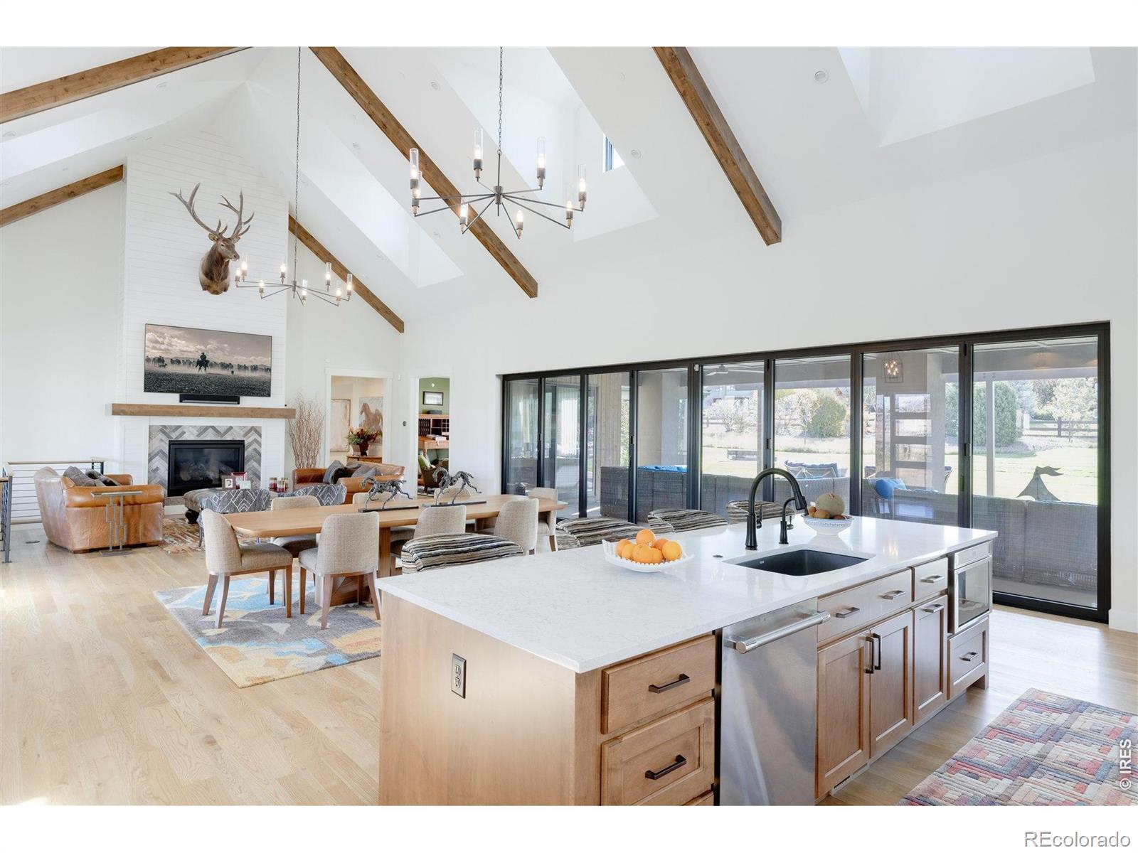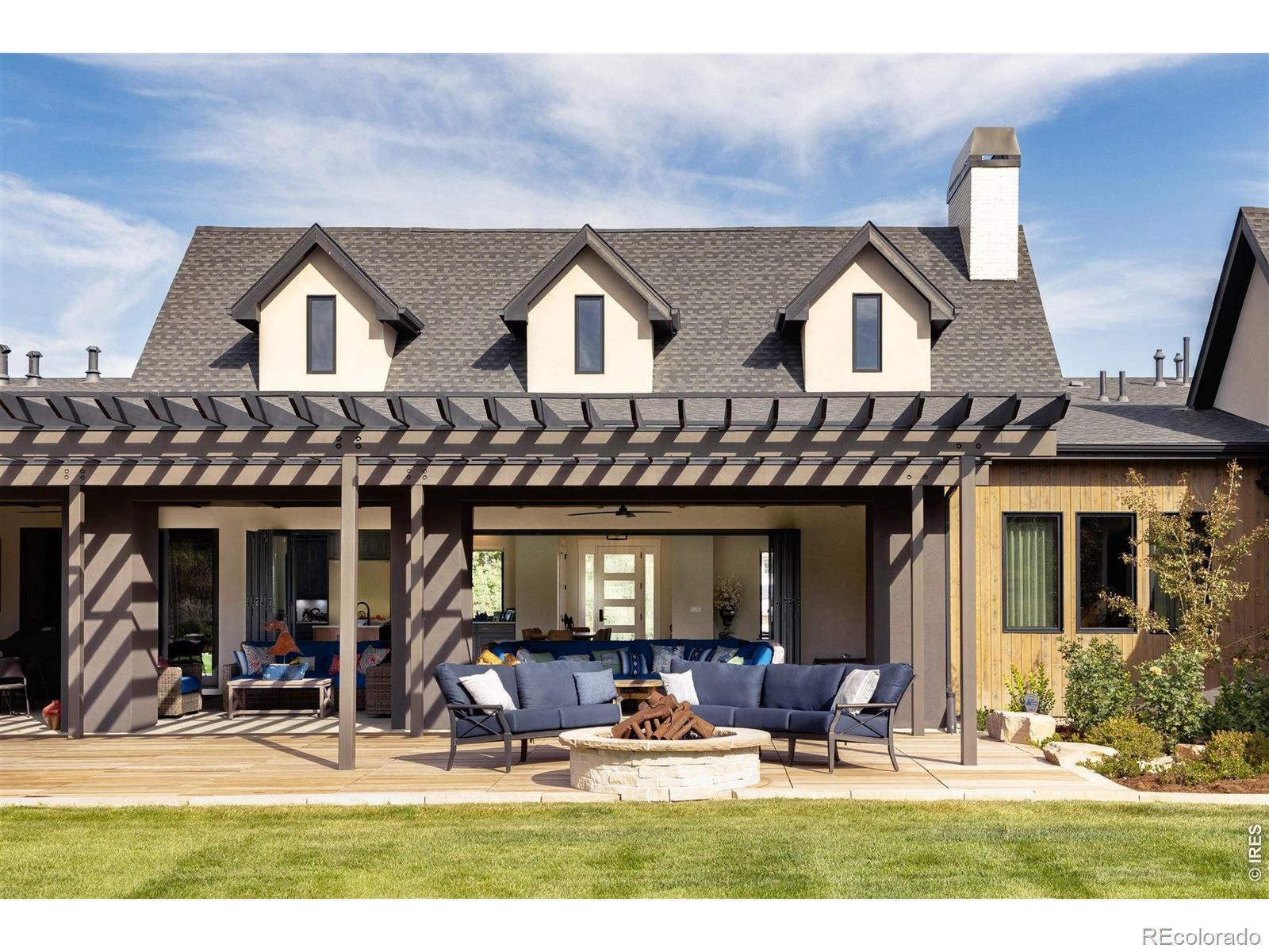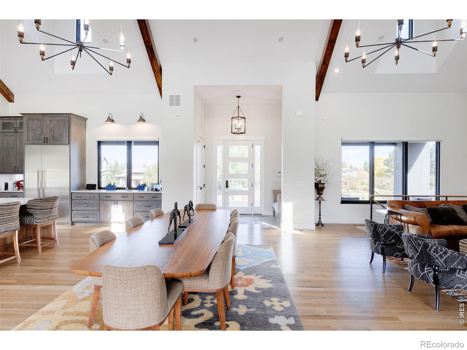 Welcome to Goldbranch Estates-Niwot's most exclusive gated enclave-where privacy, security, and modern luxury converge on nearly one acre in Boulder County. Designed for the executive who values both refinement and lifestyle, this newer custom residence delivers true main-level living framed by sweeping Front Range views. The dramatic NanaWall system fully opens the great room to a covered outdoor retreat, creating seamless indoor-outdoor living rarely found in Colorado. Entertain effortlessly beside the custom in-ground six-person hot tub and striking water feature-your private resort, steps from home. Inside, soaring ceilings and clean contemporary lines define an expansive open floor plan built for gathering. The chef's kitchen is both showpiece and workspace, complete with a butler's pantry and premium appliances-perfect for catered events or intimate dinners alike. The lower level transforms into an entertainer's dream: a speakeasy-inspired wine room and bar, dedicated theater room, and a flexible studio ideal for dance, fitness, golf simulator, or private training space. The main-level primary suite is a retreat of its own, offering panoramic mountain views and complete separation for ultimate privacy. Located just minutes from downtown Niwot, top-rated schools, and miles of trails-yet tucked securely behind private gates-this home offers the rare combination of exclusivity, convenience, and elevated design. This is not just a home. It's a lifestyle property.