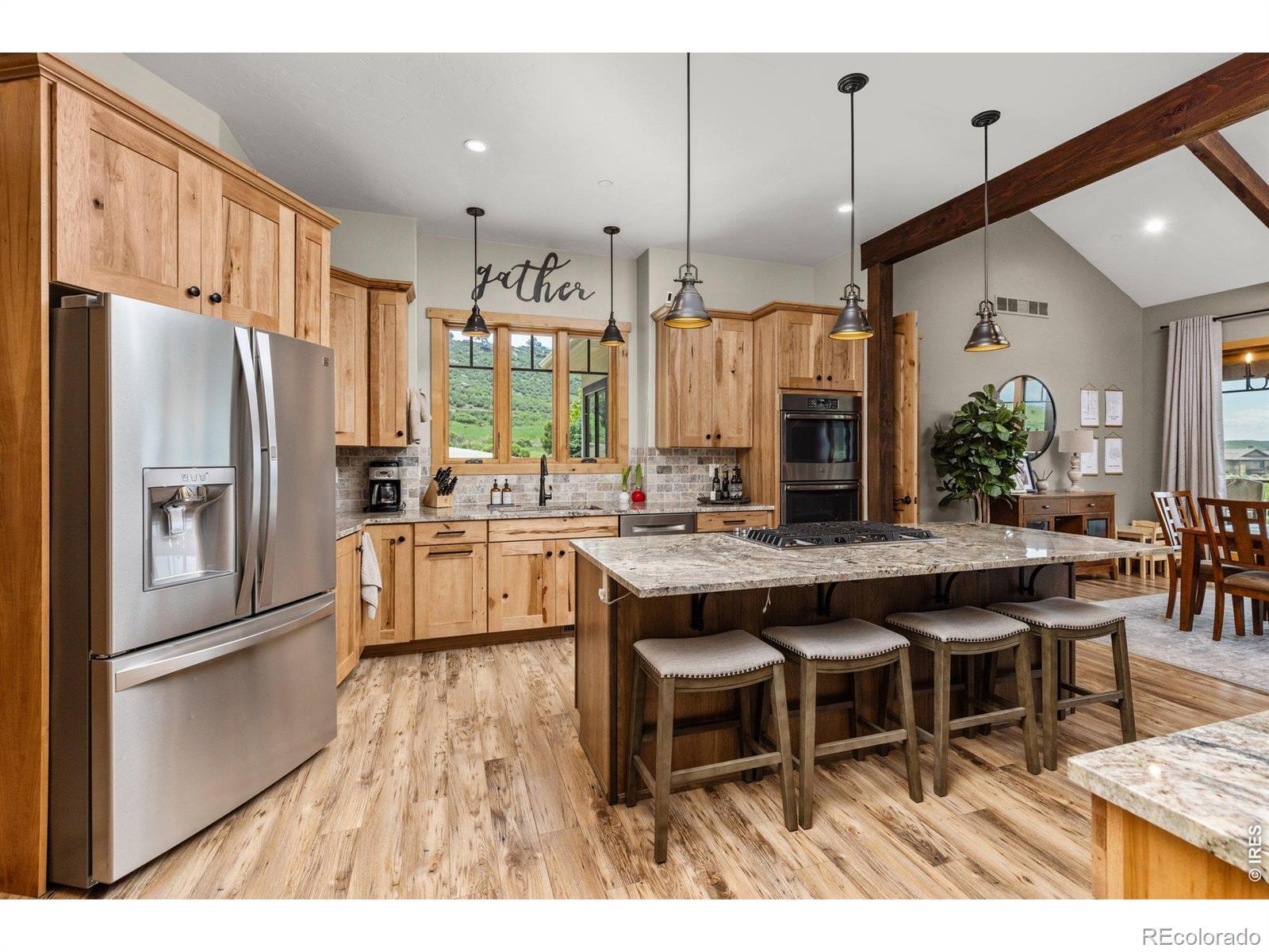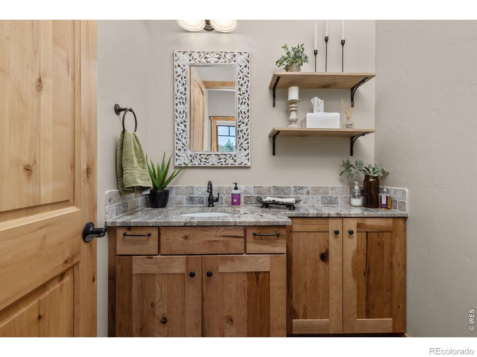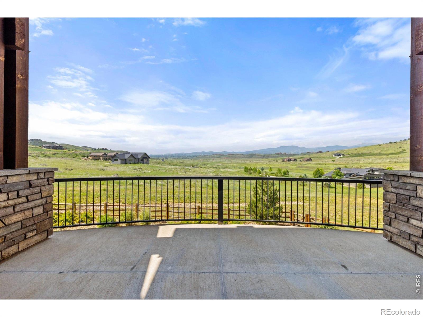 Nestled in the coveted Hidden Valley Estates gated community, this custom-built home offers unparalleled beauty and serenity. Located near the Devil's Backbone hiking area just West of Loveland, this property boasts panoramic views of Mount Meeker, Longs Peak Mountain along with the Devil's Backbone, perfect for nature lovers and outdoor enthusiasts. This estate was constructed with state-of-the-art products and exemplifies incomparable quality of workmanship and materials. Thoughtful & convenient high-tech devices are throughout the home, garage, & exterior and make operation of the property seemingly effortless. This home features a soaring 23-foot ceiling in the great room adorned with Wyoming snow fence accents and rough-sawn beams, creating a grand and inviting atmosphere. Walls of windows and patio doors bring the outdoors to life in virtually every room of the home. Located on the main floor, the large primary suite offers ultimate comfort with a luxurious 5-piece bath, a two-person jetted and heated tub, dual vanities, a private water closet, and a spacious walk-in closet. Also on the main level, a spacious office features a fireplace, vaulted ceilings and beams. The finished walkout basement includes 3 bedrooms, 2 bathrooms, a FULL kitchen, and an entertainment area with a fireplace. The unfinished area has been thoughtfully prepped for a future large theater room. Car enthusiasts and hobbyists will LOVE the 3809 sq. ft. garages with room for up to TEN cars plus an RV. One garage functions as a workshop with heating, A/C, bathroom and epoxy flooring, while the other is also heated to ensure year-round comfort. Whether you are sipping coffee on the expansive deck, spotting wildlife, watching your dogs play in the fully fenced and professionally landscaped yard, or entertaining family and friends, this one-of-a-kind mountain view retreat offers luxury living in a peaceful, scenic setting. This home is the answer to the Colorado lifestyle of your dreams.