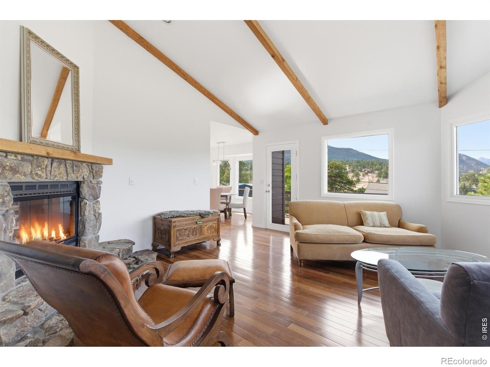 Envision a place in the mountains where the day begins on a trail and ends on a deck watching the sky light up in colors you didn't know existed. Close enough to Estes Park and RMNP to chase adventure, yet far enough away to hear your own thoughts. At the end of Sunrise Court, perched on a hillside with unobstructed western views, that vision becomes real. Step inside and the outdoors immediately takes center stage. Large windows frame sweeping views of the Mummy Range to the west. The sunsets here are not subtle. They command your attention. Night after night becomes a ritual on the expansive west-facing deck as the sky shifts from gold to deep blue and the lights begin to twinkle below. The home has been thoughtfully remodeled and is truly turnkey. Mixed-species hardwood and hickory floors run throughout. New counters, fresh interior and exterior paint, and updated finishes give the home a clean modern mountain feel. A wood-burning fireplace anchors the living space, perfect for cool evenings after hiking in RMNP or exploring downtown Estes Park. The main level includes two bedroom, and two baths for comfortable living and guest privacy. A laundry and mudroom just off the kitchen offers an easy second entry with minimal steps. The walkout lower level is unfinished and ready for your vision. There is room for additional bedrooms, family room, hobby space, or a separate living area with a roughed in bathroom. Tucked at the end of a cul-de-sac, you feel removed from it all while still being minutes from town, restaurants, and the park entrance. Even more compelling, the home is priced under a recent appraised value. This is more than a remodeled home with big views. It is a basecamp, a gathering place, and a front-row seat to sunsets, star-filled skies, and years of shared stories. If you have been waiting for a mountain home that pulls you outside and calls you back again and again, this might be the habit you never want to break.