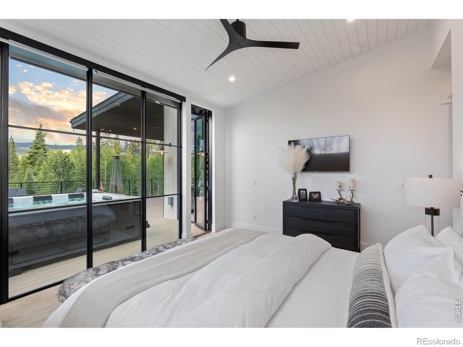 This exclusive mountain modern home in the prestigious Leland Creek neighborhood of Winter Park is truly one of a kind in Grand County. Built in 2023 by Never Summer Construction & designed by Munn Design, this 5-bed, 5-bath residence spans over 4,574 sq ft & offers breathtaking views of the Continental Divide. Super close to 2 bil expansion at Winter Park Resort, it's the perfect year-round retreat, blending sleek contemporary design w/ warm rustic charm. Inside, the home is thoughtfully appointed w/ Room & Board furnishings (negotiable), designer lighting, a Sonos sound system & a cozy gas fireplace. The gourmet kitchen is a chef's dream, featuring a 48" gas range, built-in fridge/freezer, hidden 100-spice rack, appliance garage & two pantries-one lockable for rentals. The open-concept layout is ideal for entertaining & everyday living. Step outside to enjoy 2,548 sq ft of outdoor living space, including a wraparound deck w/ a wood-fired pizza oven, BBQ, commercial-grade heaters & a 10-person hot tub. Massive 20-ft glass sliding doors seamlessly connect indoor & outdoor areas, creating a true mountain oasis. The private master suite offers a freestanding tub w/ a hidden view window, dual closets (one lockable) & direct hot tub access. Additional guest accommodations include an upper-level king suite, a bunk room w/ two Room & Board bunk beds (space for a third), & a lower-level king bedroom w/ easy access to a full bath. Entertainment & workspaces abound w/ a game room, home gym w/ custom glass doors & a bright office featuring floor-to-ceiling windows. Comcast available for high-speed connectivity. A separate studio apartment, styled as a mini version of the main home, earned $68K in 2024 & includes its own hot tub & mountain views. Located just 5 minutes from Winter Park Resort & close to Hideaway Park, Grand Park Rec Center & The Foundry, this home offers unmatched access to skiing, hiking & year-round adventure.