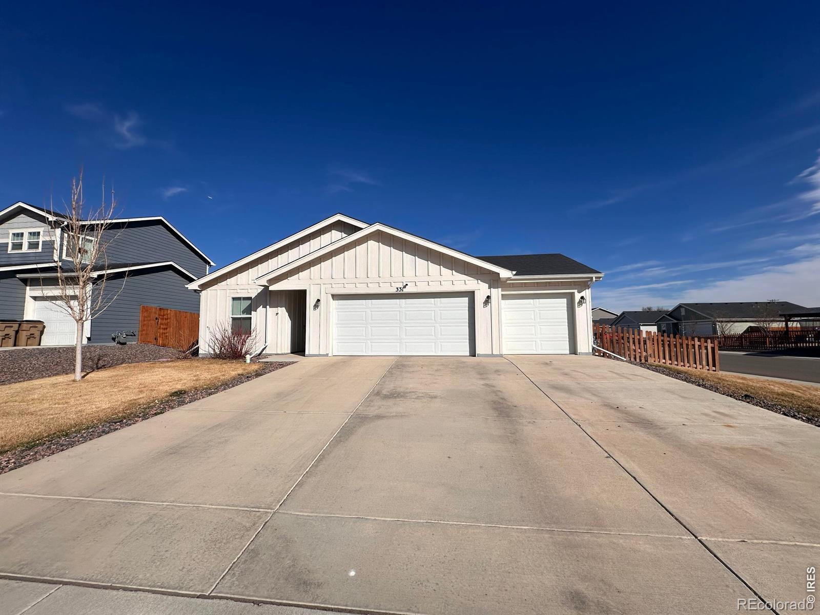 Better than new ranch with a 3 car garage in a newer subdivision. Home is close to schools, and transportation. Very light and bright, with slab counters, modern floors and tankless water heater. Kitchen features a walk-in pantry, lots of cabinets, center island with lots of storage space. Home is located on a corner lot, that has been completely landscaped with additional concrete for outdoor enjoyment. Full sprinkler system, added trees, newer sod, and room for an outdoor firepit. VERY LOW HOA fees, and NO Metro District. 3 car garage is not often found in the area, but this one has it. Easy to show, ready to go.