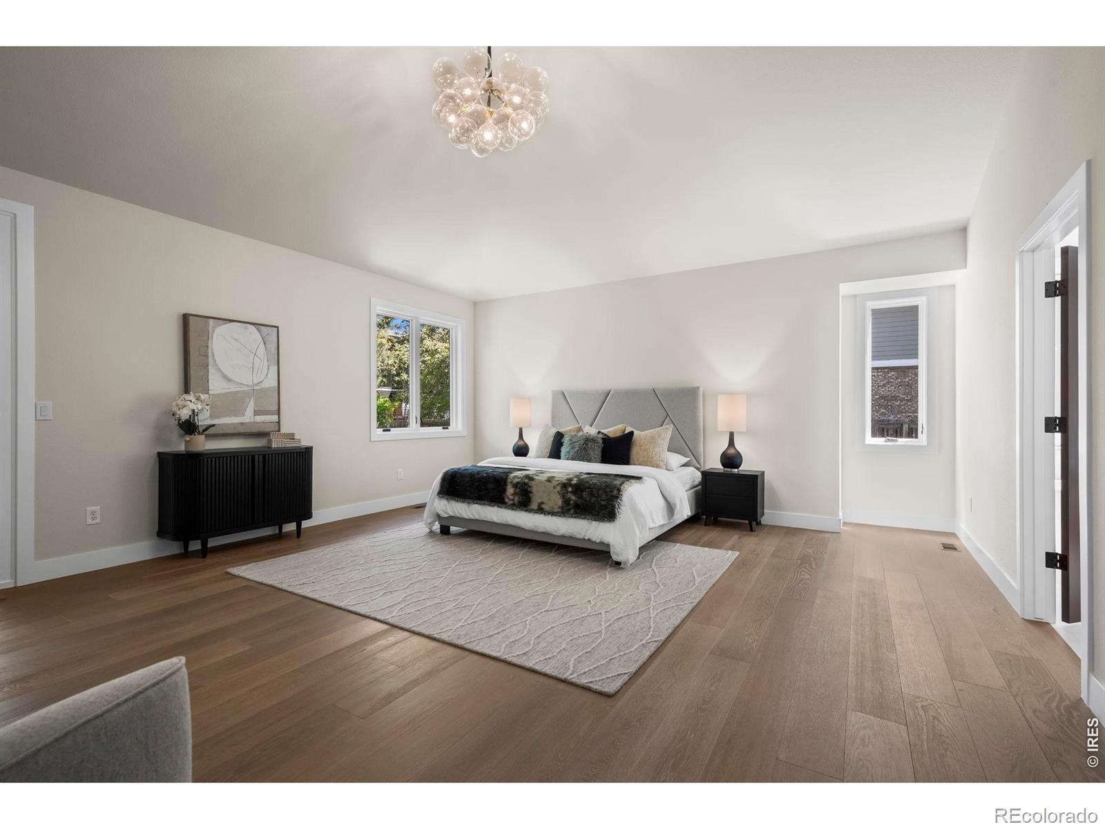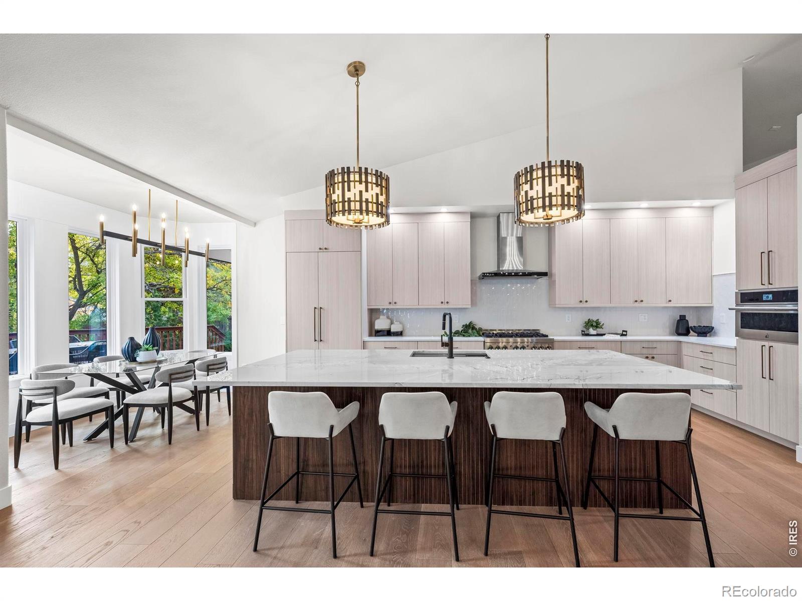 This stunning ranch-style home has been completely remodeled and renovated from top to bottom, offering striking modern curb appeal and a desirable 3-car side-load garage. Step inside to an elevated lifestyle with an expansive open floor plan highlighted by soaring ceilings, wide-plank white oak flooring, designer lighting, and generously sized rooms throughout. Enjoy 3,000 SQFT of main-level living space showcasing exceptional style and modern finishes. The high-end chef's kitchen flows seamlessly into the impressive great room-the true heart of the home-featuring an elegant fireplace and the perfect setting for everyday living and entertaining. The kitchen is beautifully appointed with custom cabinetry, quartz countertops, a massive quartzite center island with ample seating, walk-in pantry, sunny breakfast nook, and JennAir appliances. The luxurious primary suite is a private retreat with vaulted ceilings, direct access to the expansive back deck, and a spa-inspired five-piece bath featuring a generous walk-in shower, soaking tub, and dual walk-in closets. A second main-level bedroom includes its own en-suite bath, while a private study/flex room completes the main floor. Custom steel railings lead to the bright daylight lower-level, where above-grade windows bring in abundant natural light. This level offers a spacious family room, two large bedrooms (or home gym options), and a full bath with dual sinks. Enjoy indoor/outdoor living with the expansive back deck, perfect for relaxing after a day on the trails or BCC Golf Course. Terrific neighborhood amenities include a private clubhouse, pool, tennis & volleyball courts, park, and extensive network of trails, with quick access to the nearby Boulder Country Club!