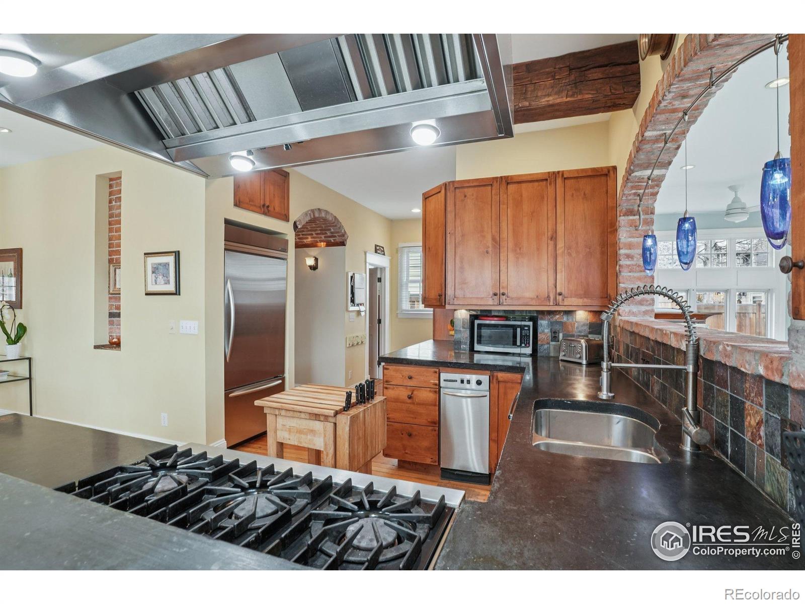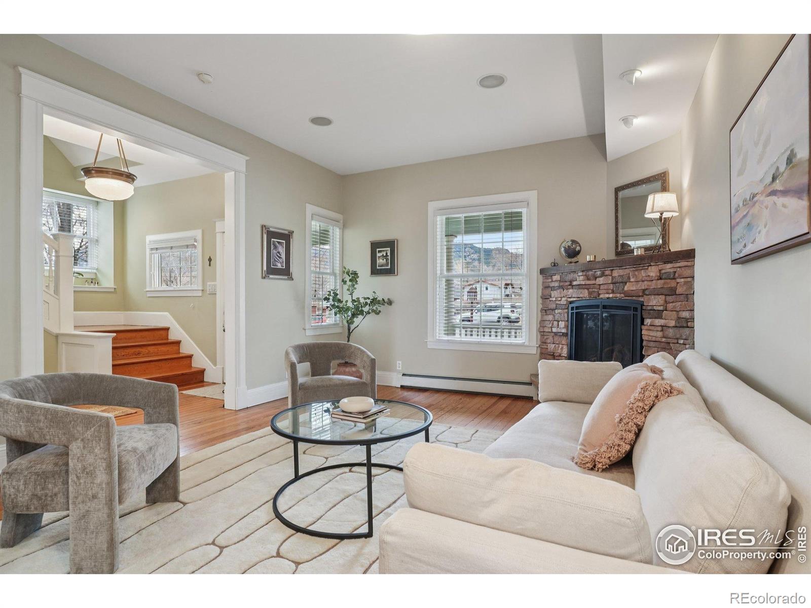 Location, location, location. In the heart of downtown Boulder's coveted Whittier neighborhood-just steps to Pearl Street-this iconic 1900 home offers an extraordinary blend of historic charm, modern comfort, and proven income potential. Remarkably, the next stewards will be only the fifth owners in 126 years. Elegant curb appeal and a welcoming front porch set the tone. Inside, a wide foyer showcases original old-growth Douglas fir floors, the preserved front door, and the stunning original staircase. Thoughtfully renovated to create expansive, light-filled spaces, the home seamlessly marries timeless character with modern updates. Large family room features 9ft ceilings, abundant natural light, and a cozy corner gas fireplace. Exposed beams and historic brick anchor the chef's kitchen, complete with Wedgewood cabinetry, generous counter space, and high-end appliances. Open kitchen and dining areas create the perfect gathering space for entertaining. An airy sunroom with floor-to-ceiling windows overlooks a bucolic backyard retreat centered around a 100-year-old apple tree-ideal as a home office, gym, or potential non-conforming 4th bedroom. Upstairs, two spacious bedrooms each offer ensuite baths and private balconies. Primary suite is a true sanctuary, featuring a large deck with iconic Flatirons views. Walkout lower level delivers exceptional flexibility w/own private entrance, kitchenette, living area, double-sided fireplace, and separate sleeping spaces. Ideal for multi-generational or as a turnkey Airbnb/VRBO, this licensed rental has operated for 19 years, generating over $1.2M in revenue (averaging $70K annually) and earning 1,000+ five-star reviews. Two covered porches with Flatirons views, a one-car rental garage, whole-house cooling fan, and integrated 30-speaker sound system complete this impeccably maintained property. A rare opportunity to own a true Boulder legacy-offering character, flexibility, income, and unmatched walkability. Let's Get You Home!