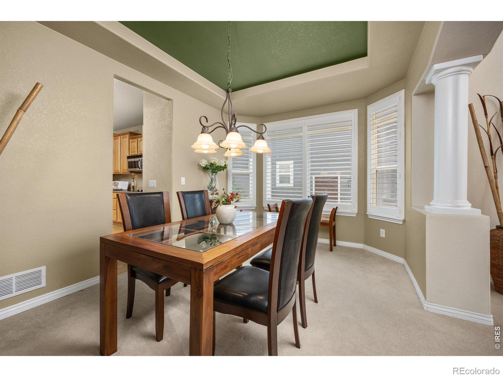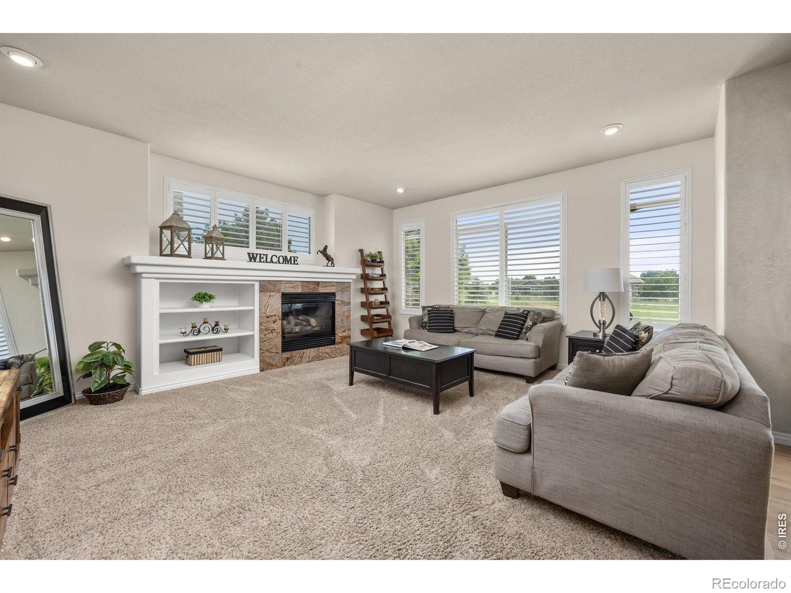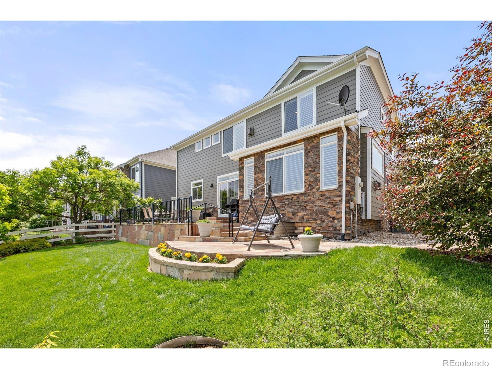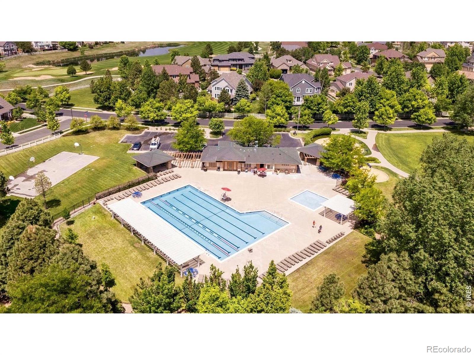 OUTSTANDING LOCATION, ON GOLF COURSE! As you approach this enchanting home, an idyllic front porch and charming entrance will welcome you, followed by harmoniously orchestrated living spaces that combine creative architecture with thoughtful design. Vaulted ceilings, built-ins, hardwood floors, plantation shutters. Perfectly placed windows provide abundant natural light throughout. Views from most rooms! The inviting LIVING ROOM and DINING ROOM offer a wonderful setting for reading, chats and sharing meals with family and friends. The KITCHEN features granite counters, stainless appliances, a generous island, eat-in area, office nook and pantry. Spacious FAMILY ROOM with gas fireplace. From there, a smooth sliding door opens onto an expansive flagstone PATIO and BACKYARD with magnificent views. Peace and tranquility surround and no neighbors behind! The MAIN-LEVEL also includes a BEDROOM, FULL BATHROOM and LAUNDRY, providing multi-generational flexibility. A graceful staircase rises to the UPPER LEVEL, where the PRIMARY BEDROOM has a nice fireplace and walk-in closet. En-suite BATHROOM with natural stone tile floors, double vanity and jet tub. There are 2 additional BEDROOMS, 2 FULL BATHS and an OFFICE. An attic fan provides whole-house air circulation. The unfinished BASEMENT offers future possibilities. 3-Car garage. NEW ROOF! IDEAL LOCATION in beautiful Broadlands. Outdoor enthusiasts will enjoy golfing, walking or biking along several trails with inspiring views. Pleasant parks, playgrounds and picnic areas. Plaster Reservoir, Paul Derda Rec Center, Broomfield Commons Open Space and more. The homeowners association takes care of common areas, clubhouse and pool. Near Whole Foods, Bradburn Village and Orchard Town Center shops and restaurants. Straight drive to Boulder, Denver or the airport. Delight in the friendly neighborhood life, or retreat into the quiet privacy of your own backyard oasis. Comfort and convenience combined. EXCEPTIONAL. MOVE IN AND ENJOY!